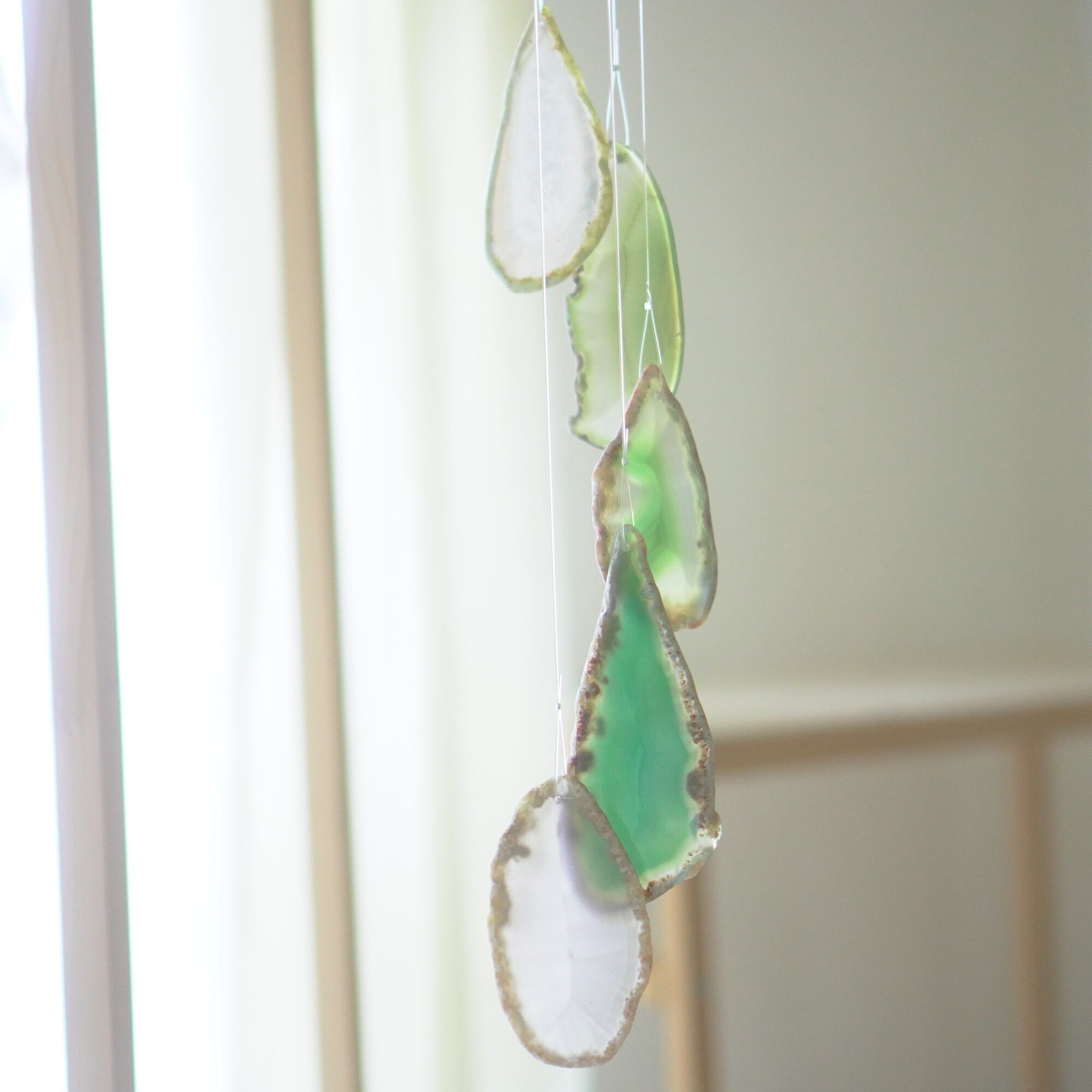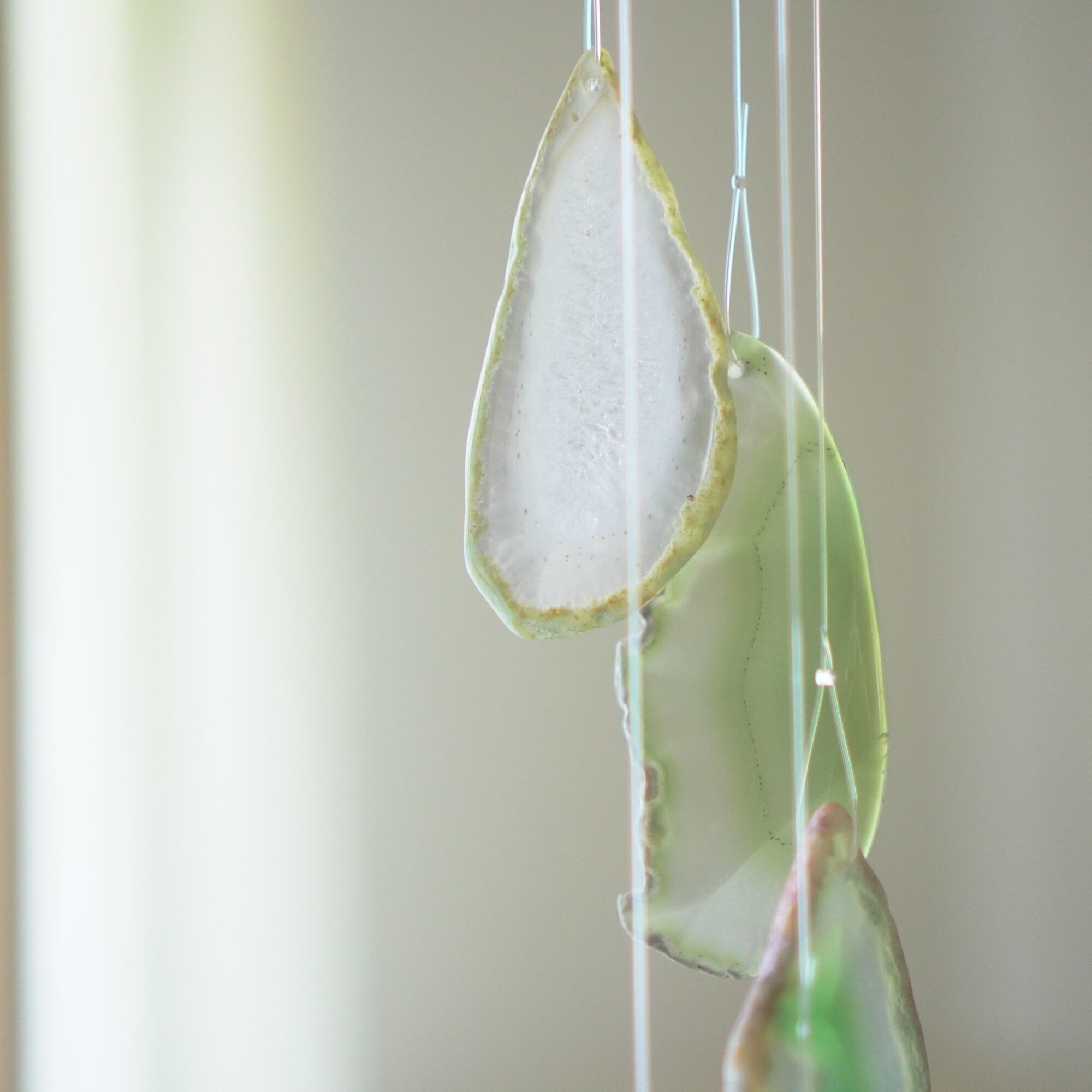 連なるアゲートが風を受けて揺れるとチリンチリン、美しい響きの音が鳴りとても癒されます。