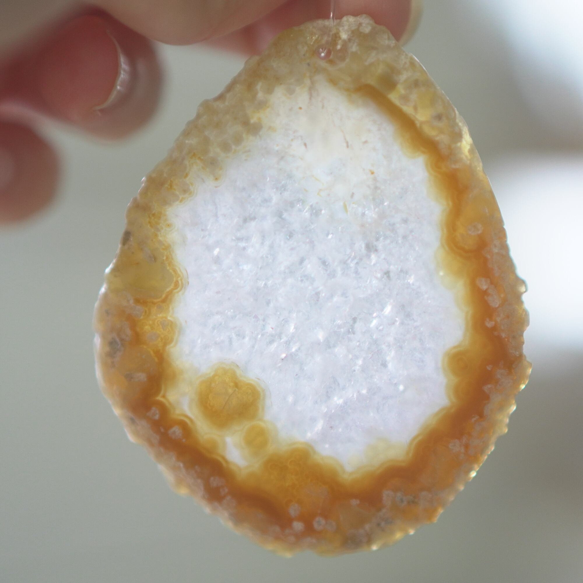 ✧✧✧染色の石なので耐光性(光による経年でのカラー変化の耐性)に優れているわけではなく一日の中で長時間強い日光に当たるような場所に飾られるのはおすすめしないのですが、陽光に透かした時にだけ真価を発揮する美しさがありますので、是非たまに翳したりして光と一緒にお楽しみいただけたらと思っております。特に濃い鮮やかな色など、気になられる場合は、日光のあまり当たらない場所に飾っていただけたらと思います✧✧✧