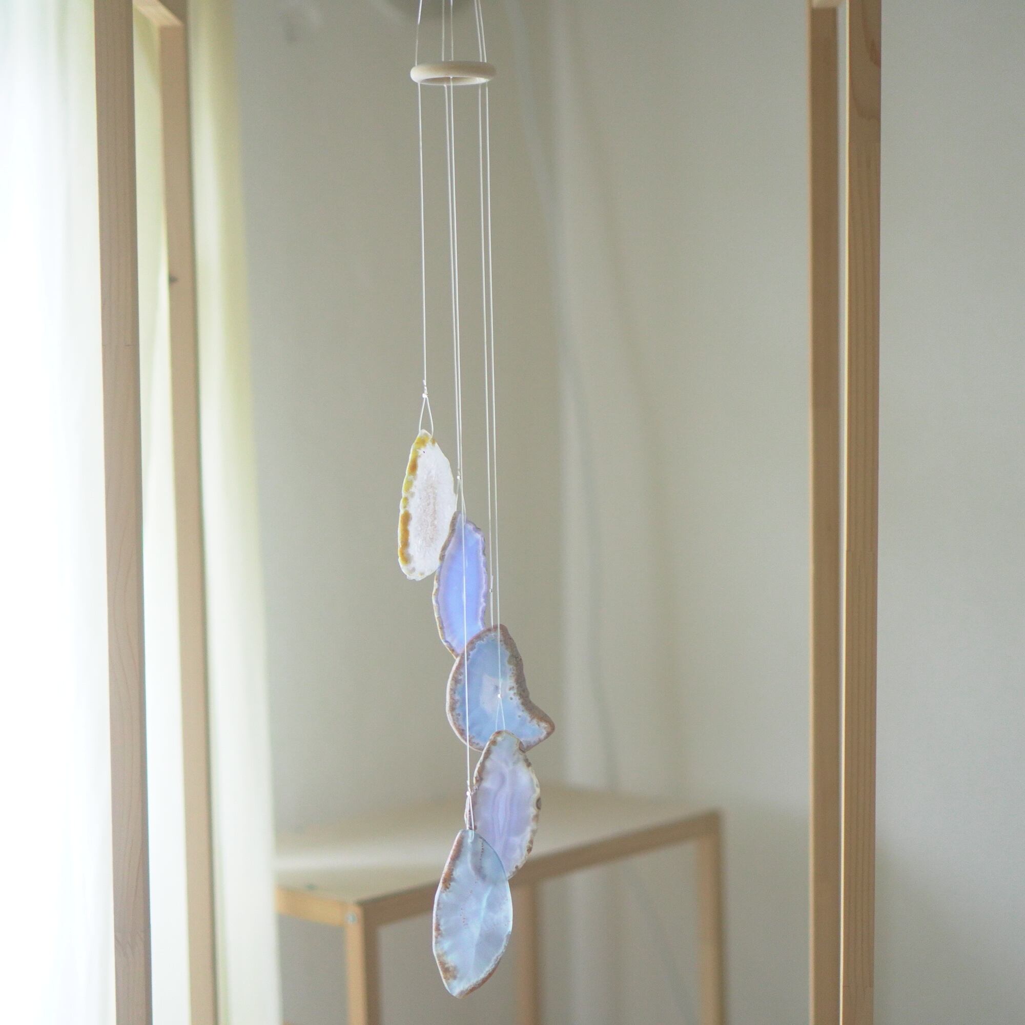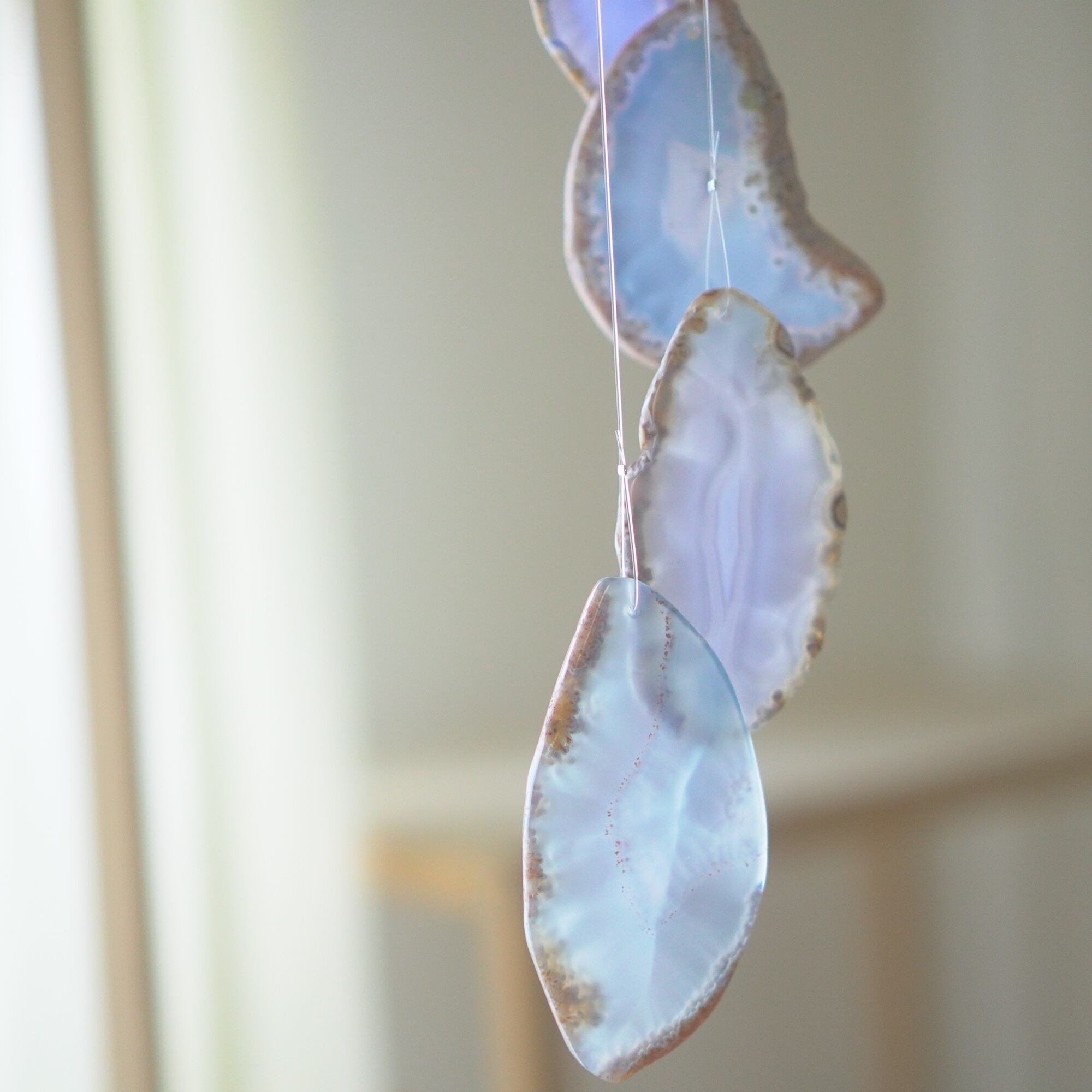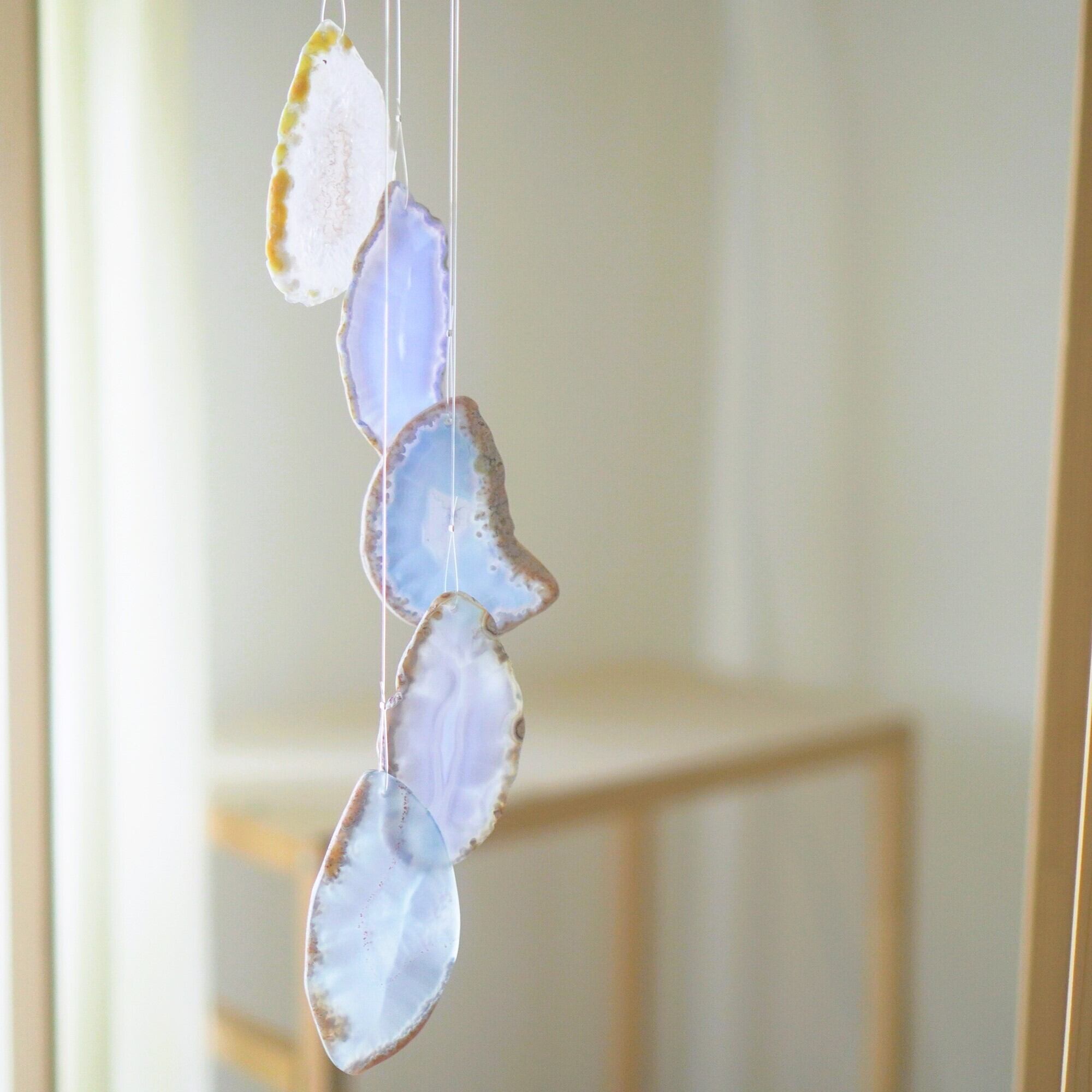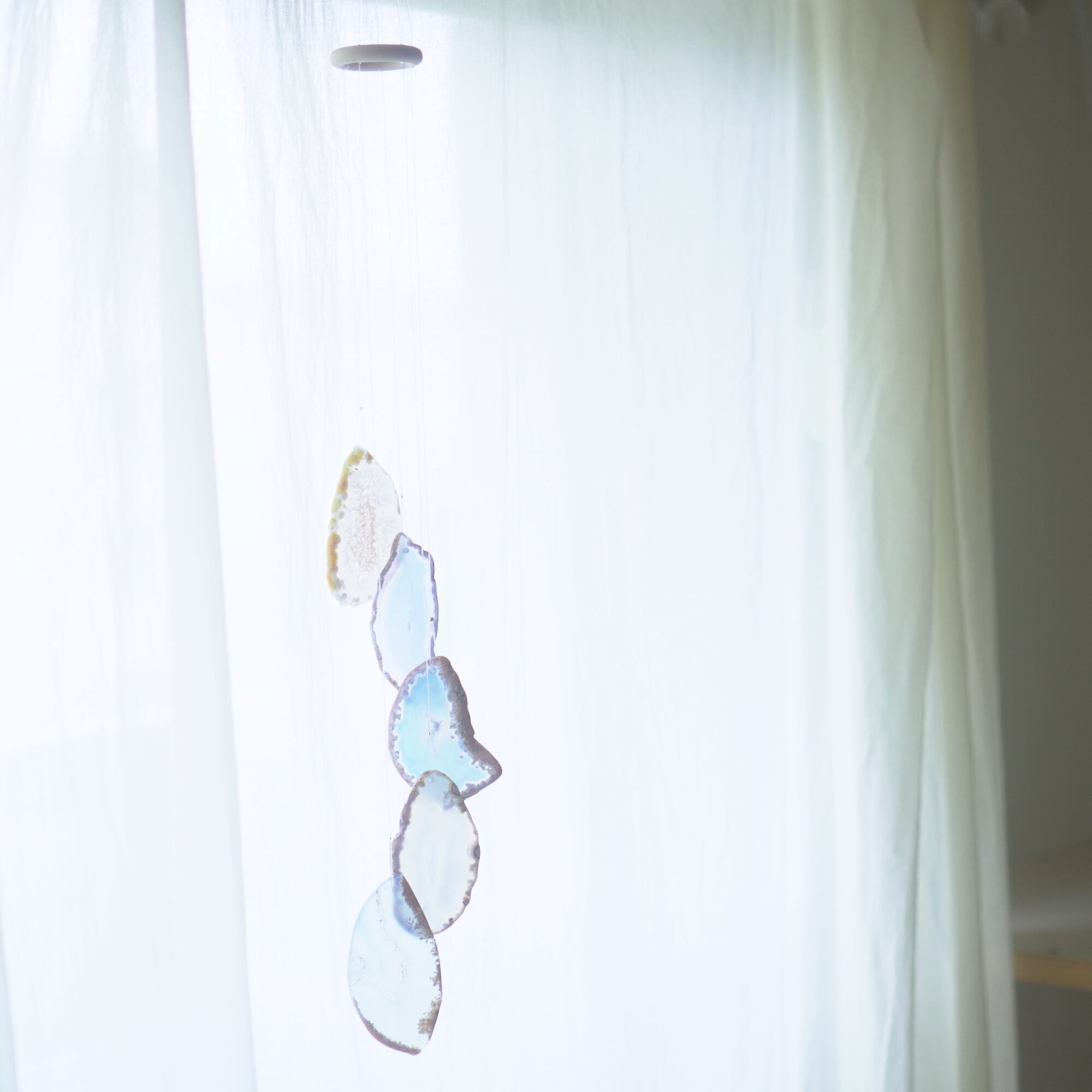 連なるアゲートが風を受けて揺れるとチリンチリン、美しい響きの音が鳴りとても癒されます。