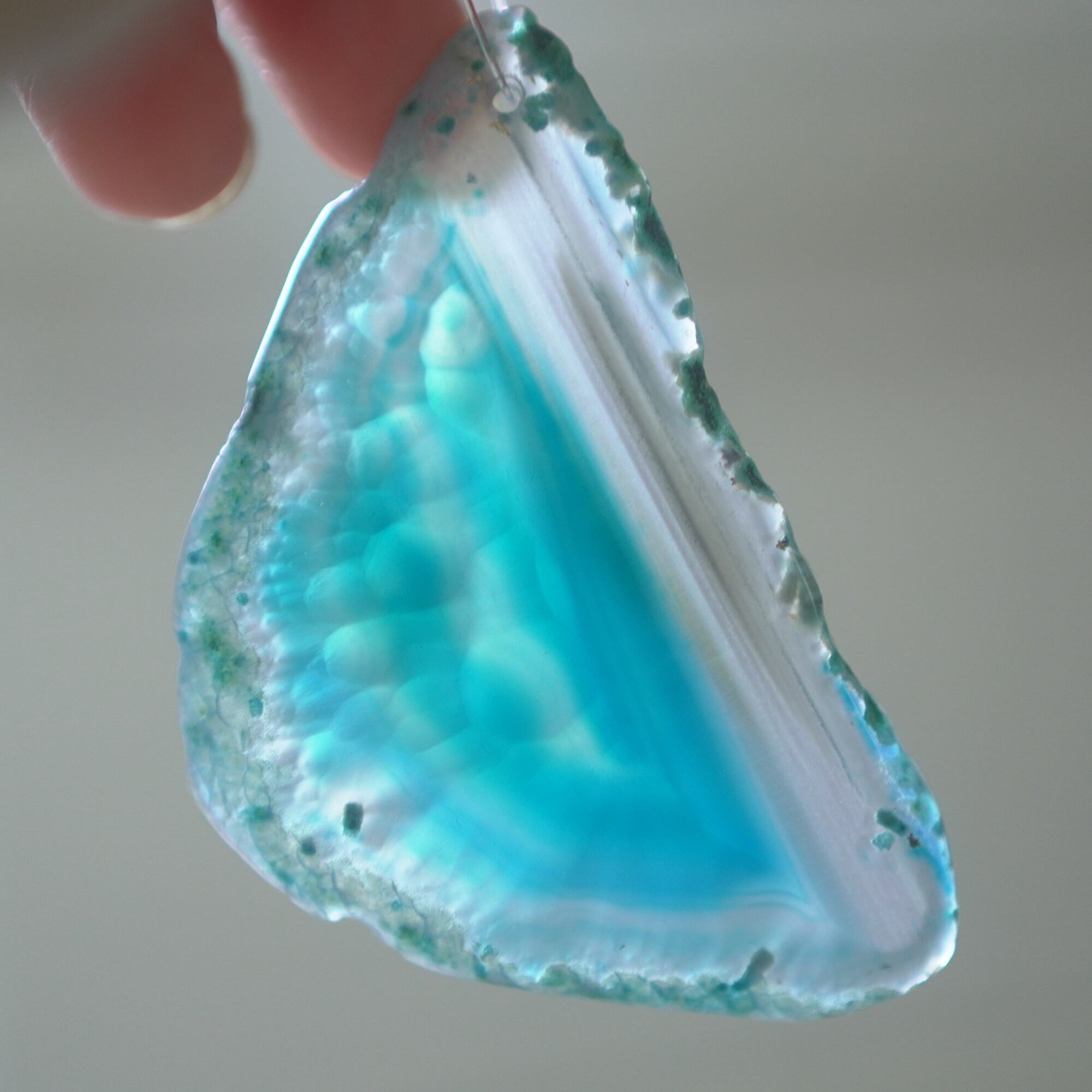 ✧✧✧染色の石なので耐光性(光による経年でのカラー変化の耐性)に優れているわけではなく一日の中で長時間強い日光に当たるような場所に飾られるのはおすすめしないのですが、陽光に透かした時にだけ真価を発揮する美しさがありますので、是非たまに翳したりして光と一緒にお楽しみいただけたらと思っております。特に濃い鮮やかな色など、気になられる場合は、日光のあまり当たらない場所に飾っていただけたらと思います✧✧✧
