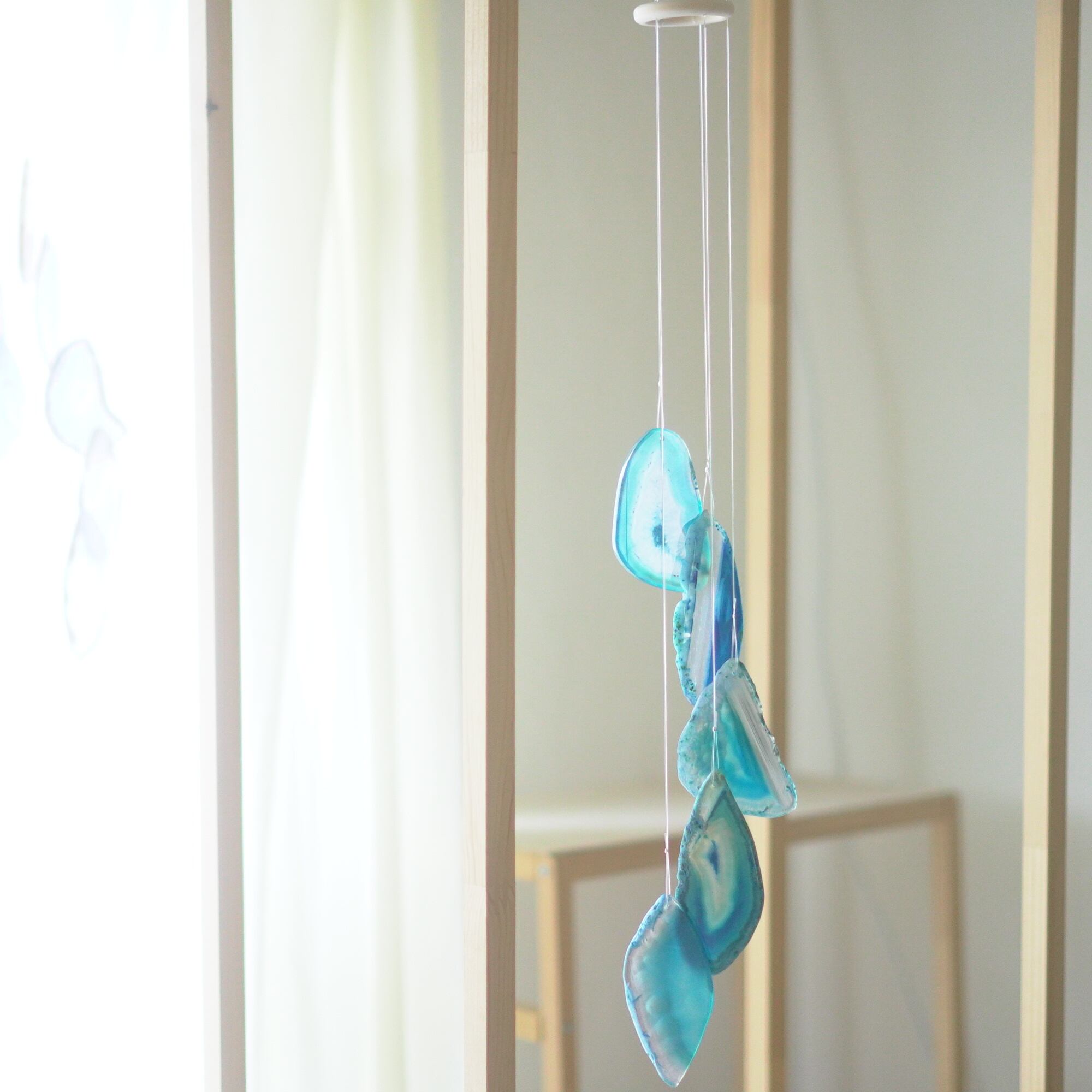 連なるアゲートが風を受けて揺れるとチリンチリン、美しい響きの音が鳴りとても癒されます。