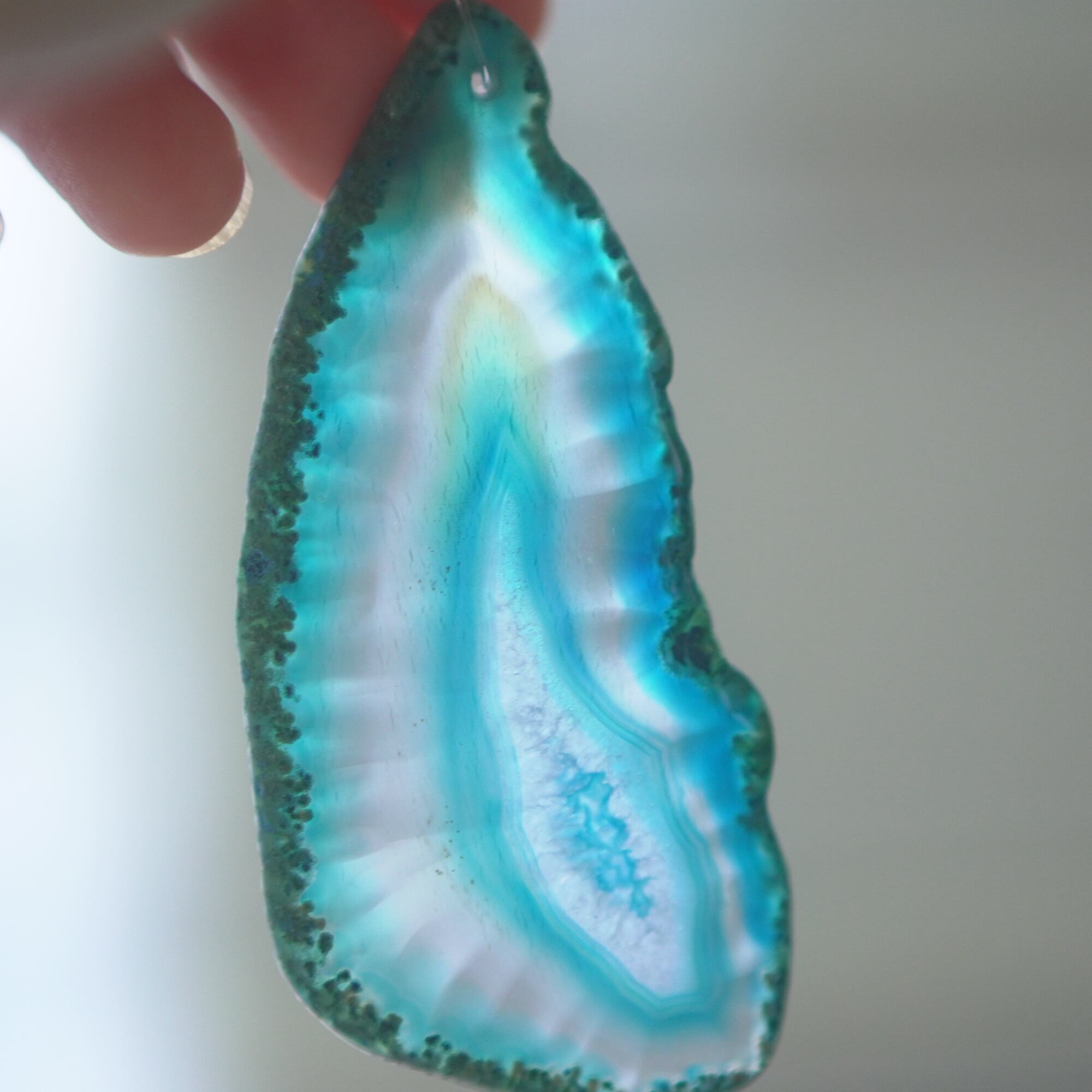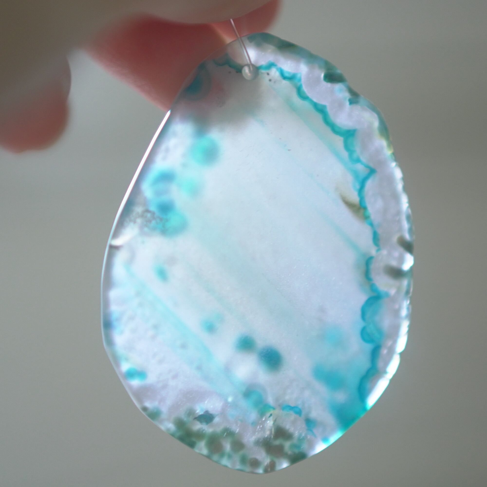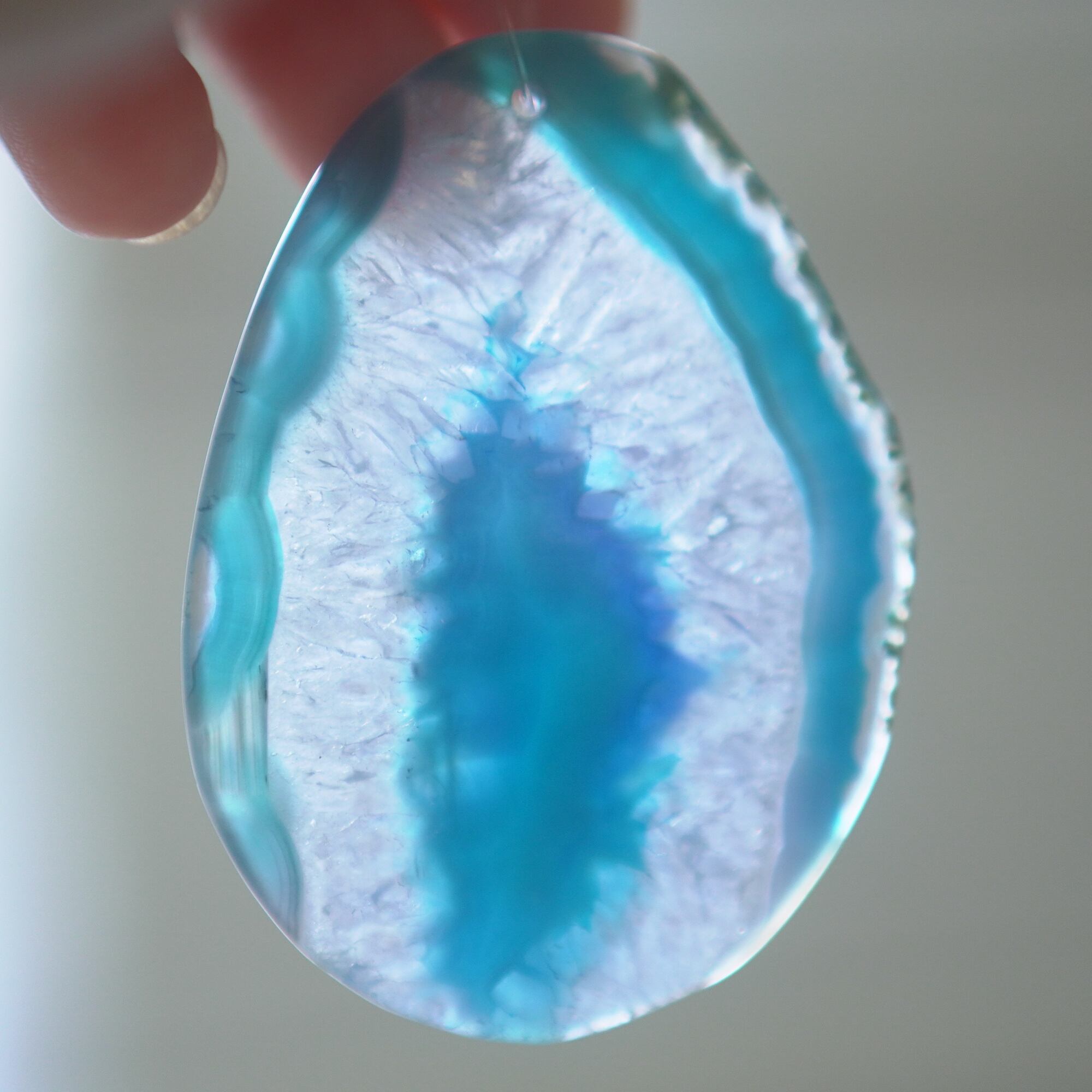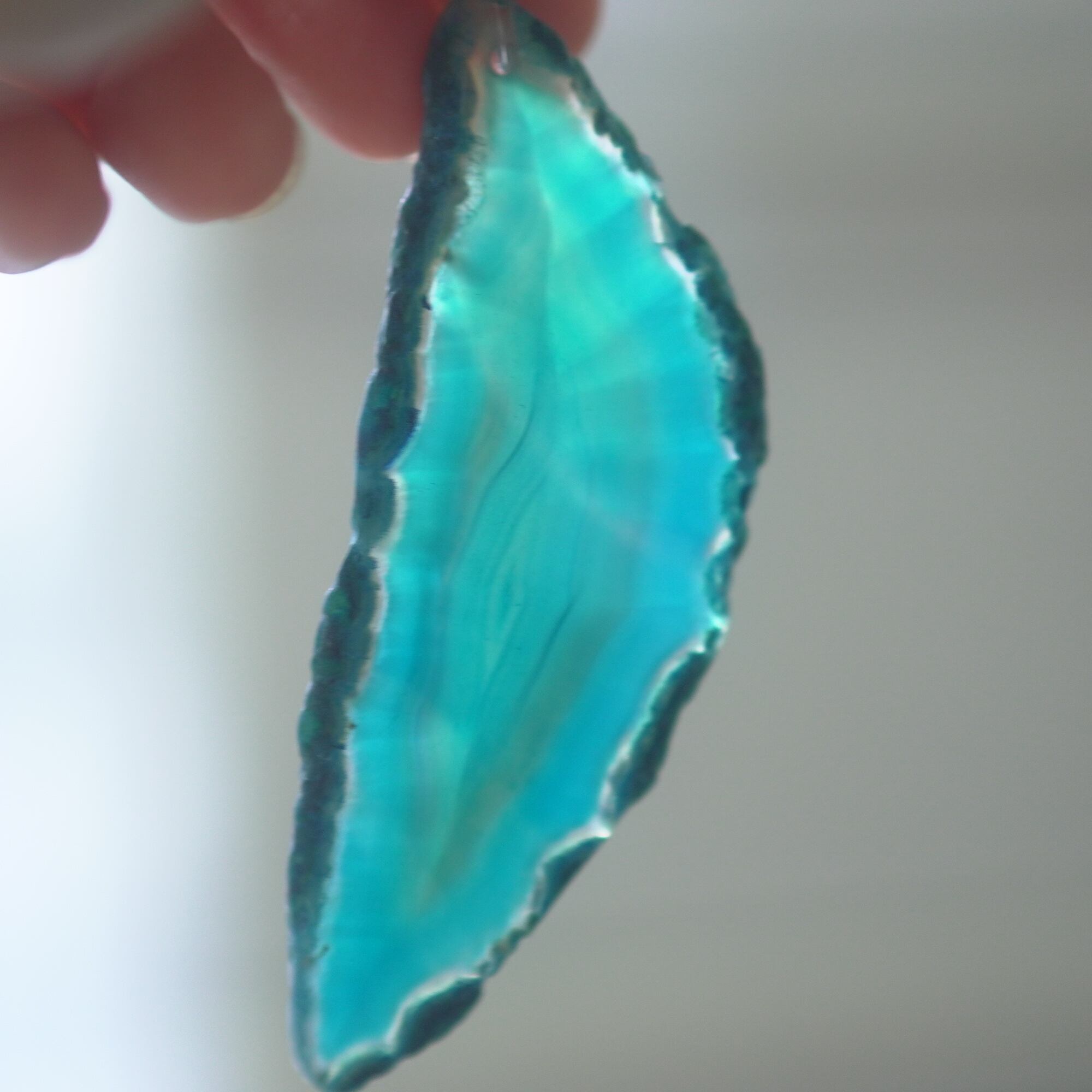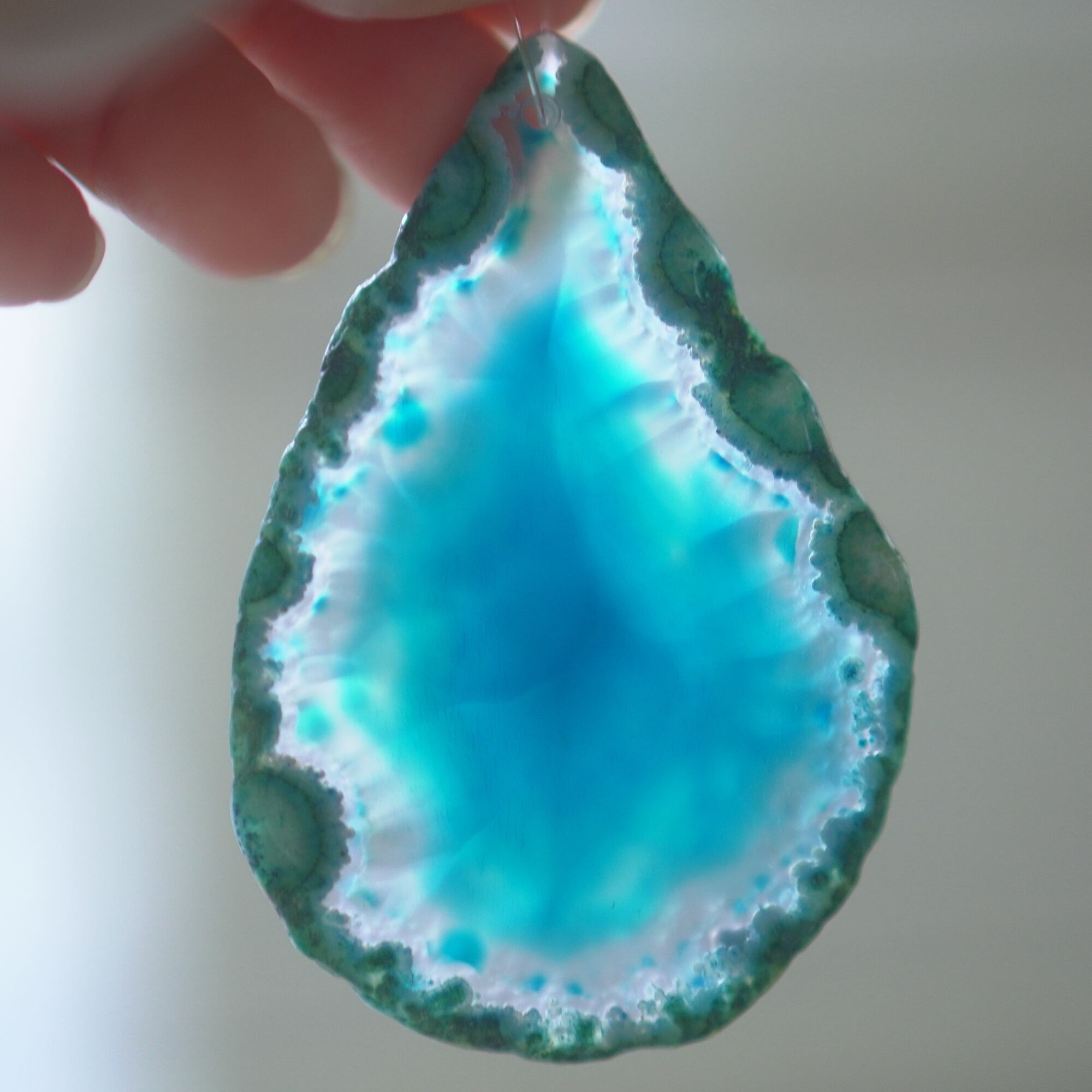 ✧✧✧染色の石なので耐光性(光による経年でのカラー変化の耐性)に優れているわけではなく一日の中で長時間強い日光に当たるような場所に飾られるのはおすすめしないのですが、陽光に透かした時にだけ真価を発揮する美しさがありますので、是非たまに翳したりして光と一緒にお楽しみいただけたらと思っております。特に濃い鮮やかな色など、気になられる場合は、日光のあまり当たらない場所に飾っていただけたらと思います✧✧✧