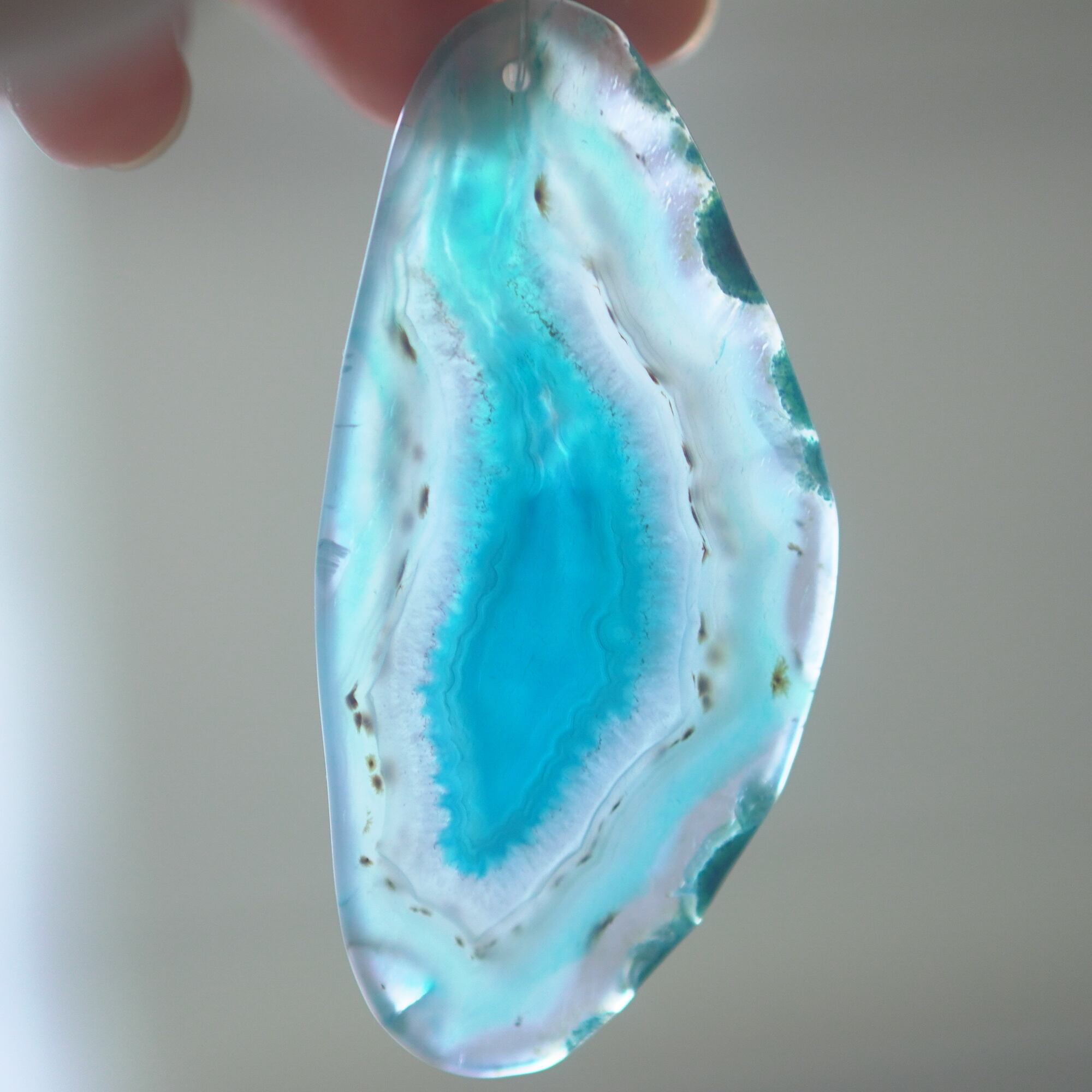 ✧✧✧染色の石なので耐光性(光による経年でのカラー変化の耐性)に優れているわけではなく一日の中で長時間強い日光に当たるような場所に飾られるのはおすすめしないのですが、陽光に透かした時にだけ真価を発揮する美しさがありますので、是非たまに翳したりして光と一緒にお楽しみいただけたらと思っております。特に濃い鮮やかな色など、気になられる場合は、日光のあまり当たらない場所に飾っていただけたらと思います✧✧✧