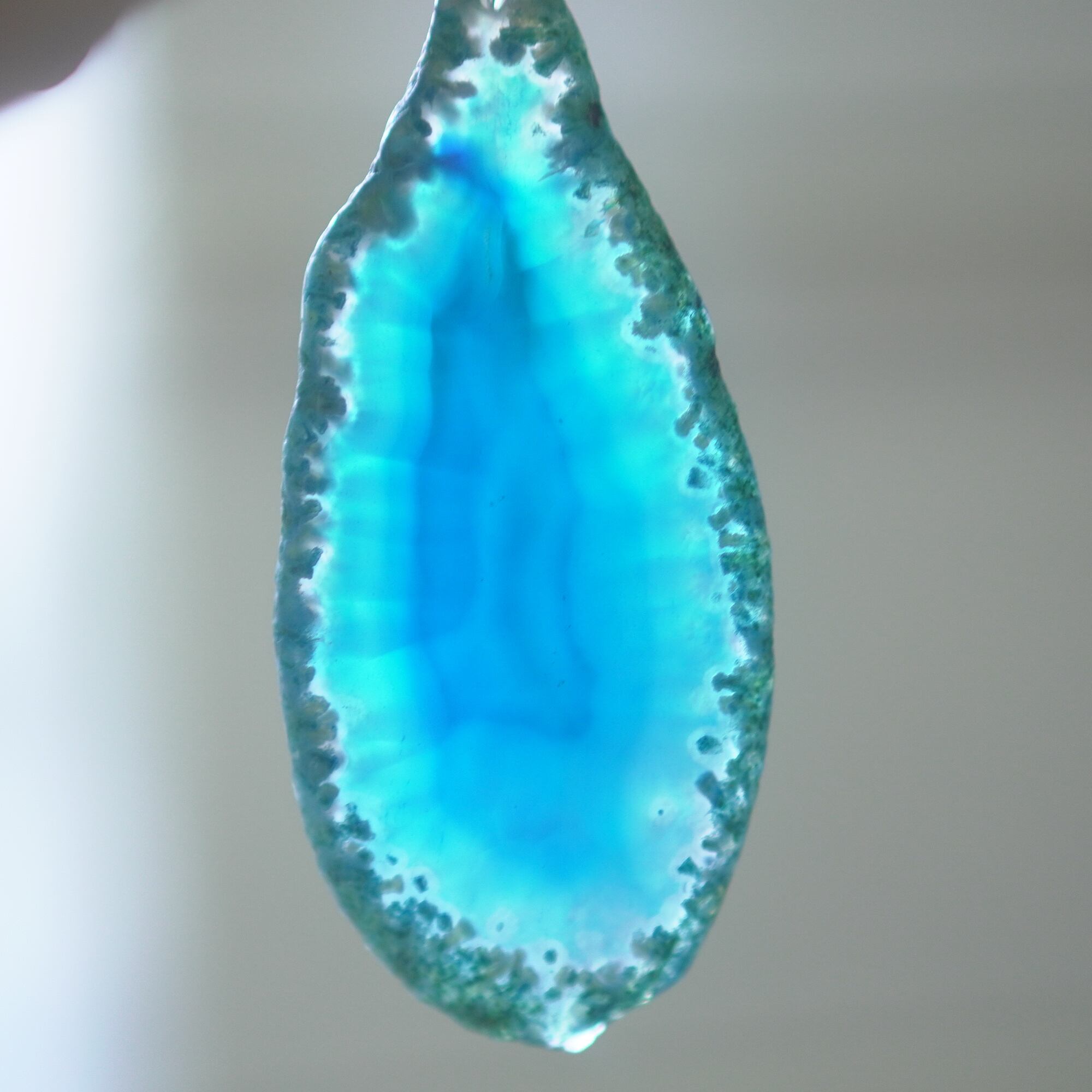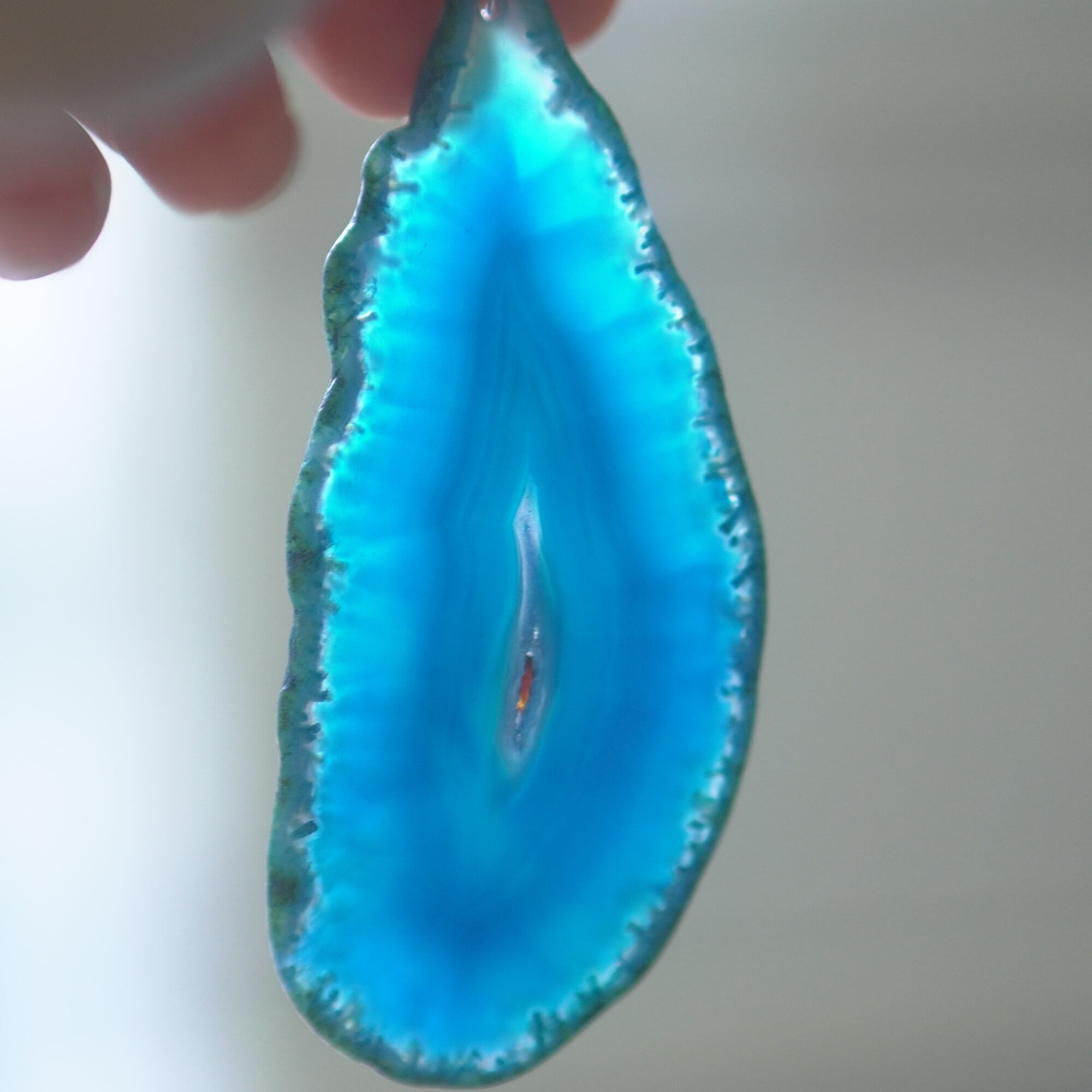 ✧✧✧染色の石なので耐光性(光による経年でのカラー変化の耐性)に優れているわけではなく一日の中で長時間強い日光に当たるような場所に飾られるのはおすすめしないのですが、陽光に透かした時にだけ真価を発揮する美しさがありますので、是非たまに翳したりして光と一緒にお楽しみいただけたらと思っております。特に濃い鮮やかな色など、気になられる場合は、日光のあまり当たらない場所に飾っていただけたらと思います✧✧✧