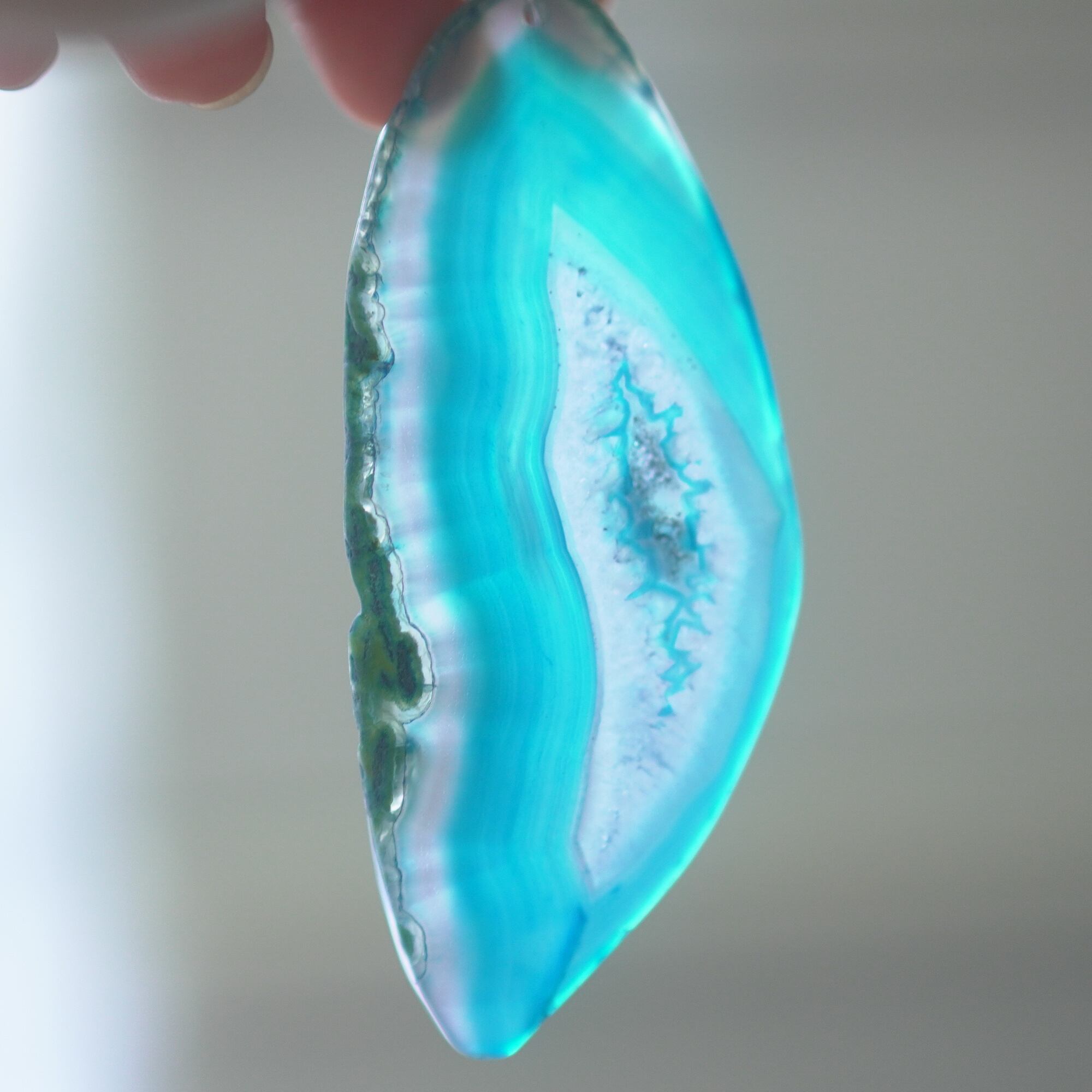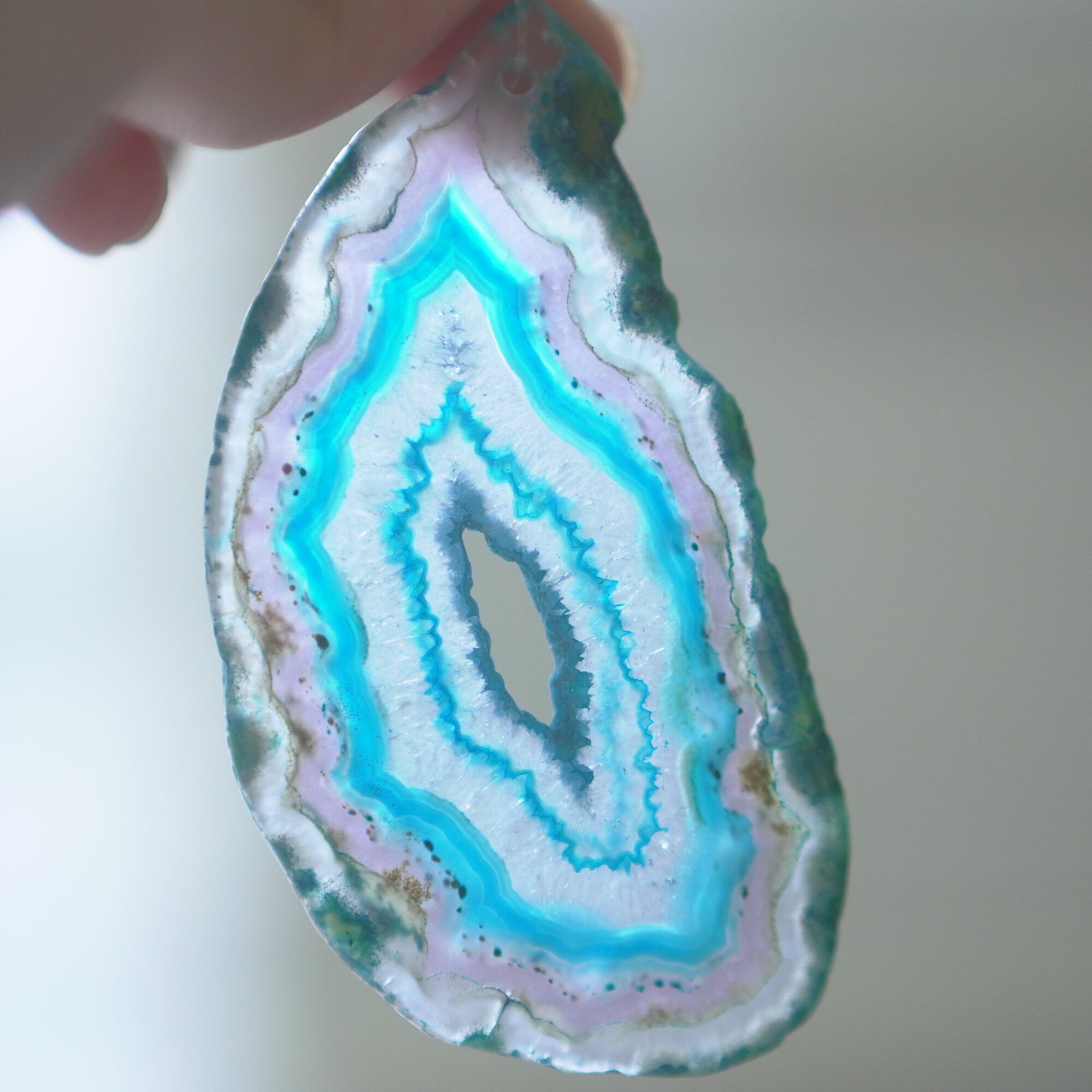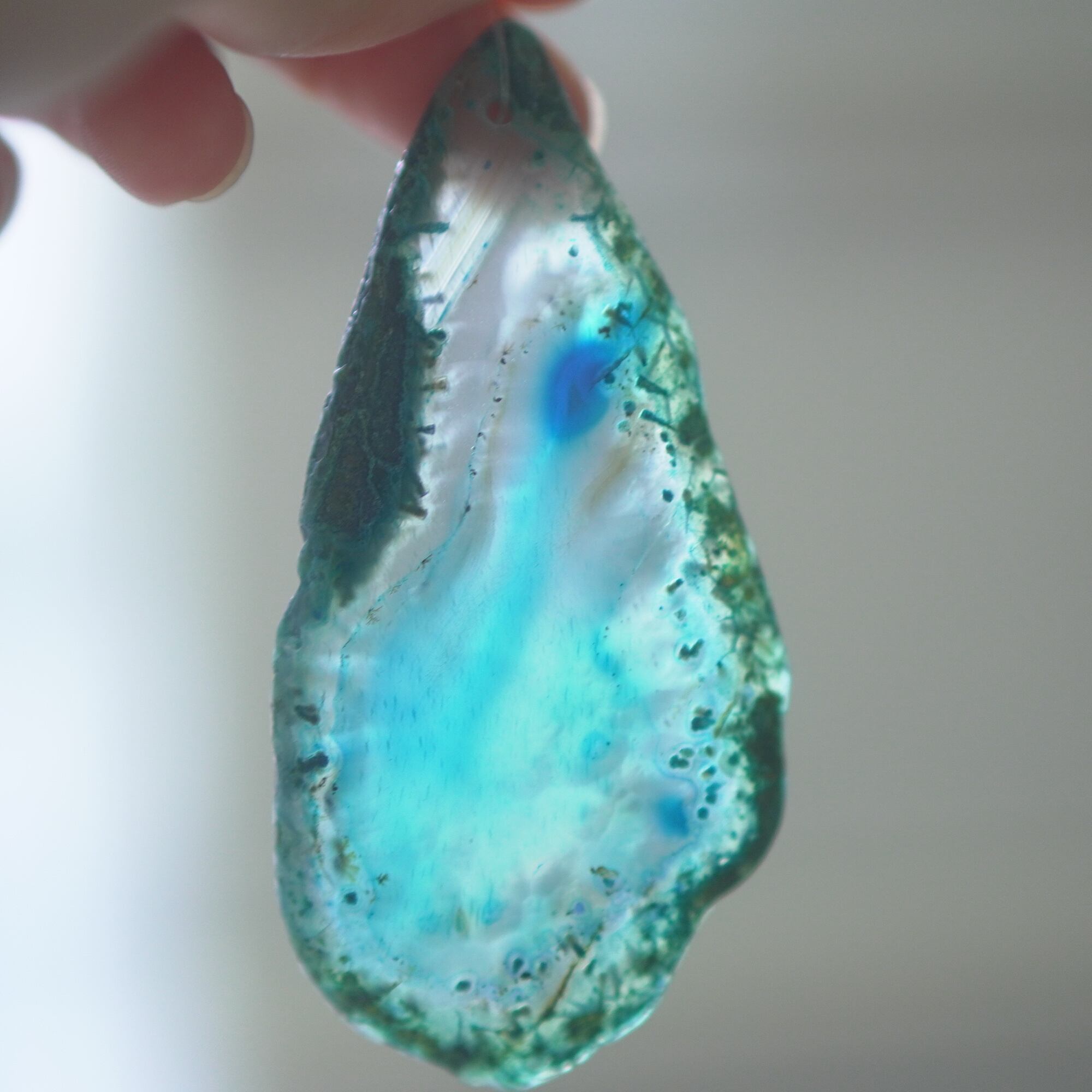 ✧✧✧染色の石なので耐光性(光による経年でのカラー変化の耐性)に優れているわけではなく一日の中で長時間強い日光に当たるような場所に飾られるのはおすすめしないのですが、陽光に透かした時にだけ真価を発揮する美しさがありますので、是非たまに翳したりして光と一緒にお楽しみいただけたらと思っております。特に濃い鮮やかな色など、気になられる場合は、日光のあまり当たらない場所に飾っていただけたらと思います✧✧✧