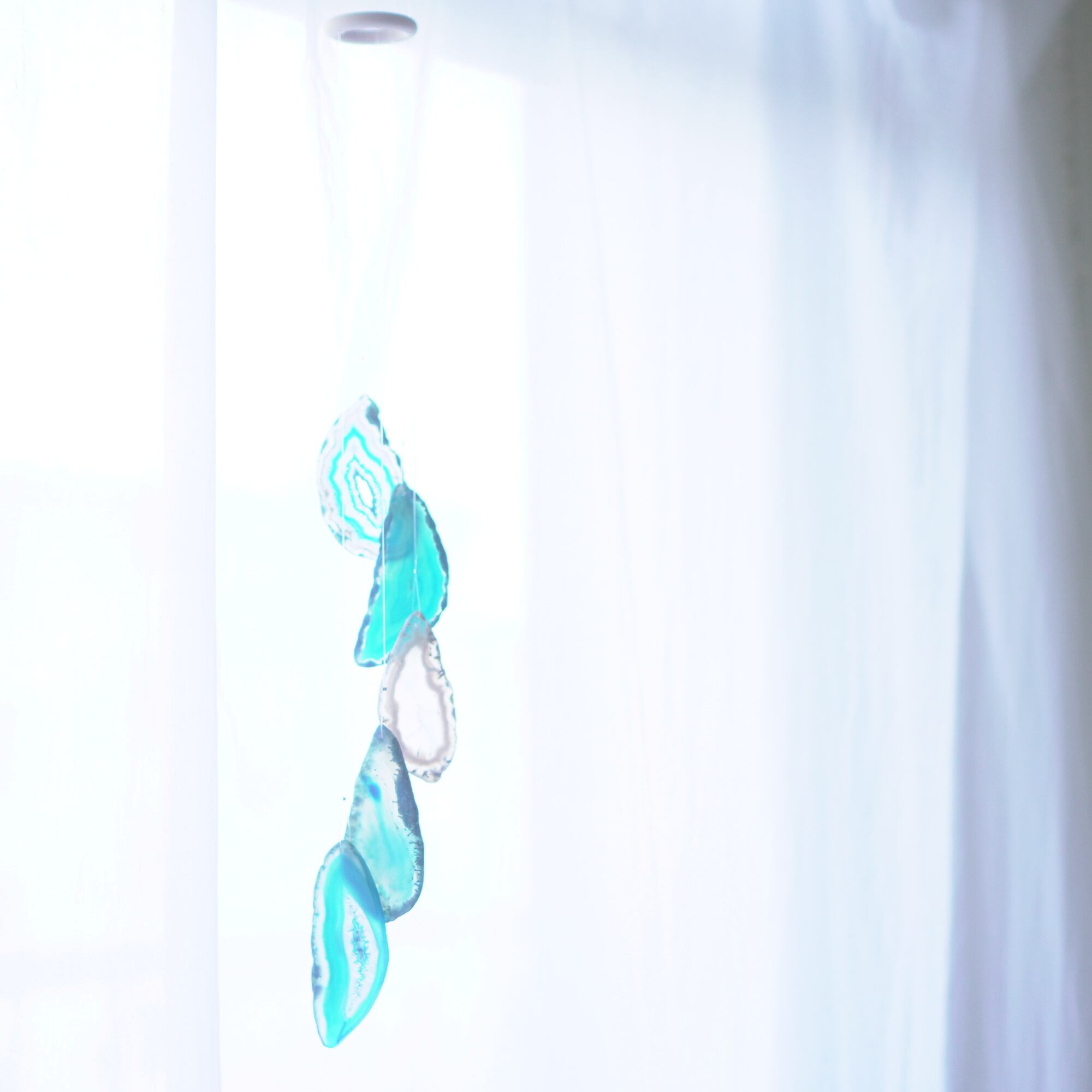 連なるアゲートが風を受けて揺れるとチリンチリン、美しい響きの音が鳴りとても癒されます。