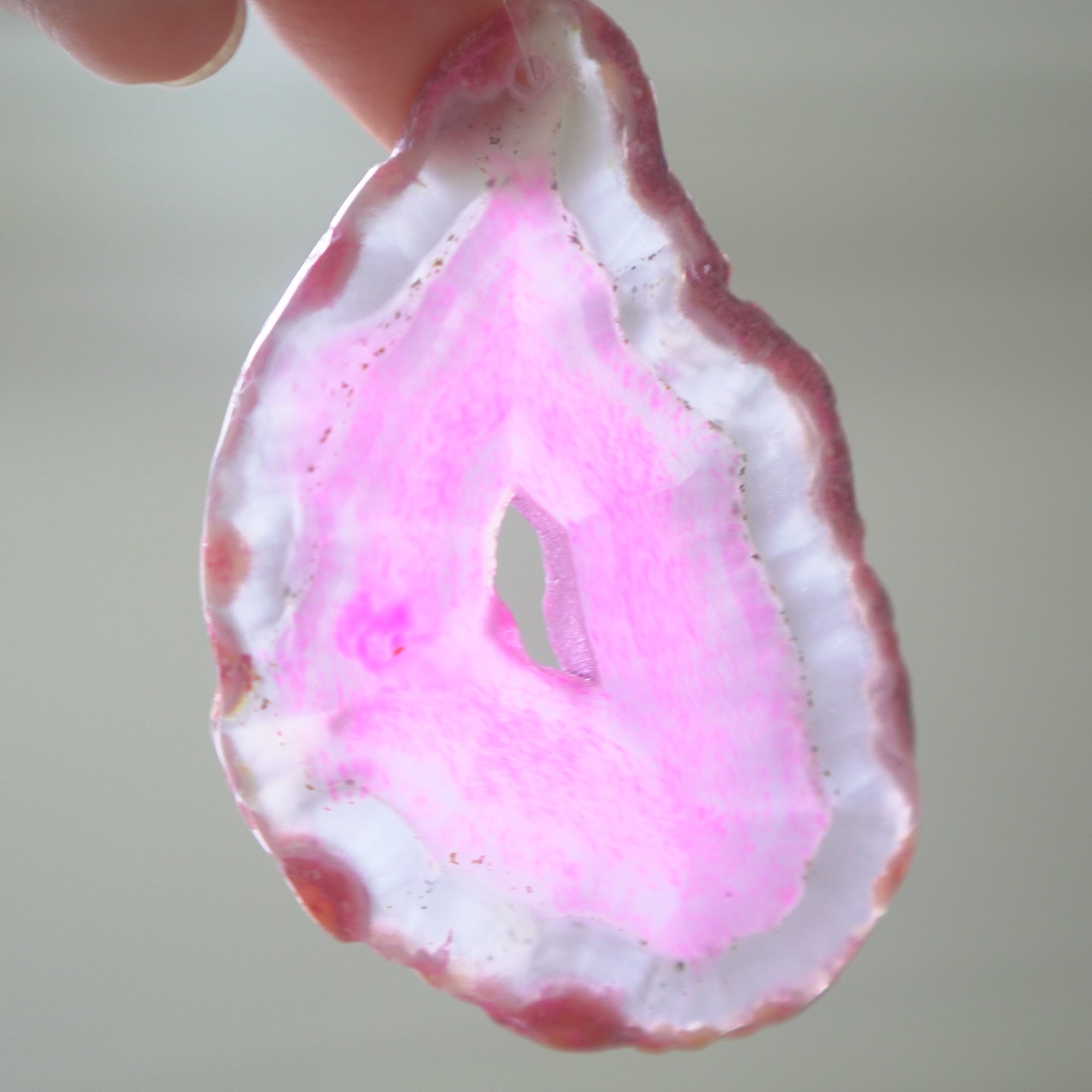 ✧✧✧染色の石なので耐光性(光による経年でのカラー変化の耐性)に優れているわけではなく一日の中で長時間強い日光に当たるような場所に飾られるのはおすすめしないのですが、陽光に透かした時にだけ真価を発揮する美しさがありますので、是非たまに翳したりして光と一緒にお楽しみいただけたらと思っております。特に濃い鮮やかな色など、気になられる場合は、日光のあまり当たらない場所に飾っていただけたらと思います✧✧✧