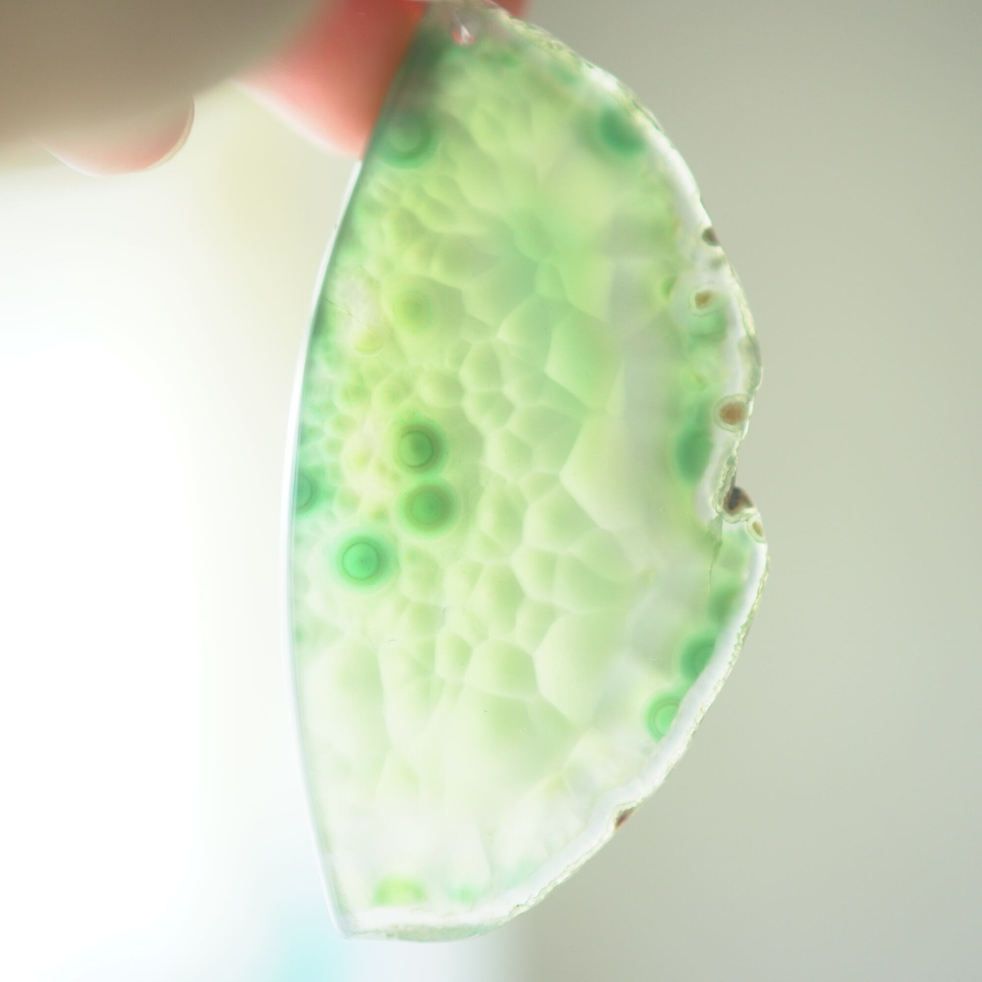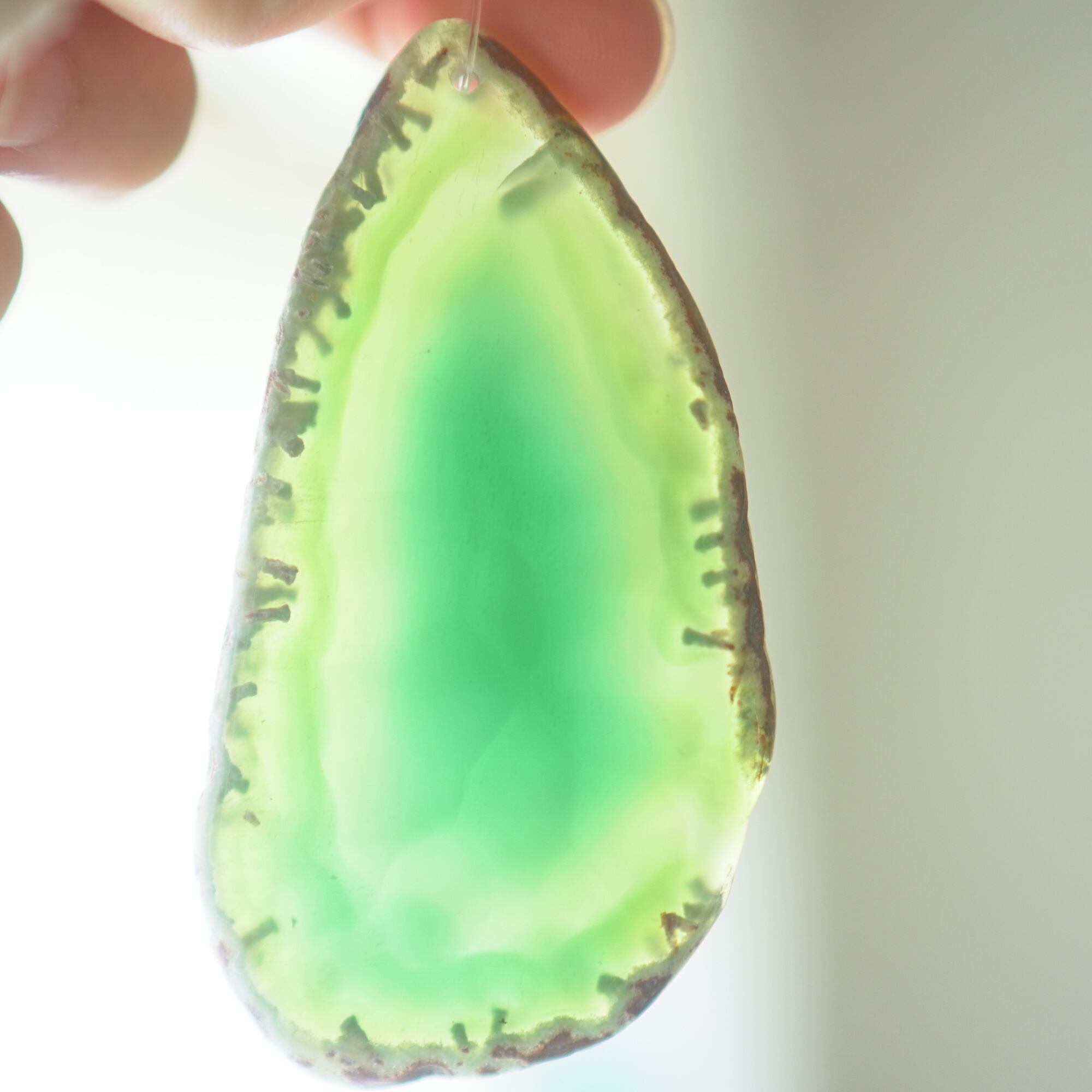 ✧✧✧染色の石なので耐光性(光による経年でのカラー変化の耐性)に優れているわけではなく一日の中で長時間強い日光に当たるような場所に飾られるのはおすすめしないのですが、陽光に透かした時にだけ真価を発揮する美しさがありますので、是非たまに翳したりして光と一緒にお楽しみいただけたらと思っております。特に濃い鮮やかな色など、気になられる場合は、日光のあまり当たらない場所に飾っていただけたらと思います✧✧✧