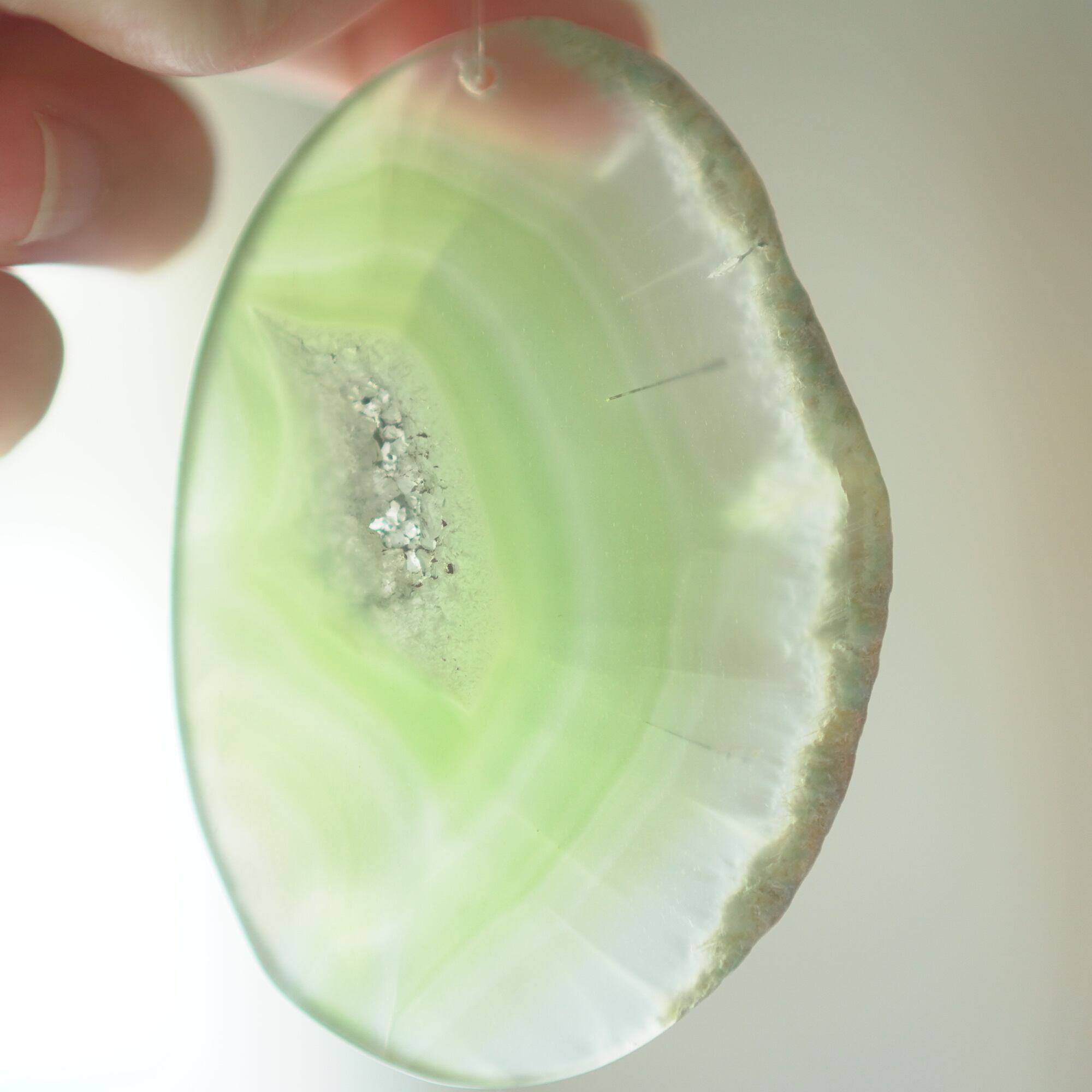 ✧✧✧染色の石なので耐光性(光による経年でのカラー変化の耐性)に優れているわけではなく一日の中で長時間強い日光に当たるような場所に飾られるのはおすすめしないのですが、陽光に透かした時にだけ真価を発揮する美しさがありますので、是非たまに翳したりして光と一緒にお楽しみいただけたらと思っております。特に濃い鮮やかな色など、気になられる場合は、日光のあまり当たらない場所に飾っていただけたらと思います✧✧✧