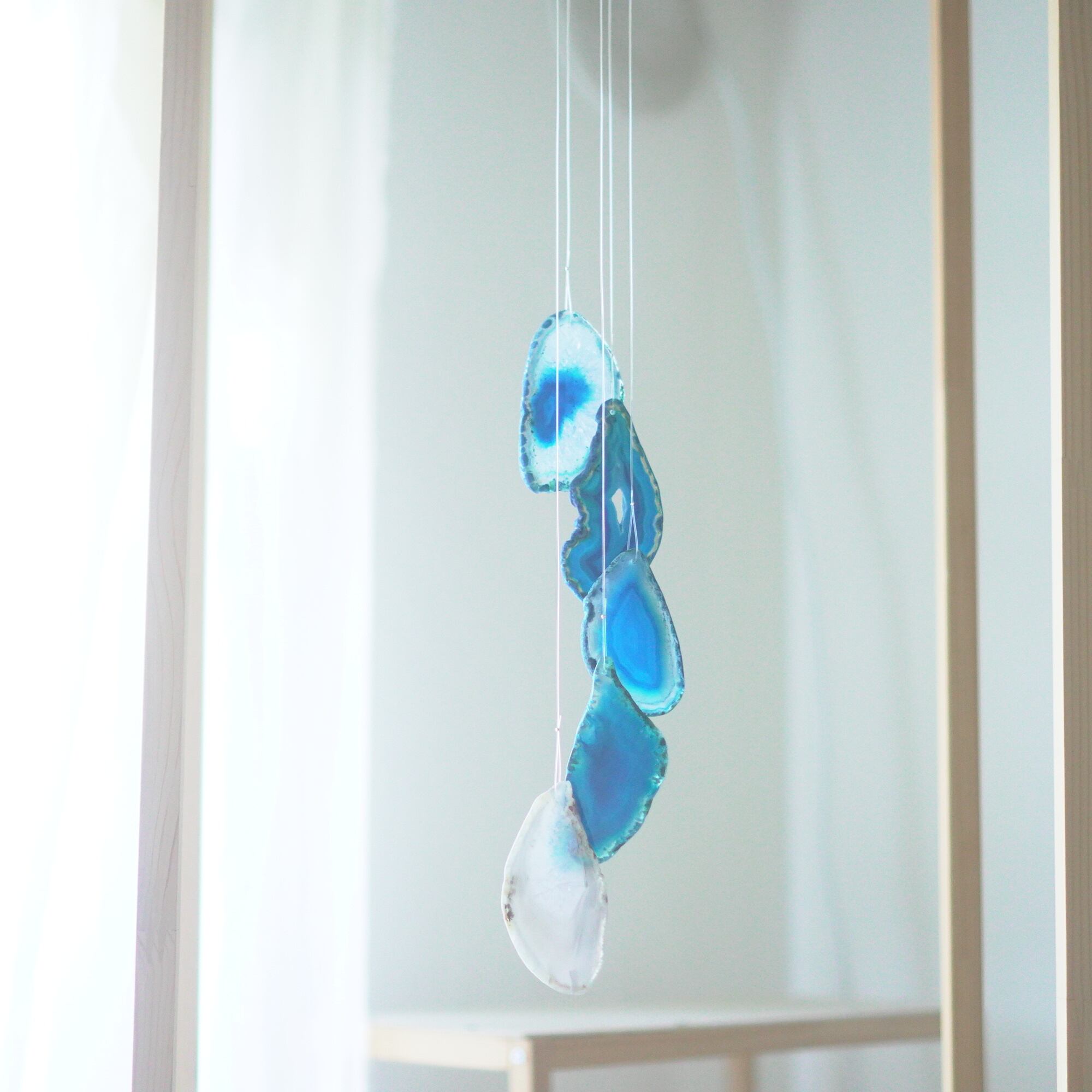 連なるアゲートが風を受けて揺れるとチリンチリン、美しい響きの音が鳴りとても癒されます。