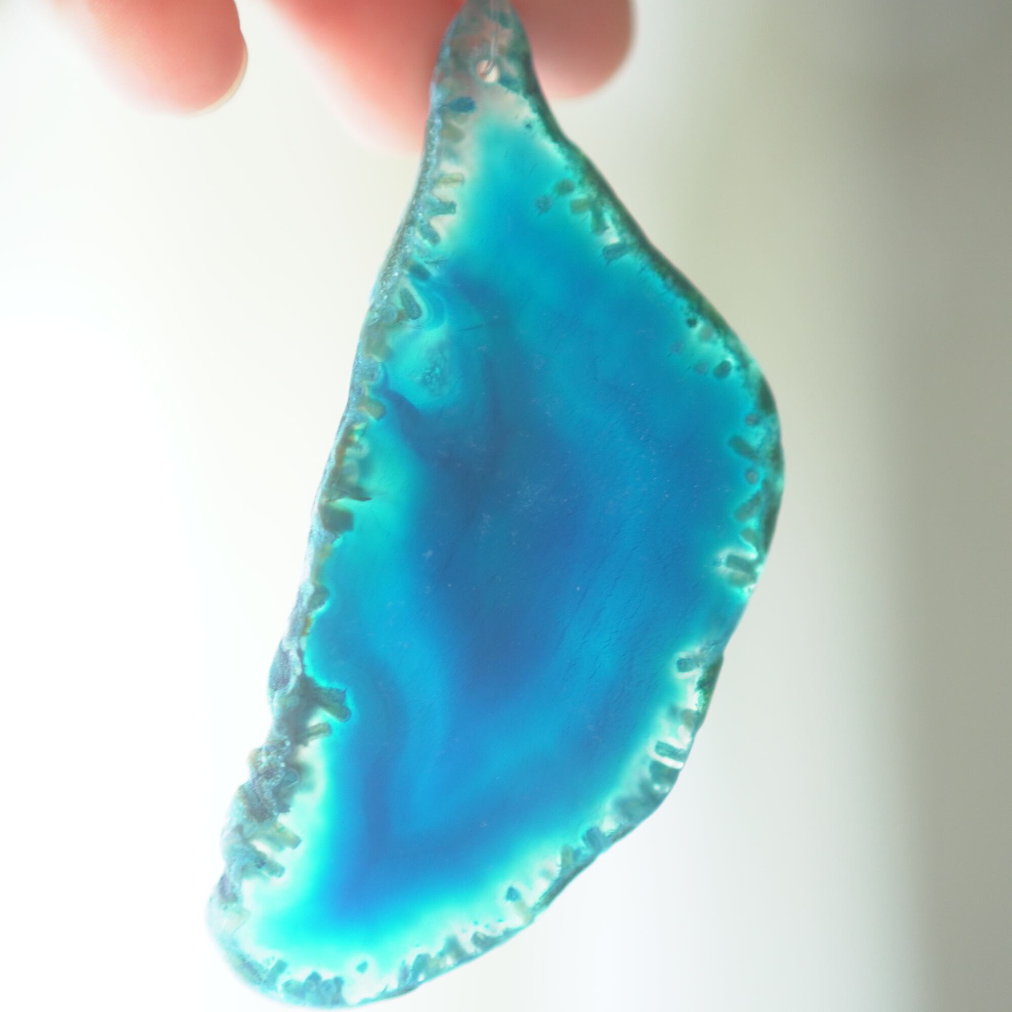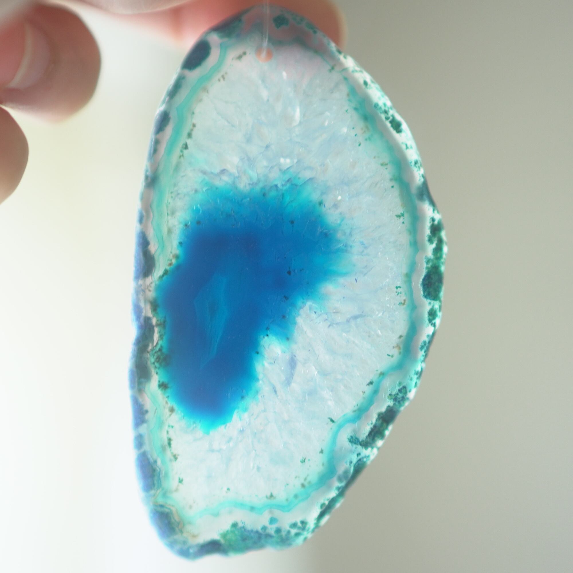✧✧✧染色の石なので耐光性(光による経年でのカラー変化の耐性)に優れているわけではなく一日の中で長時間強い日光に当たるような場所に飾られるのはおすすめしないのですが、陽光に透かした時にだけ真価を発揮する美しさがありますので、是非たまに翳したりして光と一緒にお楽しみいただけたらと思っております。特に濃い鮮やかな色など、気になられる場合は、日光のあまり当たらない場所に飾っていただけたらと思います✧✧✧