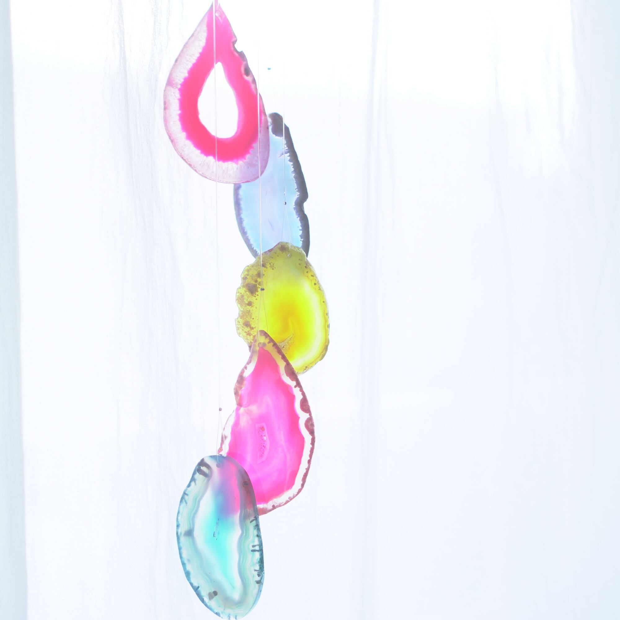 連なるアゲートが風を受けて揺れるとチリンチリン、美しい響きの音が鳴りとても癒されます。