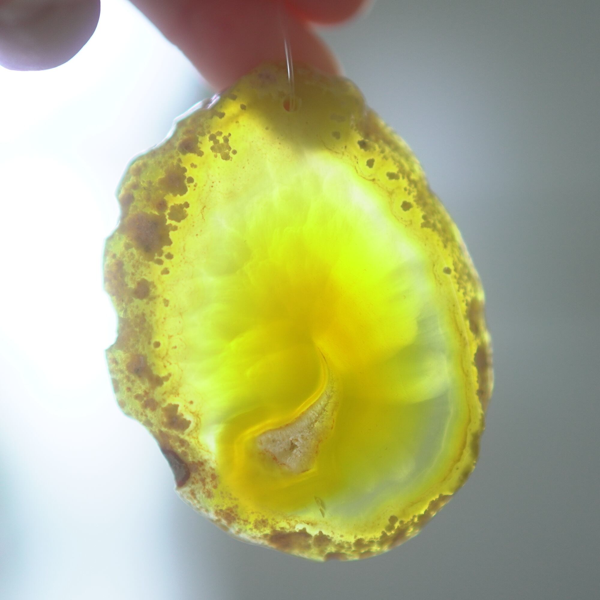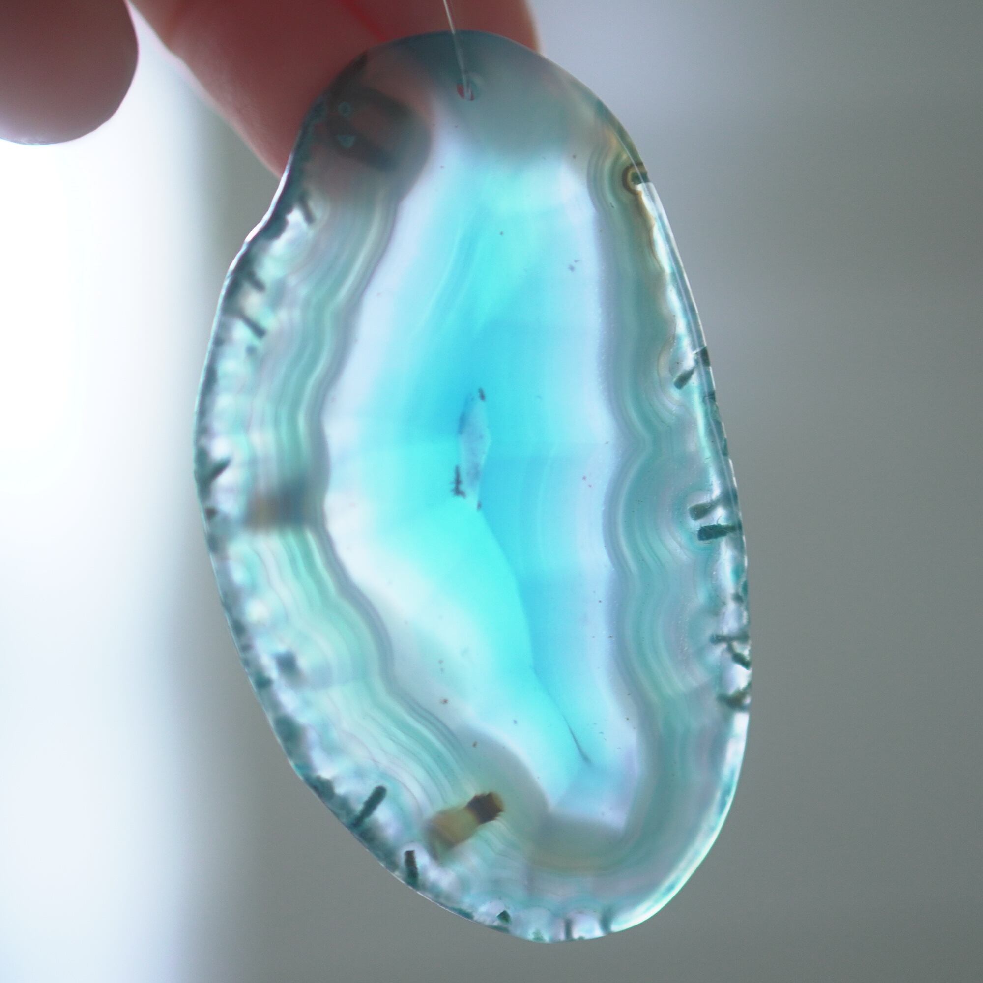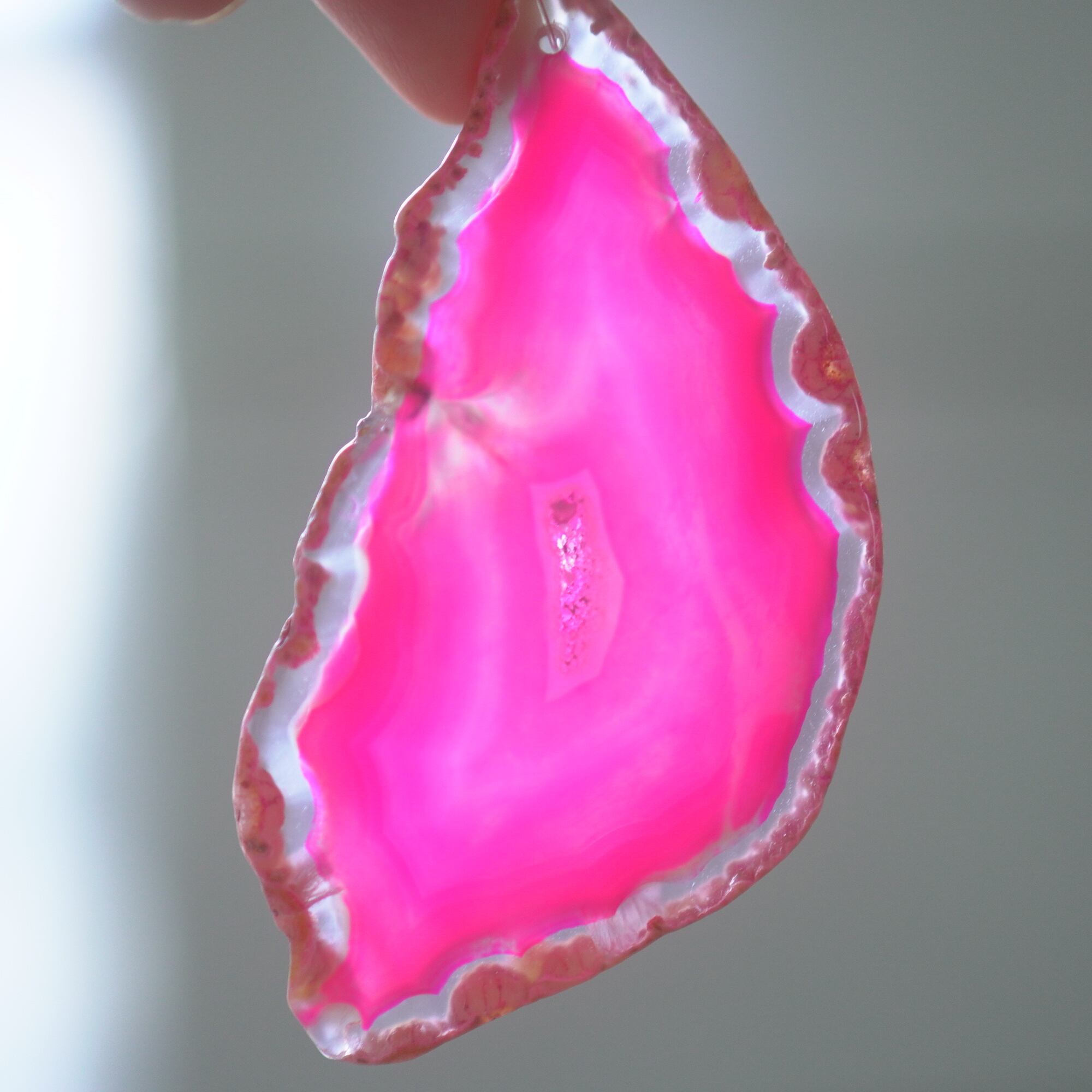 ✧✧✧染色の石なので耐光性(光による経年でのカラー変化の耐性)に優れているわけではなく一日の中で長時間強い日光に当たるような場所に飾られるのはおすすめしないのですが、陽光に透かした時にだけ真価を発揮する美しさがありますので、是非たまに翳したりして光と一緒にお楽しみいただけたらと思っております。特に濃い鮮やかな色など、気になられる場合は、日光のあまり当たらない場所に飾っていただけたらと思います✧✧✧