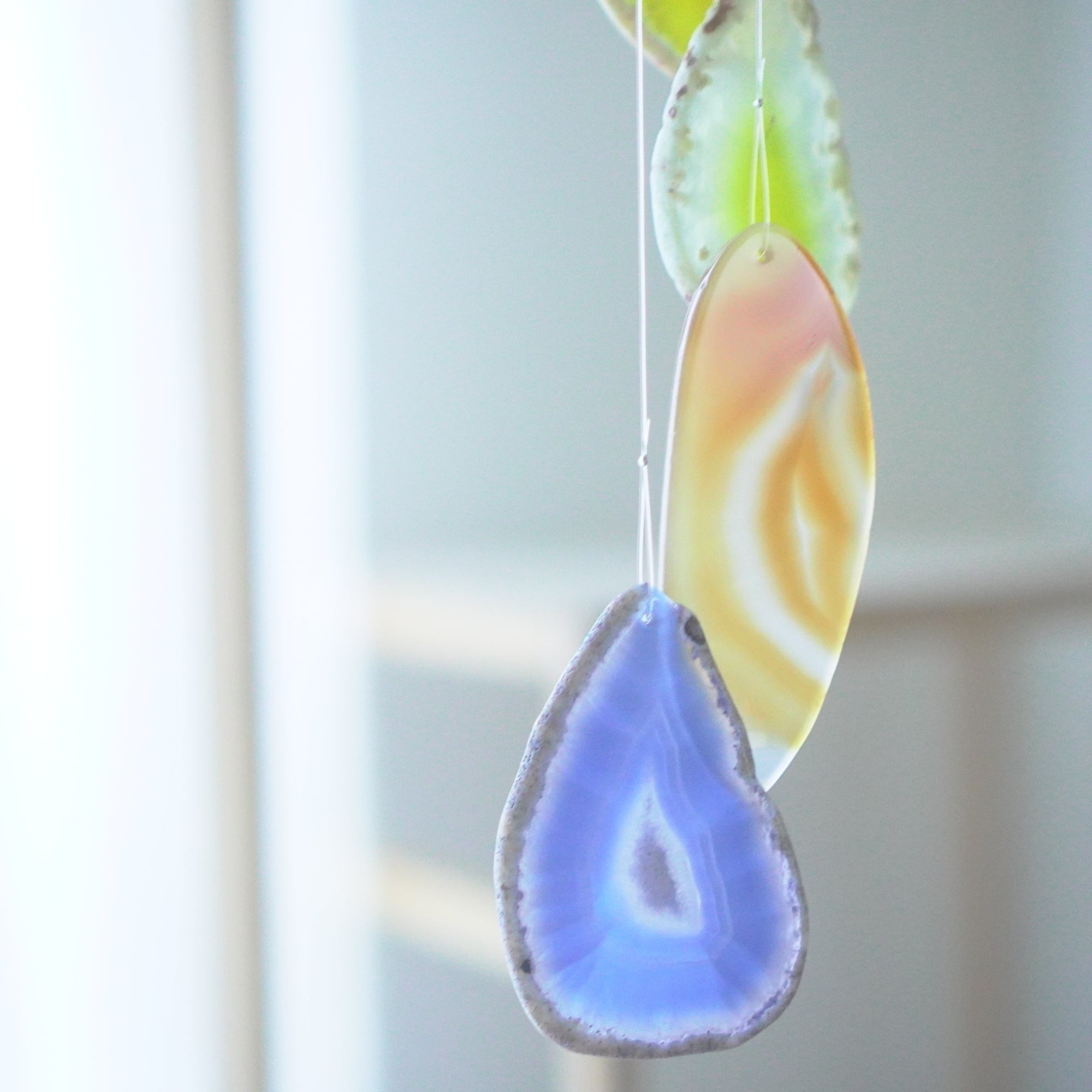 連なるアゲートが風を受けて揺れるとチリンチリン、美しい響きの音が鳴りとても癒されます。