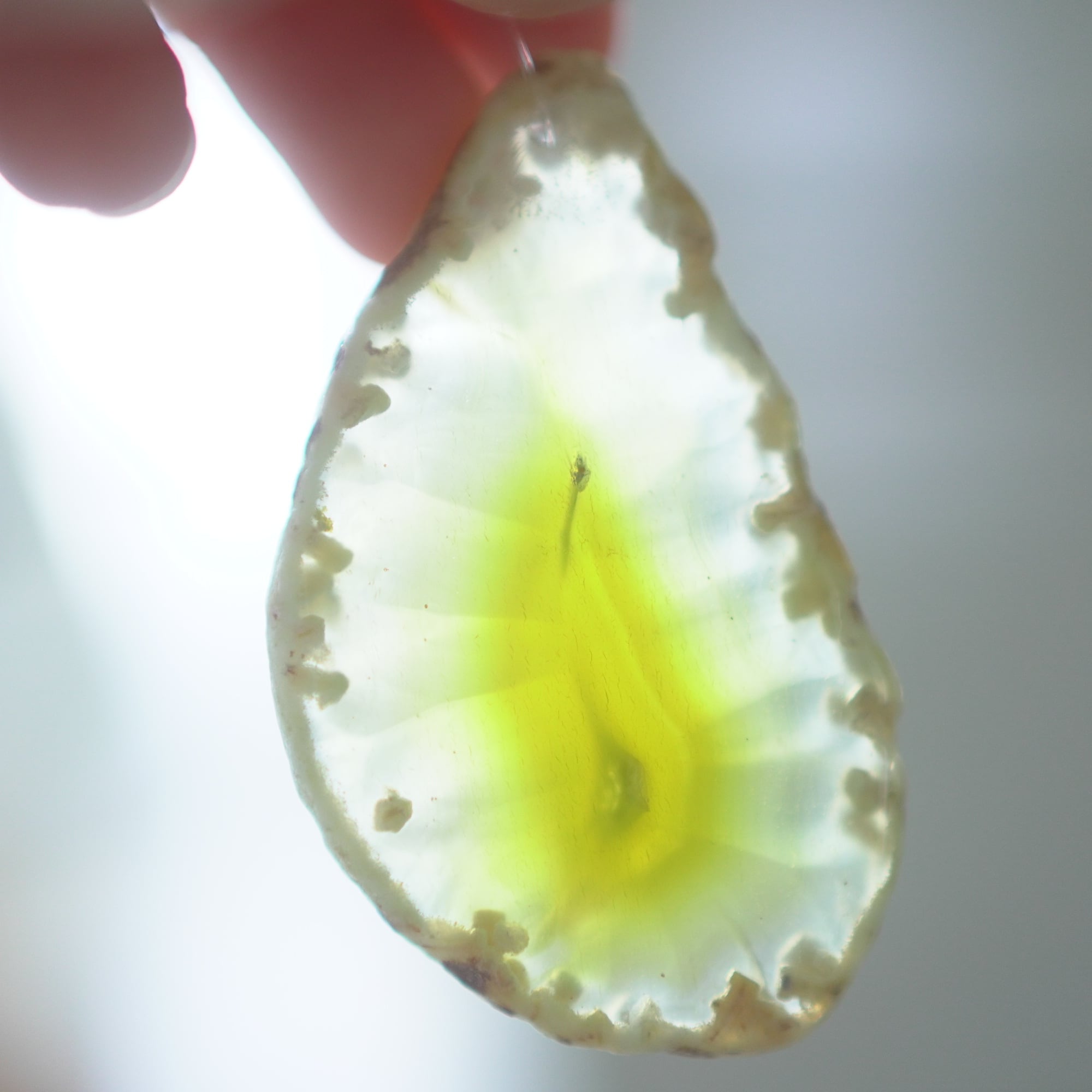 ✧✧✧染色の石なので耐光性(光による経年でのカラー変化の耐性)に優れているわけではなく一日の中で長時間強い日光に当たるような場所に飾られるのはおすすめしないのですが、陽光に透かした時にだけ真価を発揮する美しさがありますので、是非たまに翳したりして光と一緒にお楽しみいただけたらと思っております。特に濃い鮮やかな色など、気になられる場合は、日光のあまり当たらない場所に飾っていただけたらと思います✧✧✧