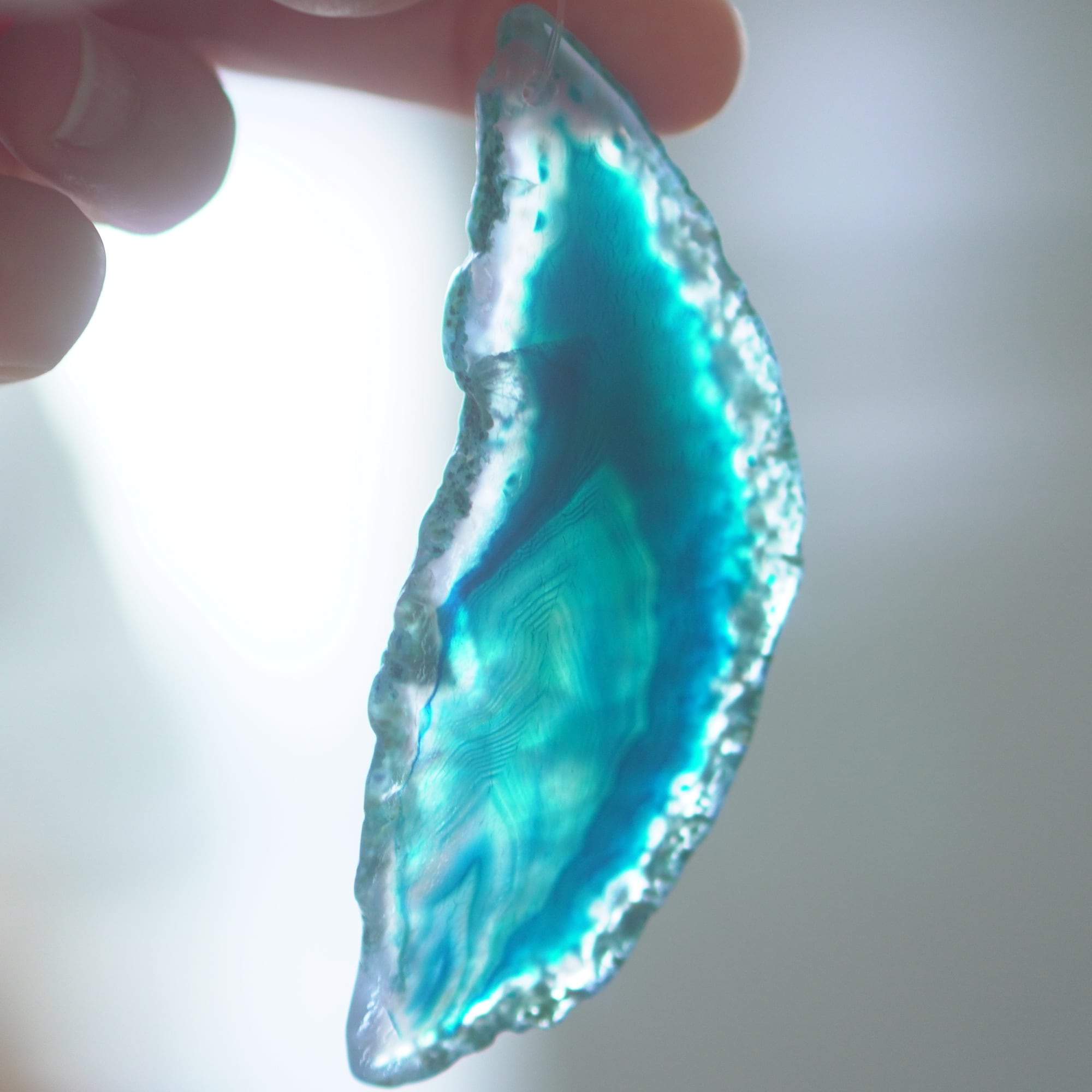 ✧✧✧染色の石なので耐光性(光による経年でのカラー変化の耐性)に優れているわけではなく一日の中で長時間強い日光に当たるような場所に飾られるのはおすすめしないのですが、陽光に透かした時にだけ真価を発揮する美しさがありますので、是非たまに翳したりして光と一緒にお楽しみいただけたらと思っております。特に濃い鮮やかな色など、気になられる場合は、日光のあまり当たらない場所に飾っていただけたらと思います✧✧✧