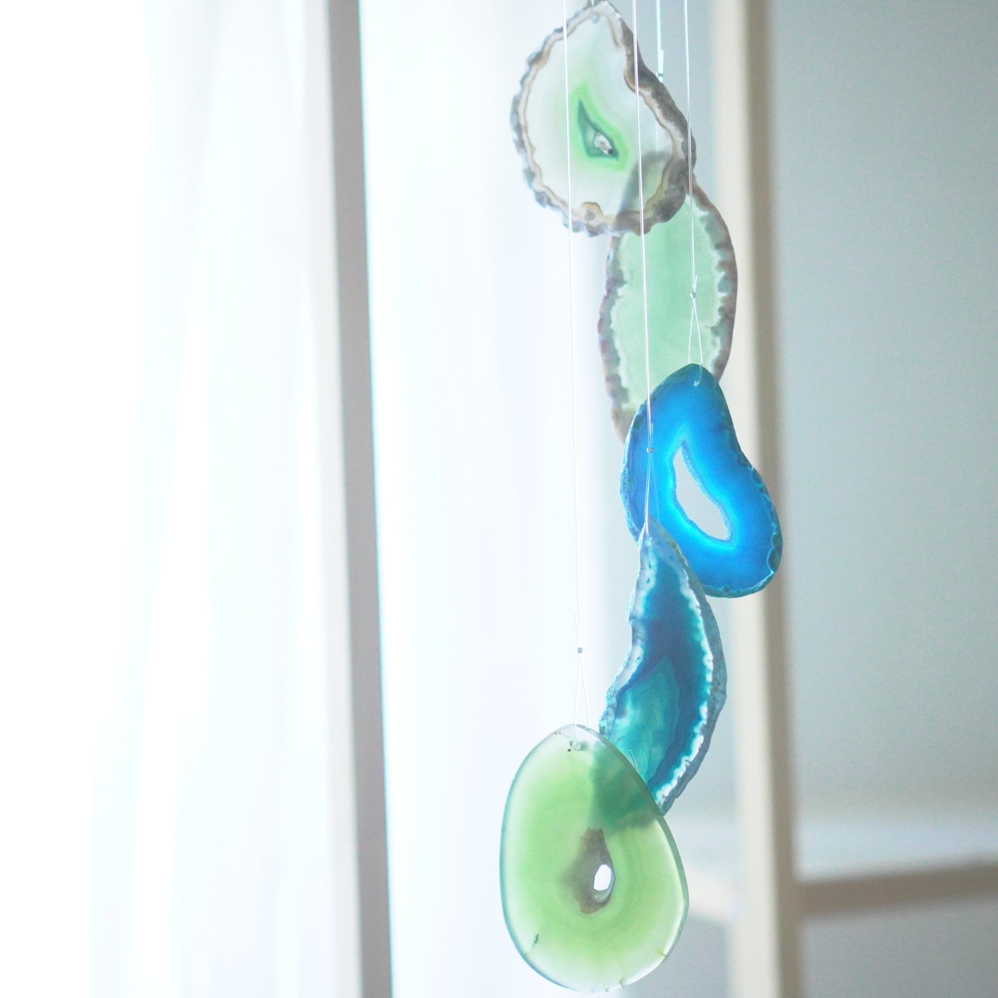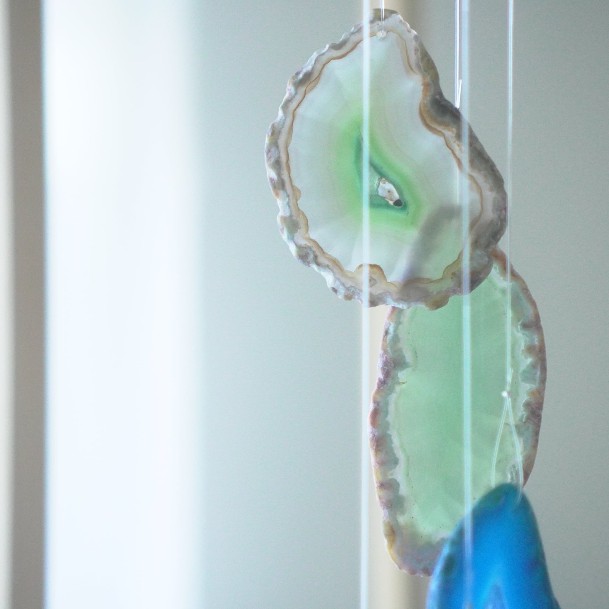 連なるアゲートが風を受けて揺れるとチリンチリン、美しい響きの音が鳴りとても癒されます。
