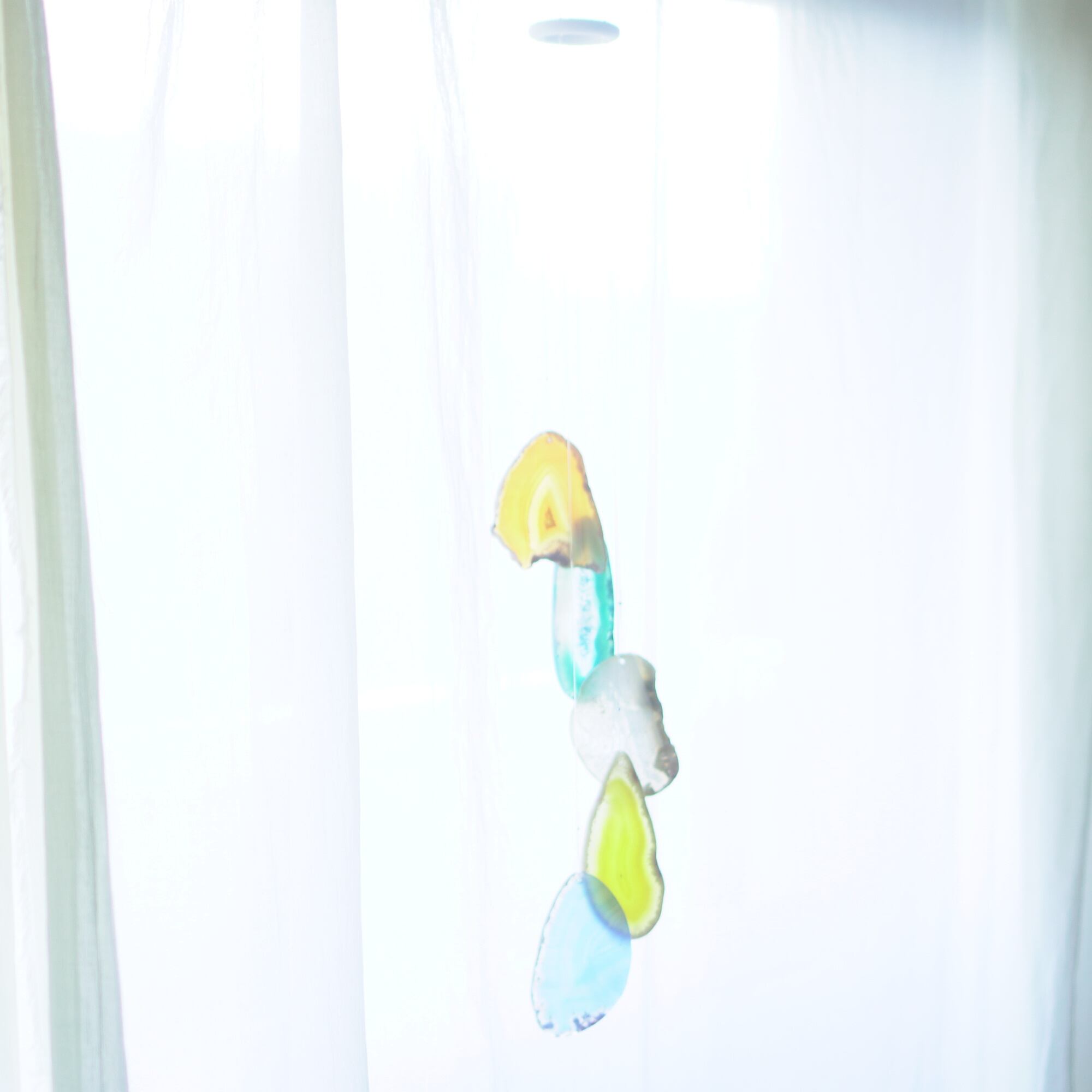 そしてカーテン越しではなく直射日光を当てた際のサンキャッチャーとしてのチャイムも、美しい光をお部屋の中に運んでくれます。