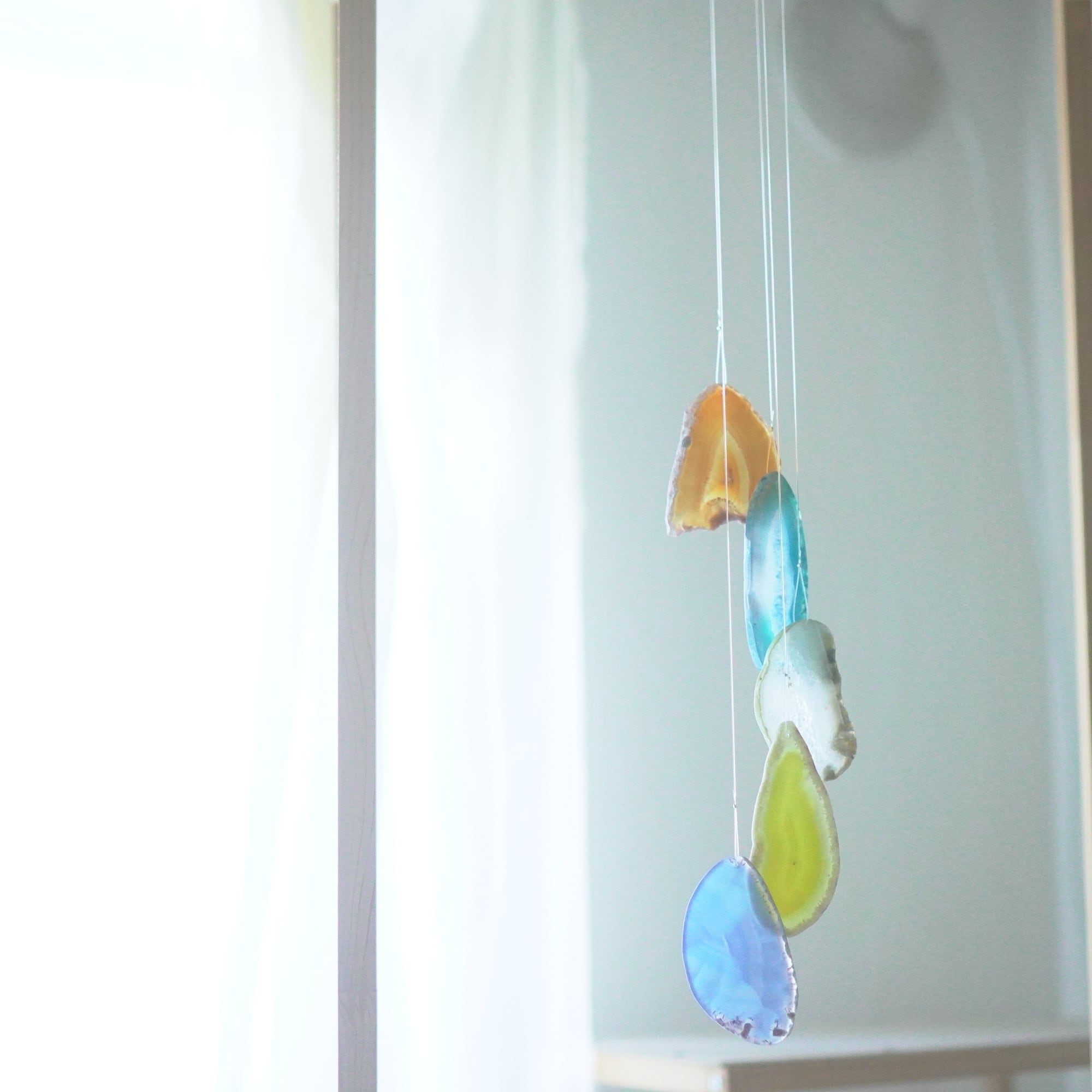 連なるアゲートが風を受けて揺れるとチリンチリン、美しい響きの音が鳴りとても癒されます。
