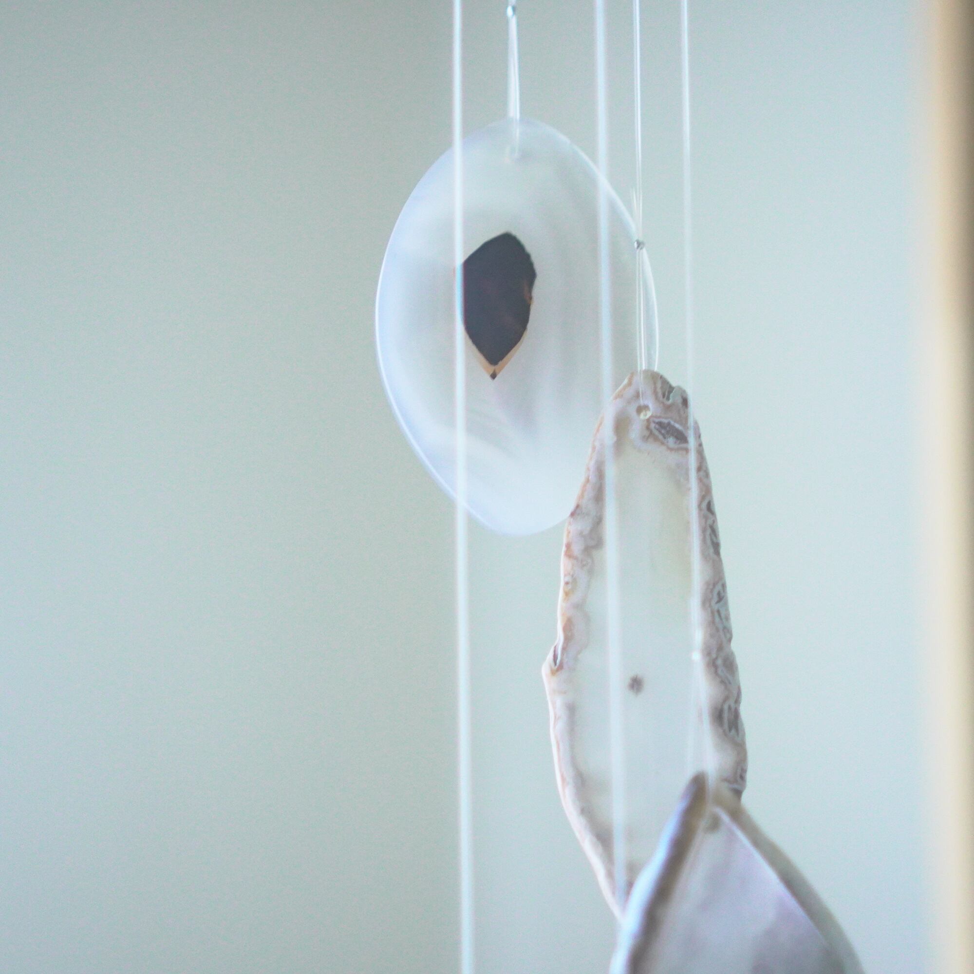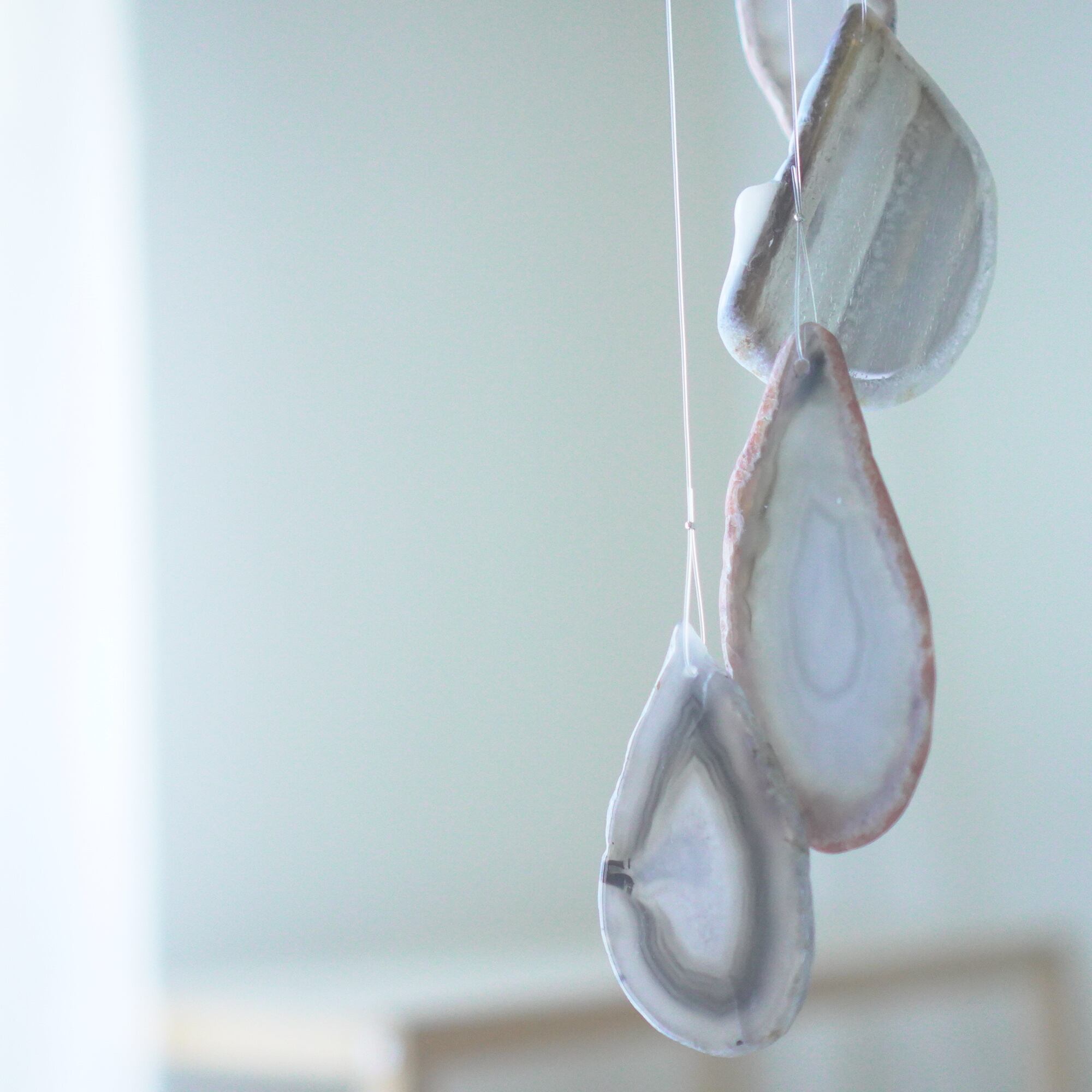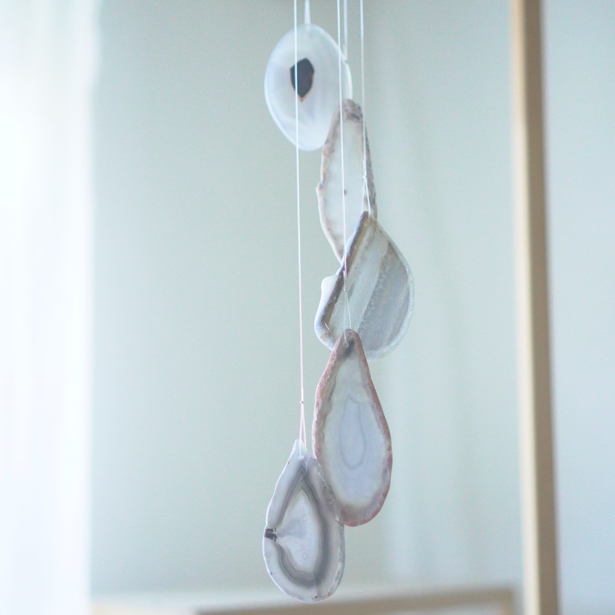 連なるアゲートが風を受けて揺れるとチリンチリン、美しい響きの音が鳴りとても癒されます。