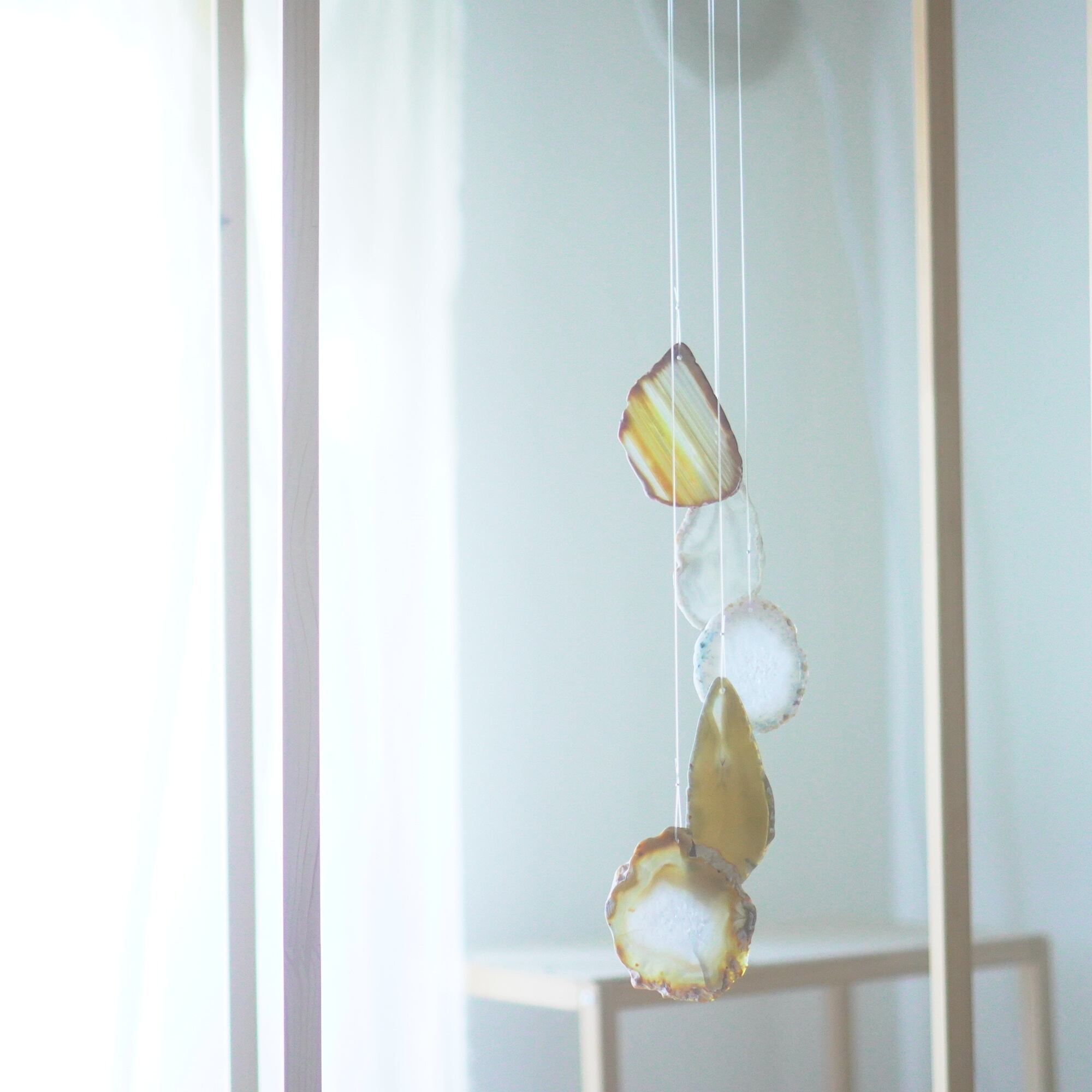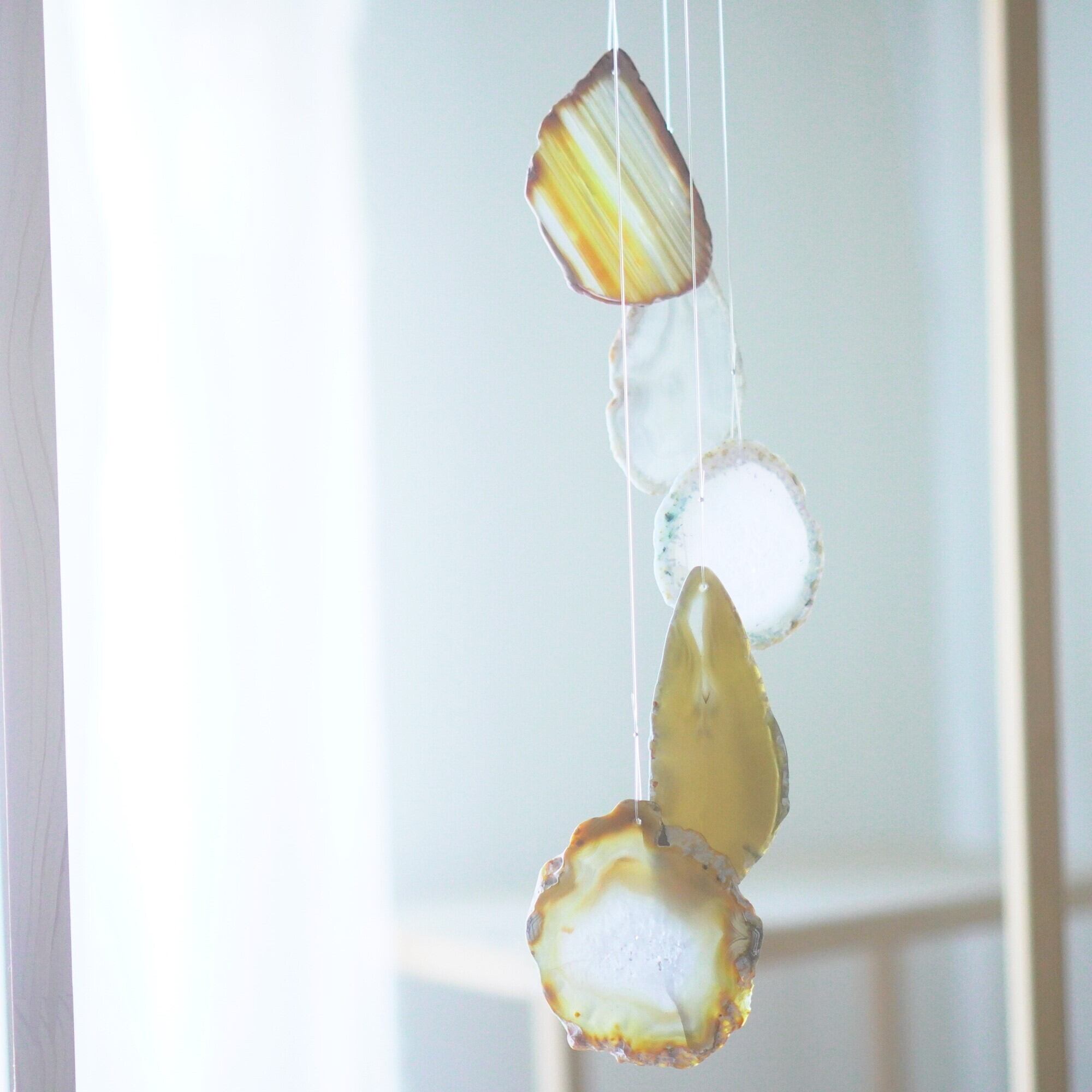 連なるアゲートが風を受けて揺れるとチリンチリン、美しい響きの音が鳴りとても癒されます。