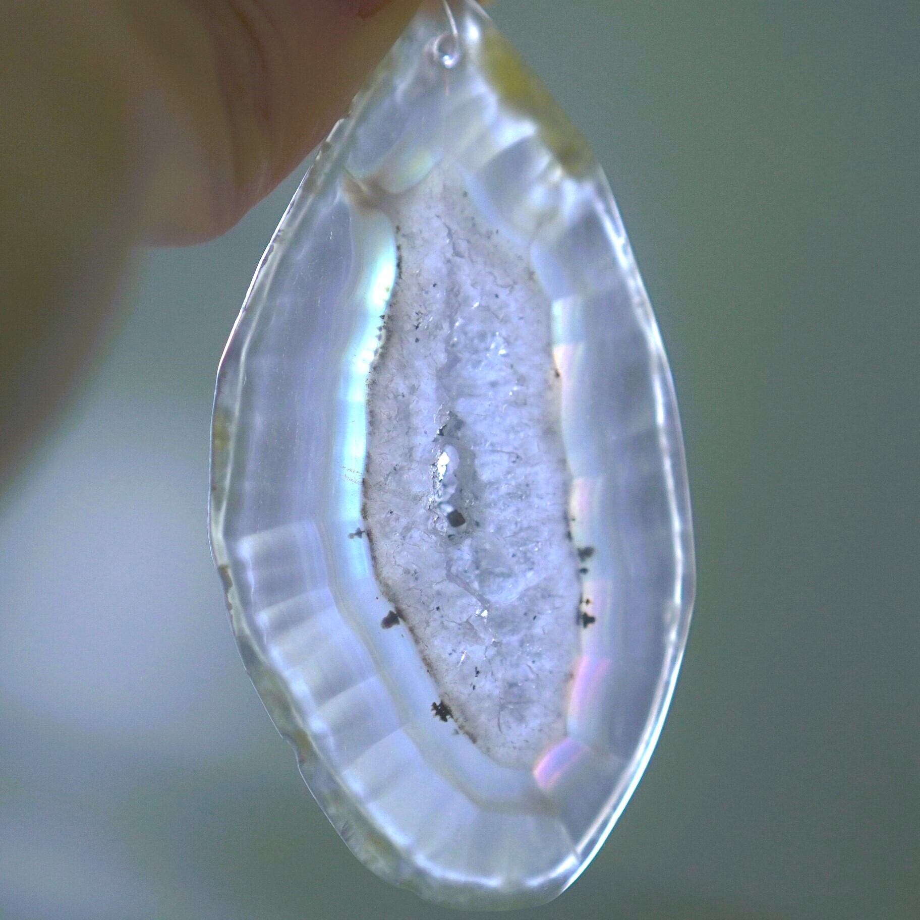 ✧✧✧瑪瑙の濃い色は染色によるもので、水に濡れたり布で擦ると多少色落ちします。飾るものなので大丈夫かと思いますが白いお洋服などには触れないようにされてください。汚れが気になる時は若干の色落ち前提で水を軽く含ませた布やティッシュでやさしく拭いていただくことは大丈夫です。また、画像のような細かなヒビ・カケはスライスメノウの加工上かなり多くあるので、チャイムとしての機能や全体の外観を著しく損なうものを除き、見た目の完璧さ<音色の響き重視で選んで使用しております、よろしくお願い致します✧✧✧