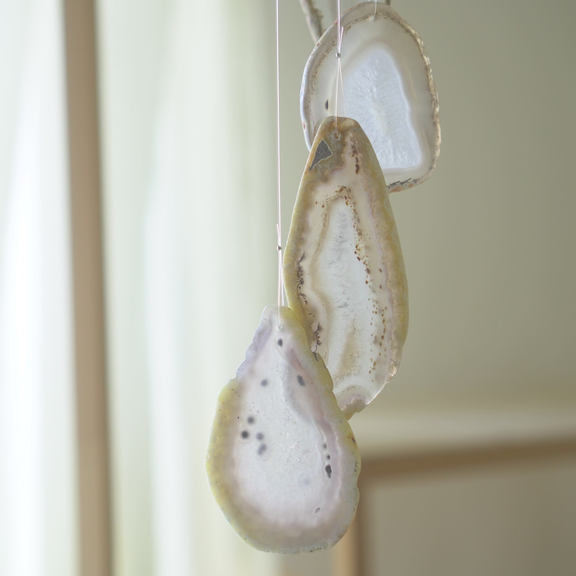 連なるアゲートが風を受けて揺れるとチリンチリン、美しい響きの音が鳴りとても癒されます。