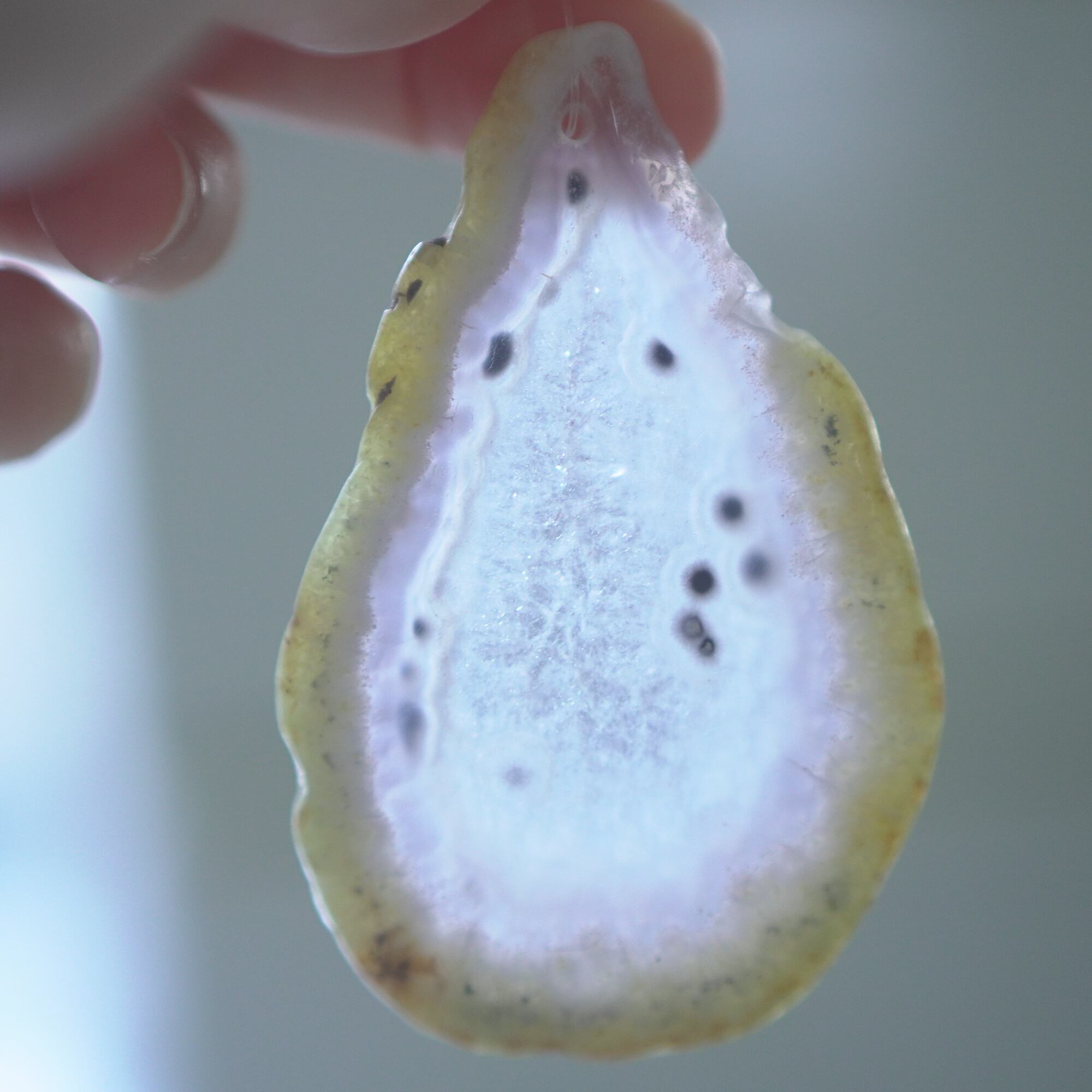✧✧✧染色の石なので耐光性(光による経年でのカラー変化の耐性)に優れているわけではなく一日の中で長時間強い日光に当たるような場所に飾られるのはおすすめしないのですが、陽光に透かした時にだけ真価を発揮する美しさがありますので、是非たまに翳したりして光と一緒にお楽しみいただけたらと思っております。特に濃い鮮やかな色など、気になられる場合は、日光のあまり当たらない場所に飾っていただけたらと思います✧✧✧