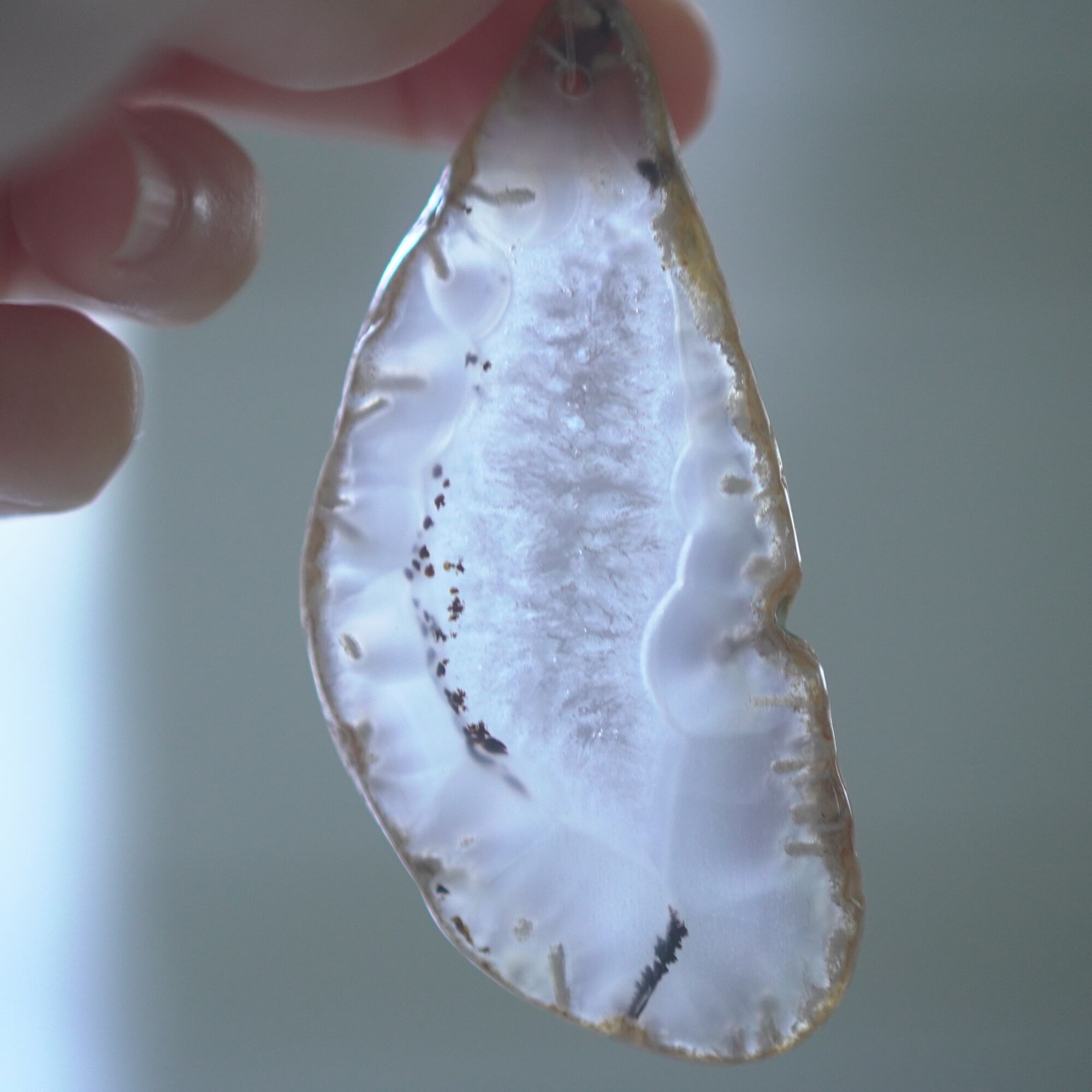 Agate Slice , Natural Wood , Nylon Cord , Metal