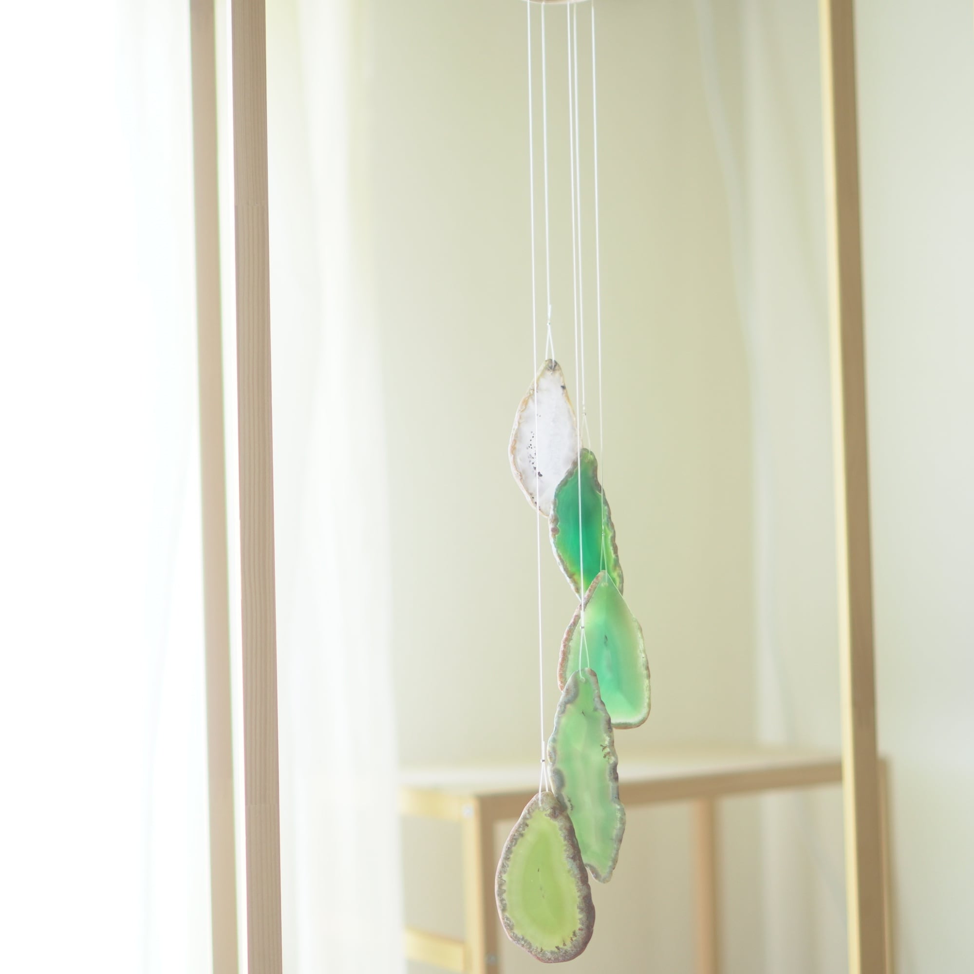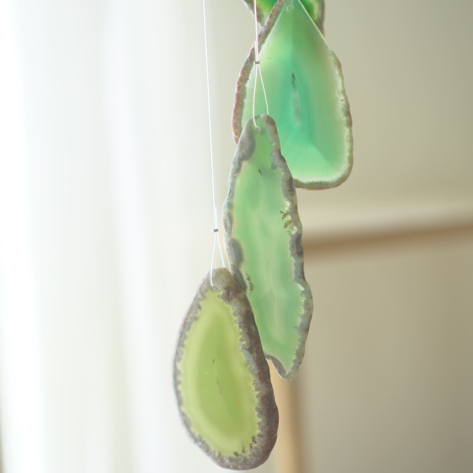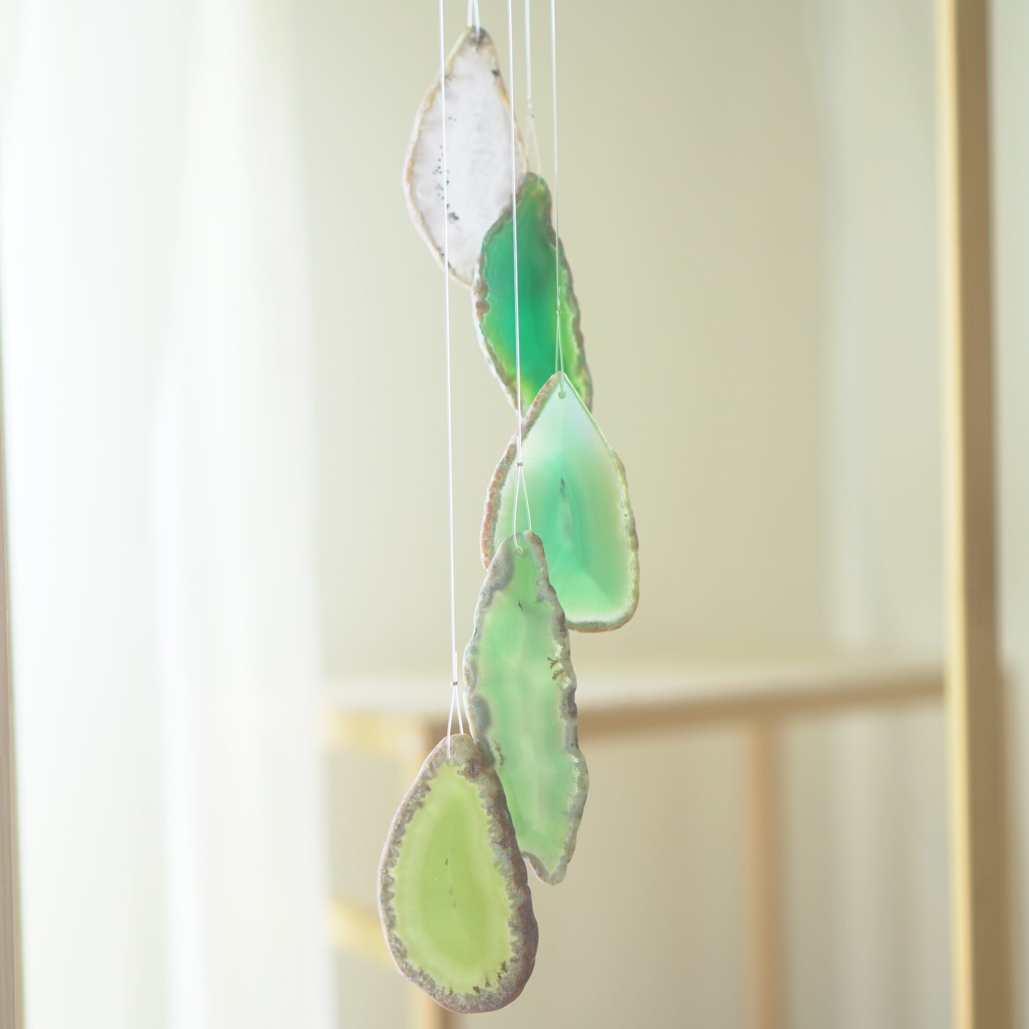 連なるアゲートが風を受けて揺れるとチリンチリン、美しい響きの音が鳴りとても癒されます。