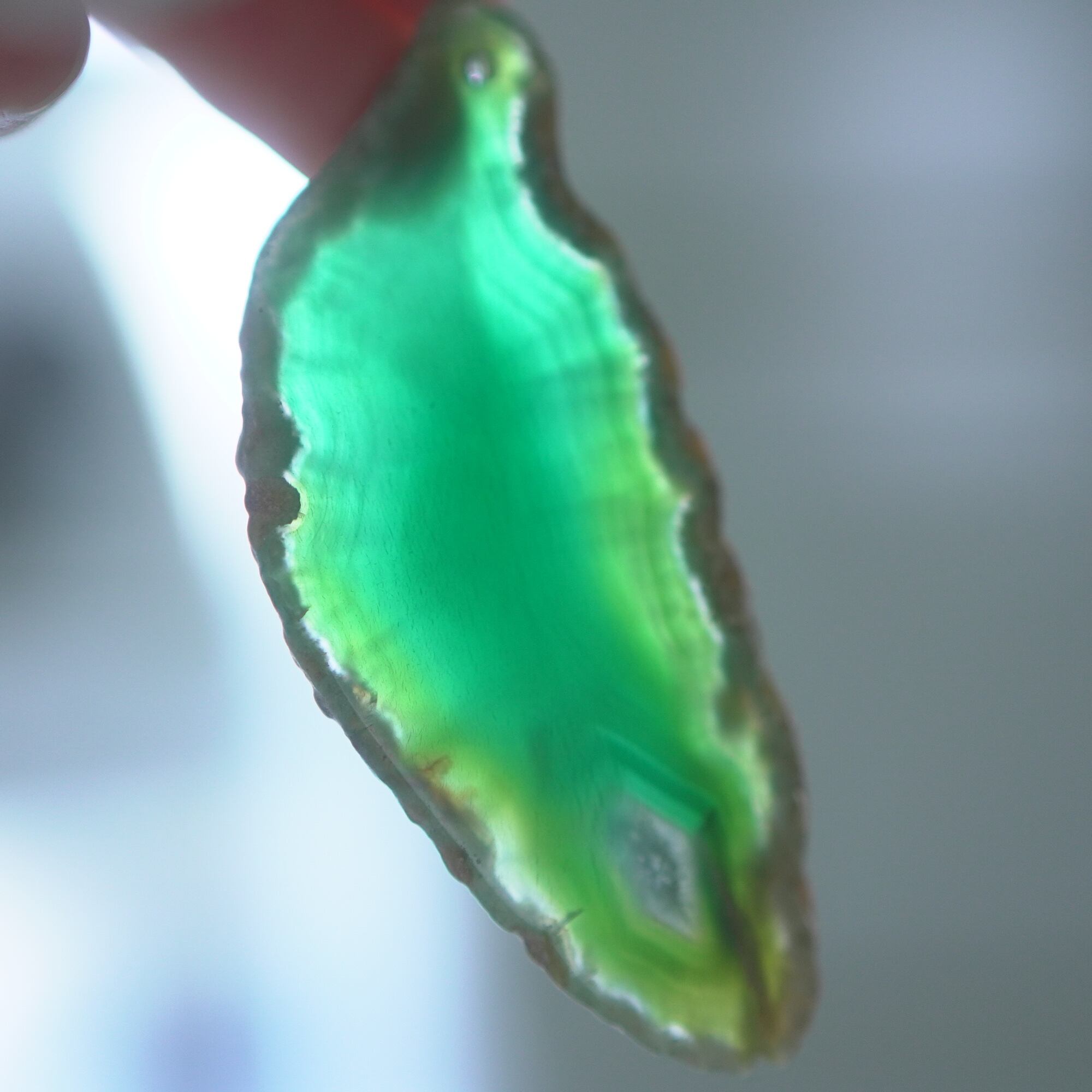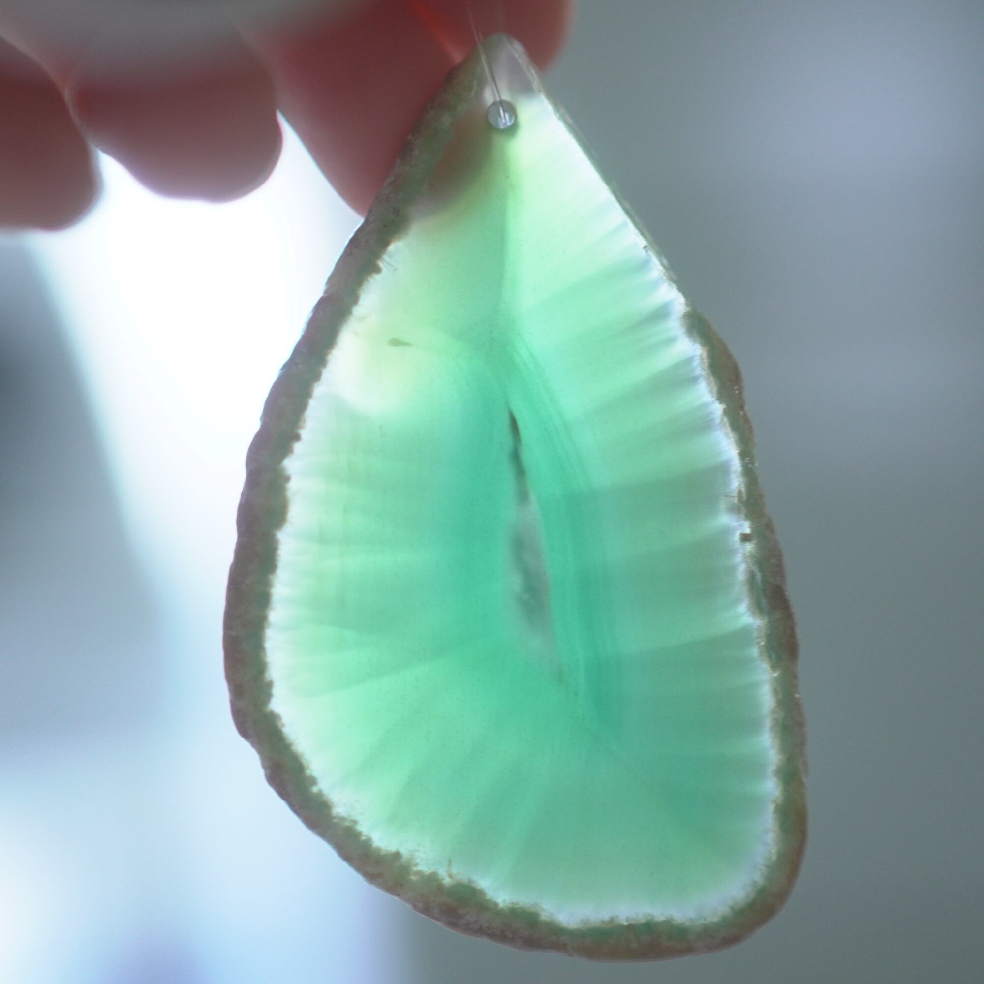 ✧✧✧染色の石なので耐光性(光による経年でのカラー変化の耐性)に優れているわけではなく一日の中で長時間強い日光に当たるような場所に飾られるのはおすすめしないのですが、陽光に透かした時にだけ真価を発揮する美しさがありますので、是非たまに翳したりして光と一緒にお楽しみいただけたらと思っております。特に濃い鮮やかな色など、気になられる場合は、日光のあまり当たらない場所に飾っていただけたらと思います✧✧✧