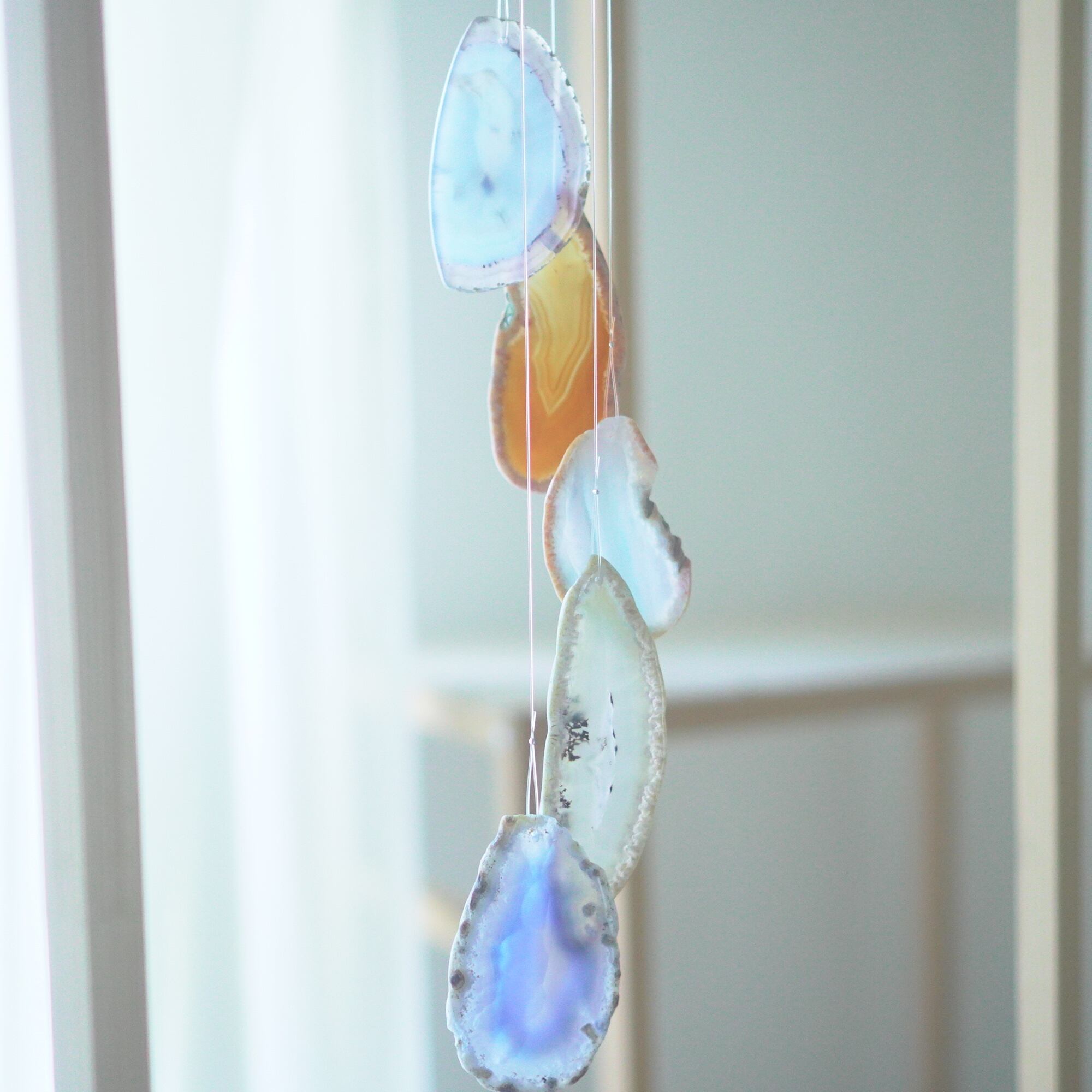 連なるアゲートが風を受けて揺れるとチリンチリン、美しい響きの音が鳴りとても癒されます。