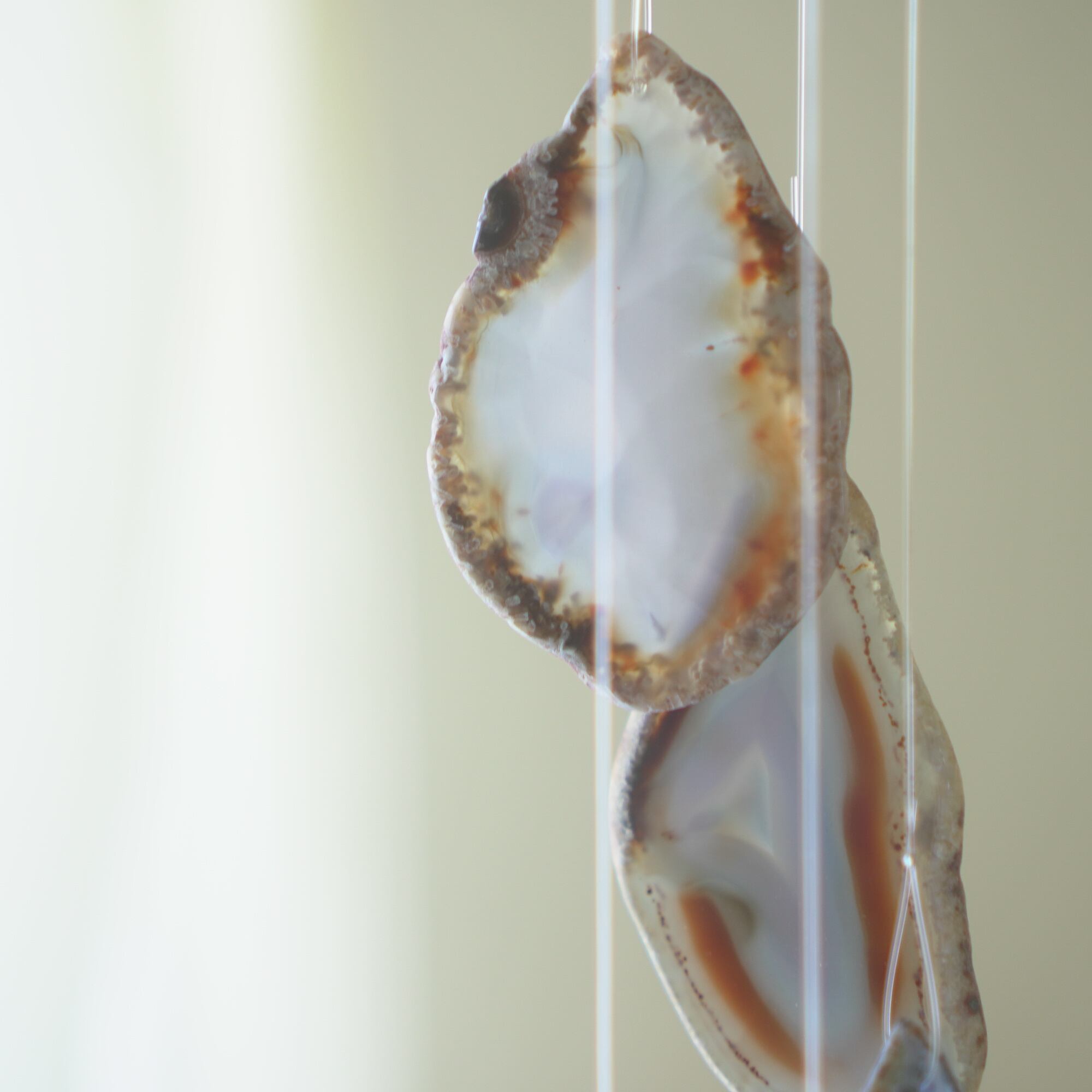 連なるアゲートが風を受けて揺れるとチリンチリン、美しい響きの音が鳴りとても癒されます。