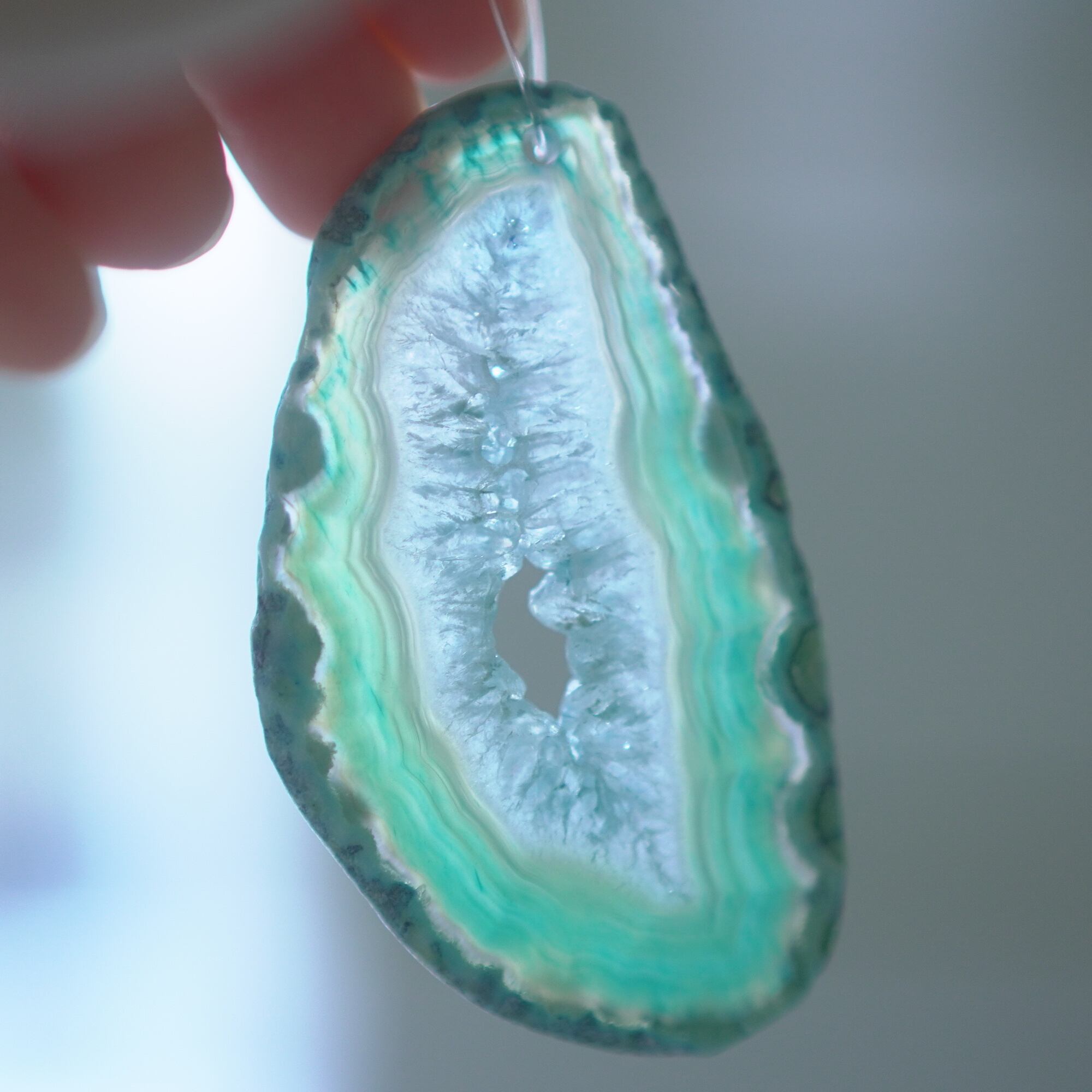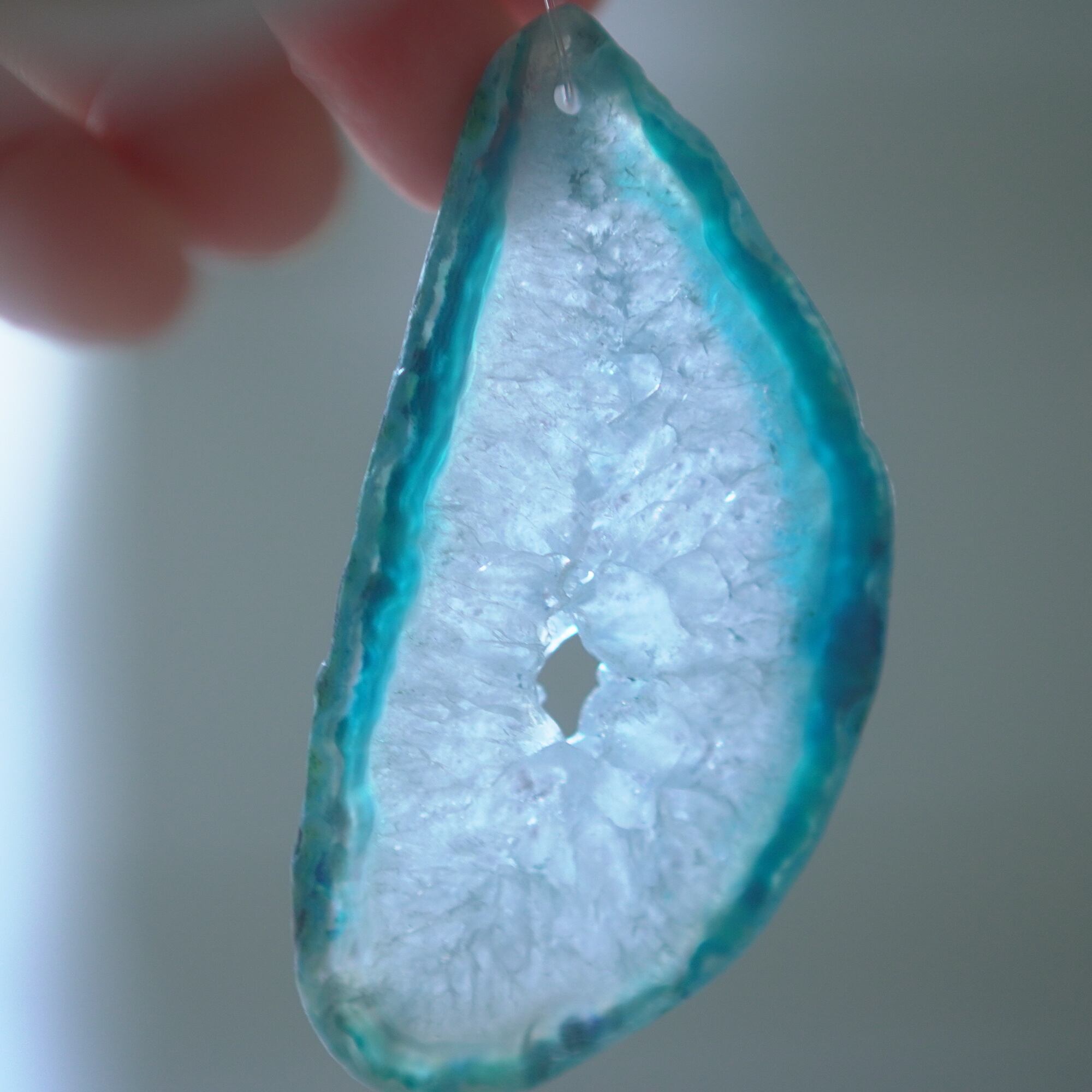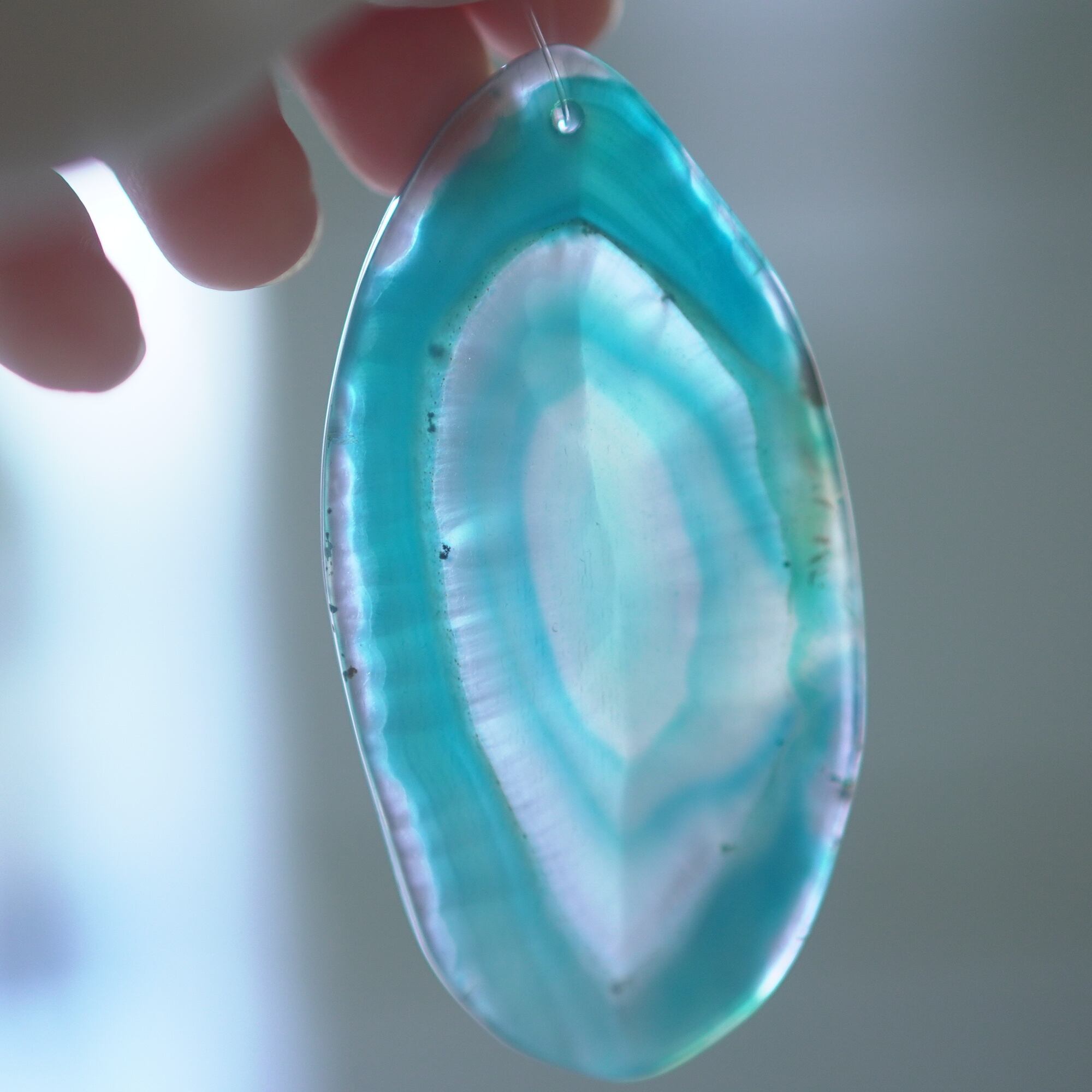 ✧✧✧染色の石なので耐光性(光による経年でのカラー変化の耐性)に優れているわけではなく一日の中で長時間強い日光に当たるような場所に飾られるのはおすすめしないのですが、陽光に透かした時にだけ真価を発揮する美しさがありますので、是非たまに翳したりして光と一緒にお楽しみいただけたらと思っております。特に濃い鮮やかな色など、気になられる場合は、日光のあまり当たらない場所に飾っていただけたらと思います✧✧✧