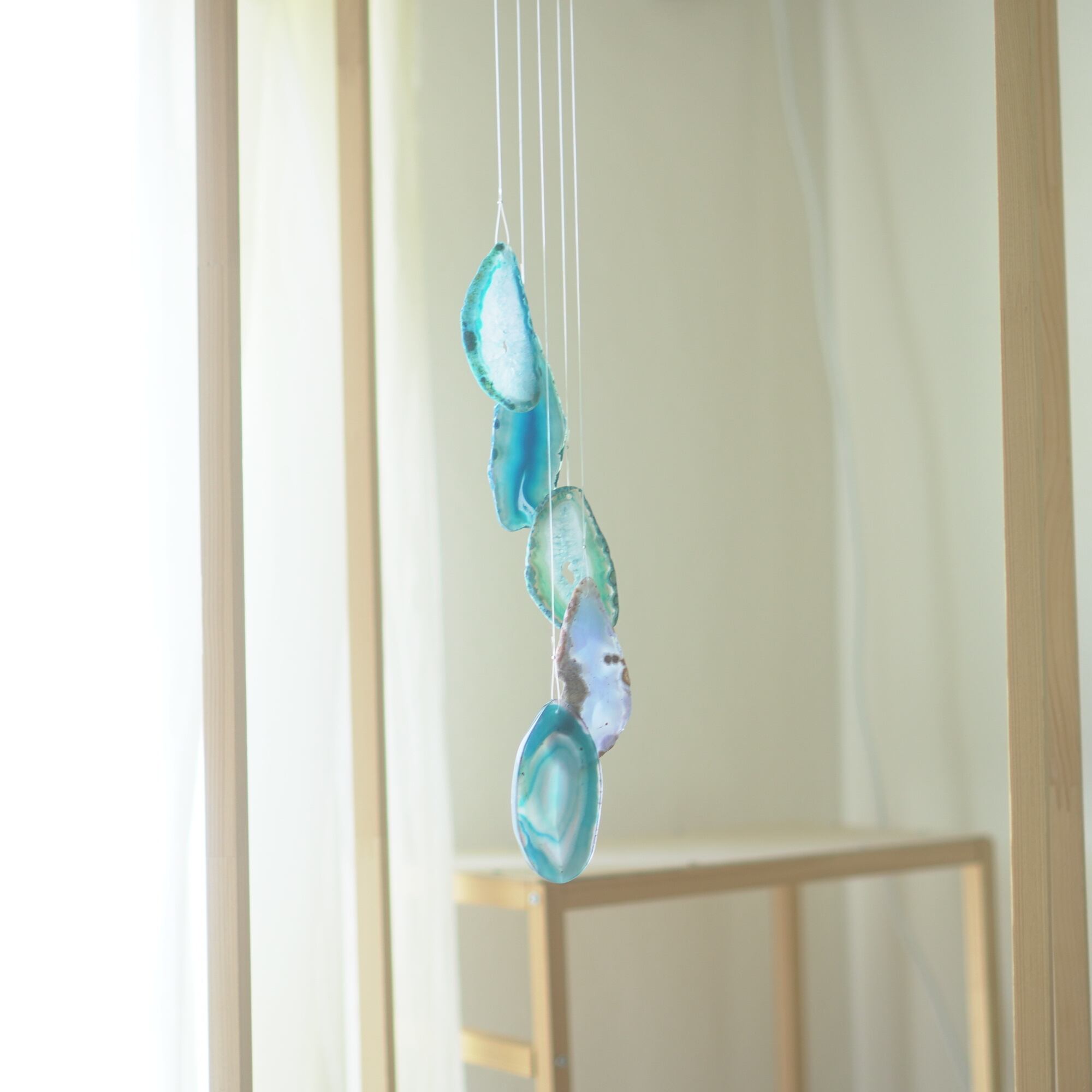 連なるアゲートが風を受けて揺れるとチリンチリン、美しい響きの音が鳴りとても癒されます。