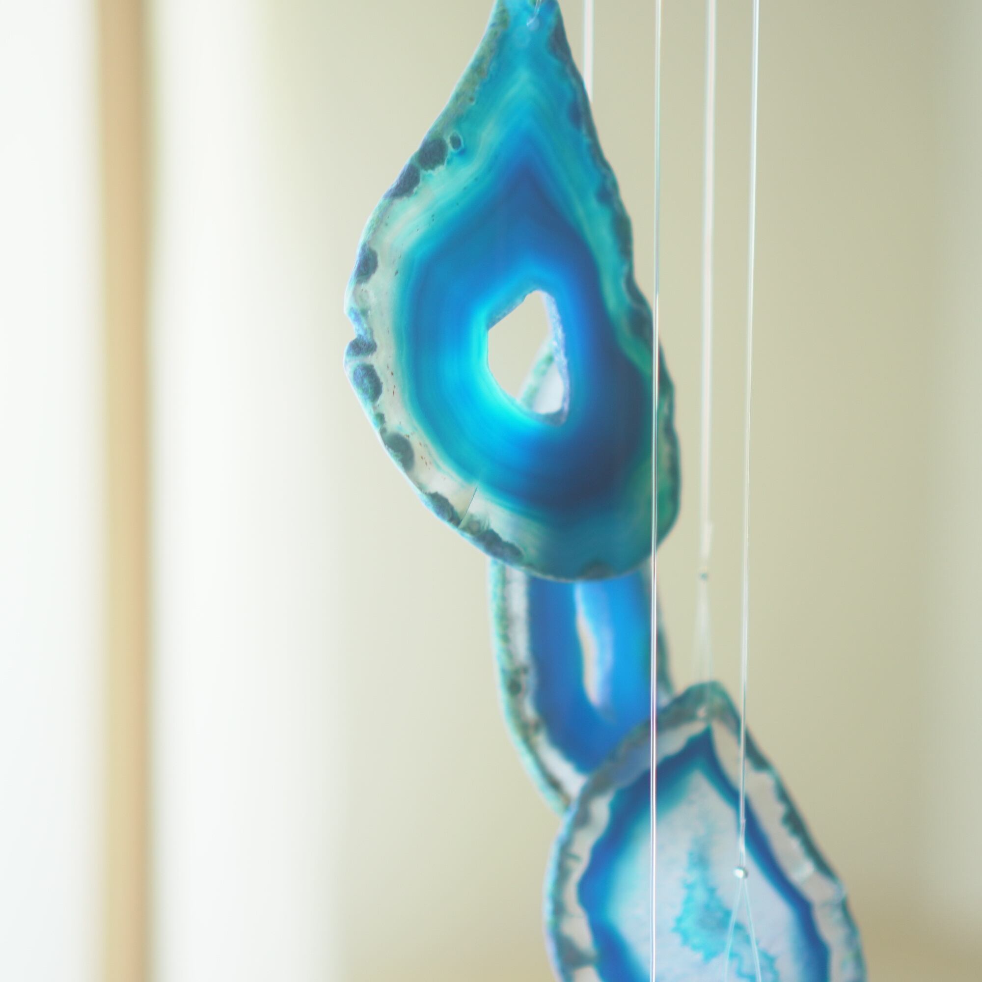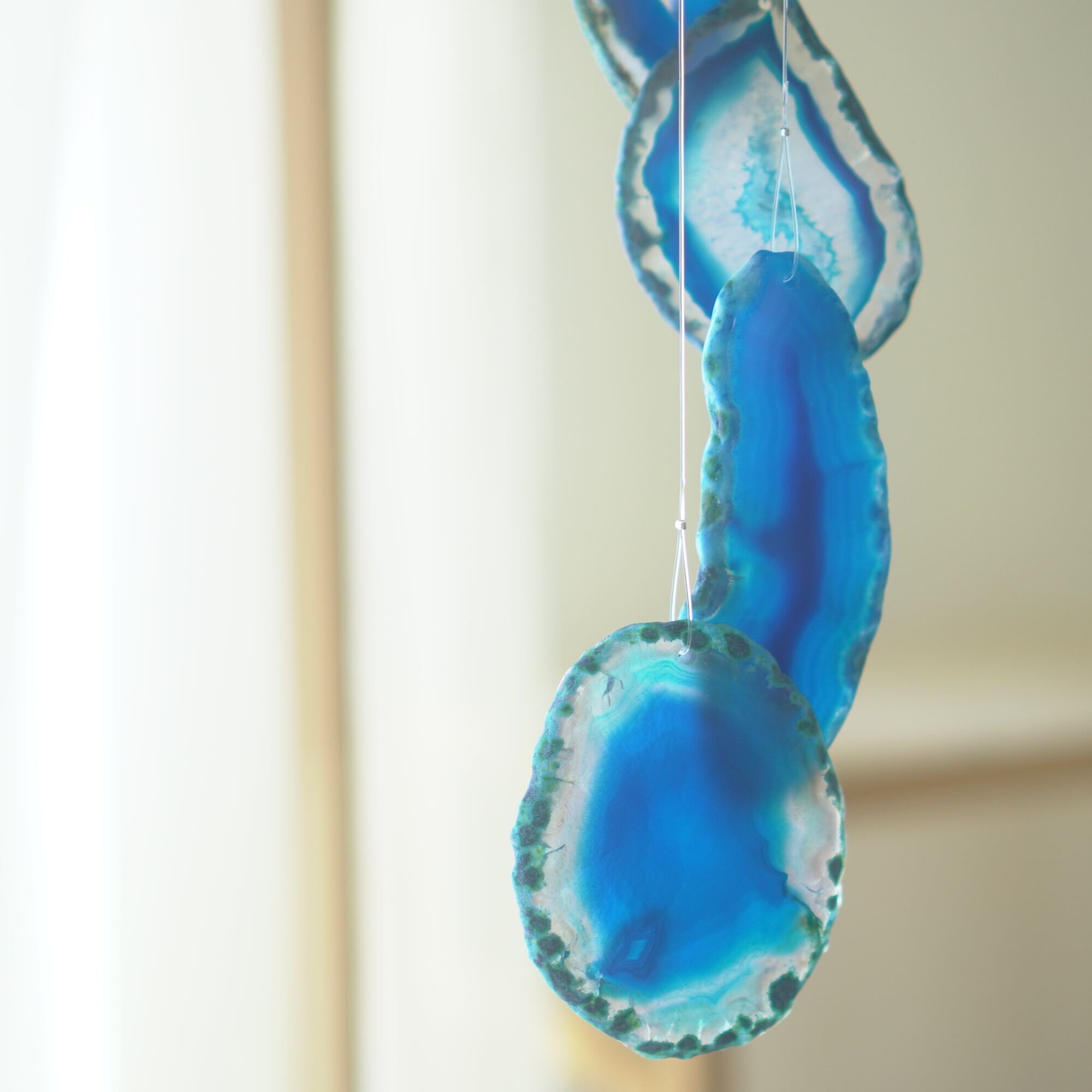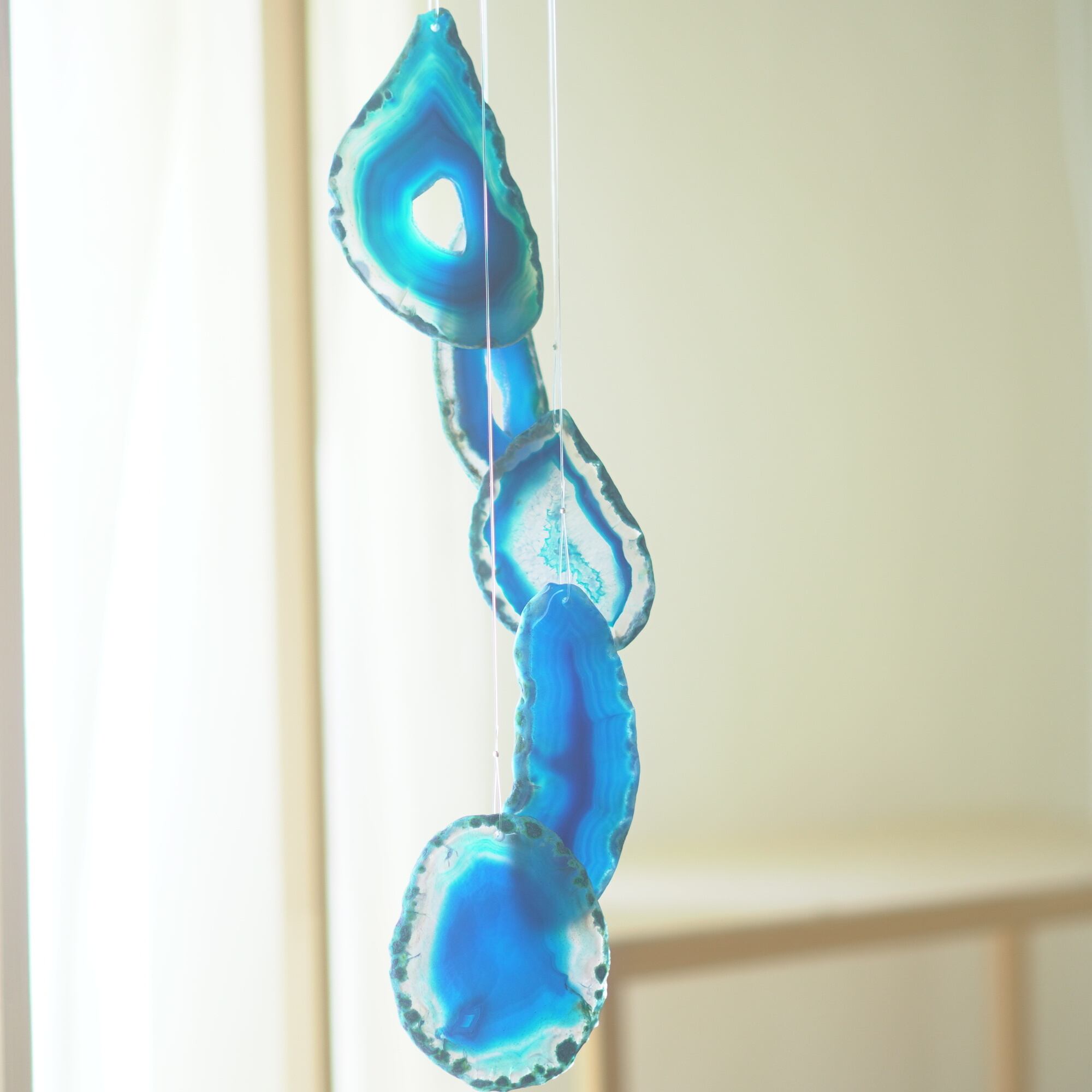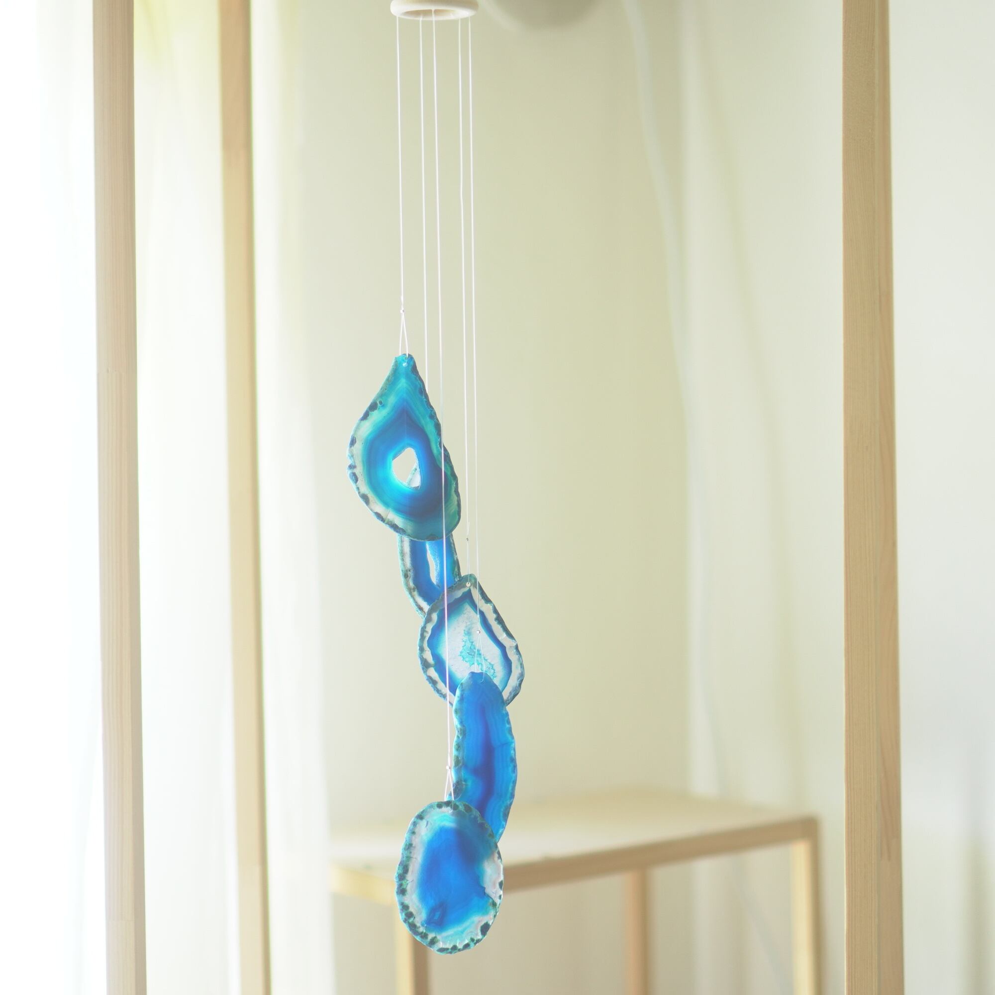 連なるアゲートが風を受けて揺れるとチリンチリン、美しい響きの音が鳴りとても癒されます。