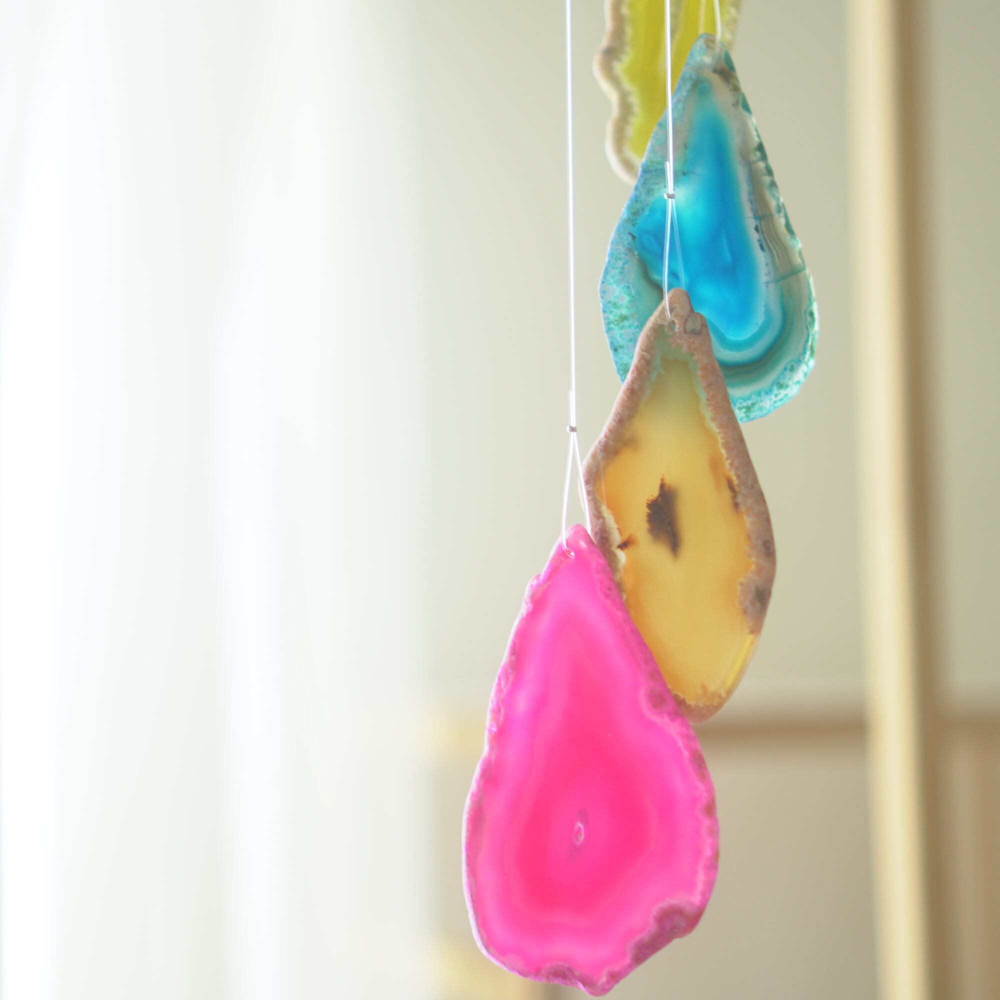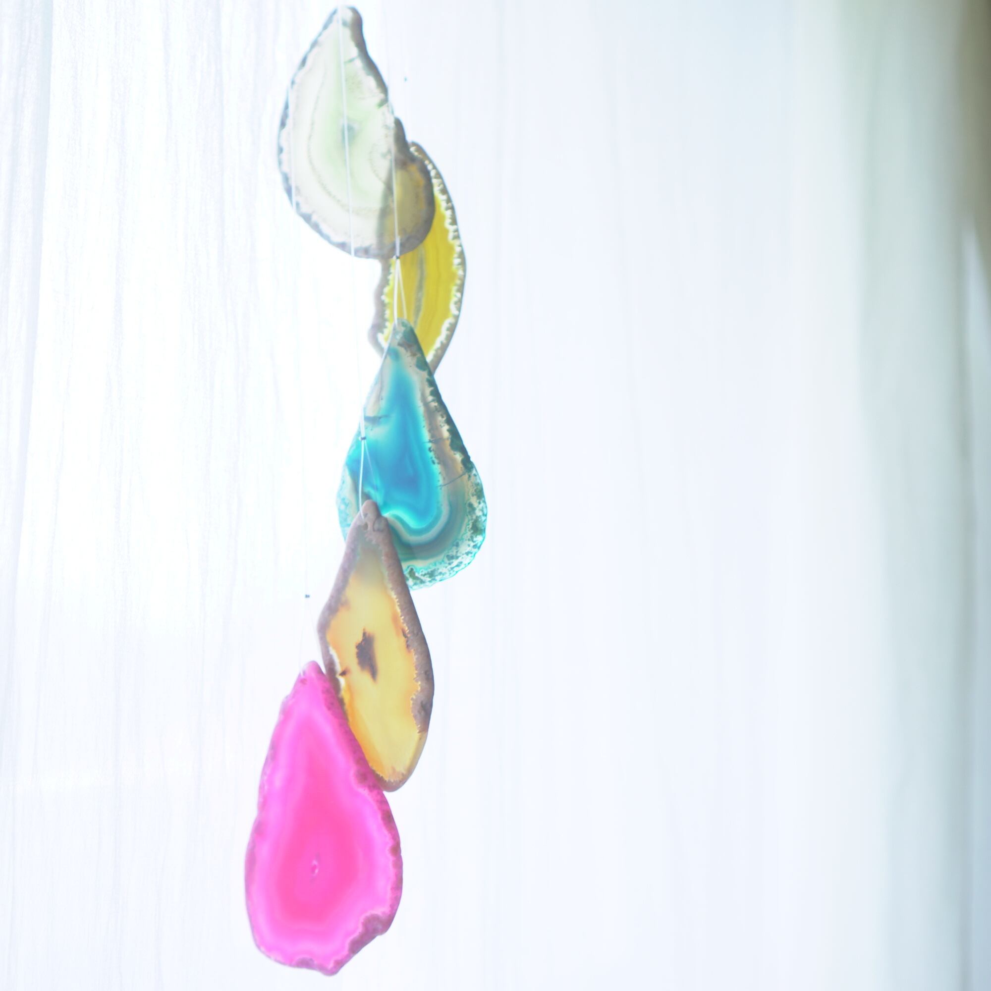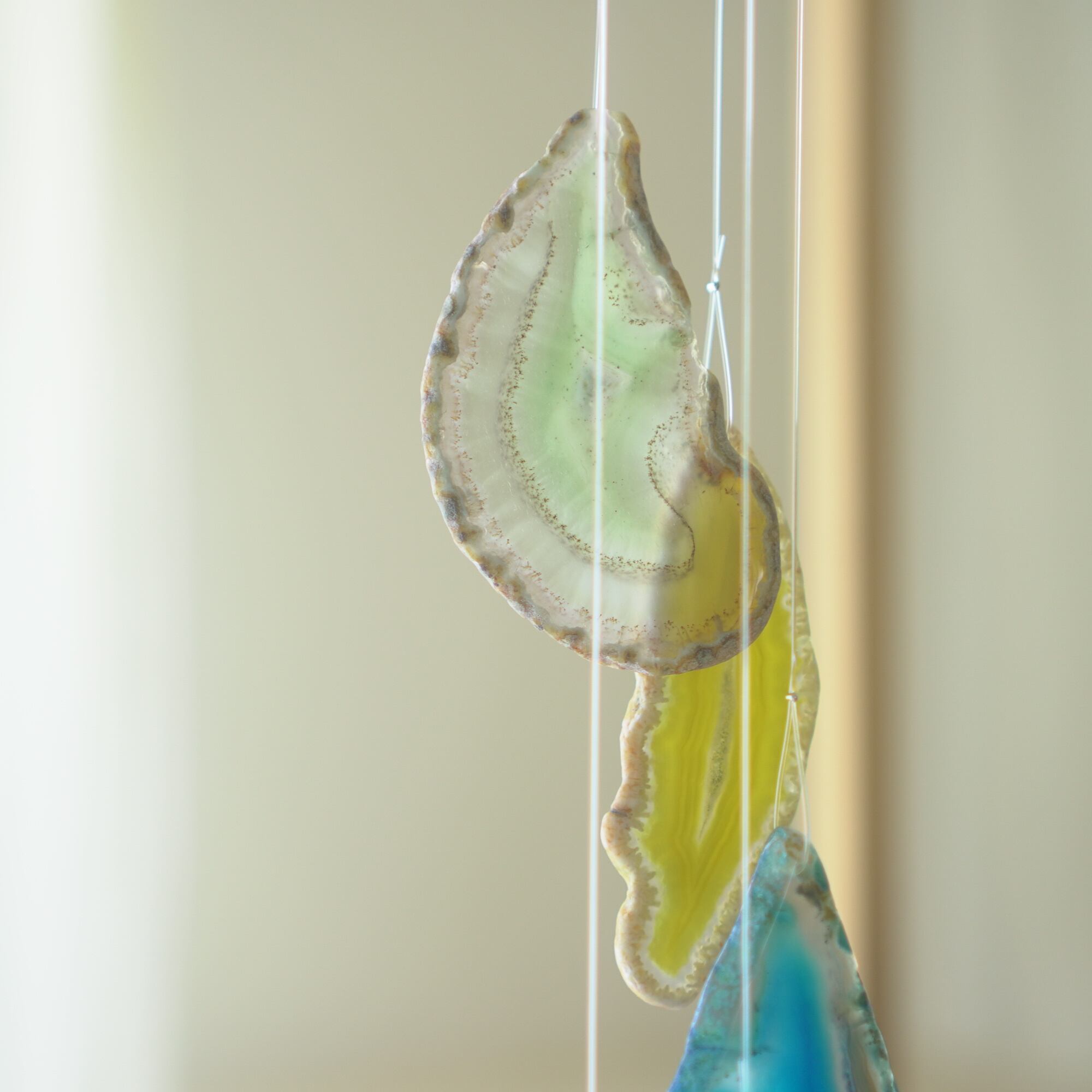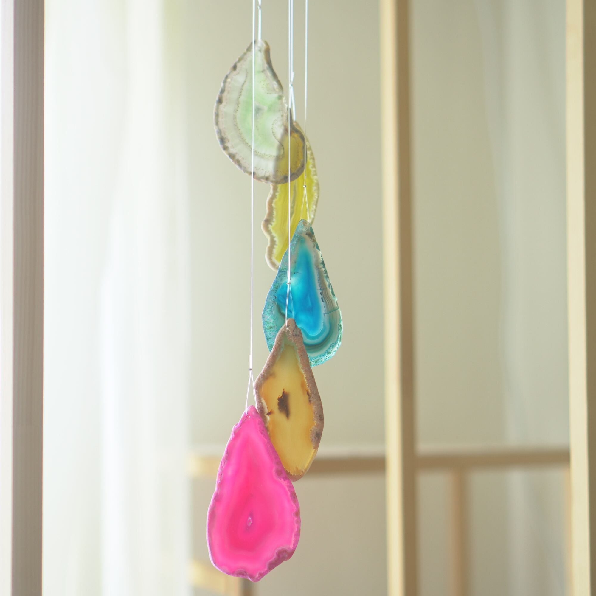 連なるアゲートが風を受けて揺れるとチリンチリン、美しい響きの音が鳴りとても癒されます。