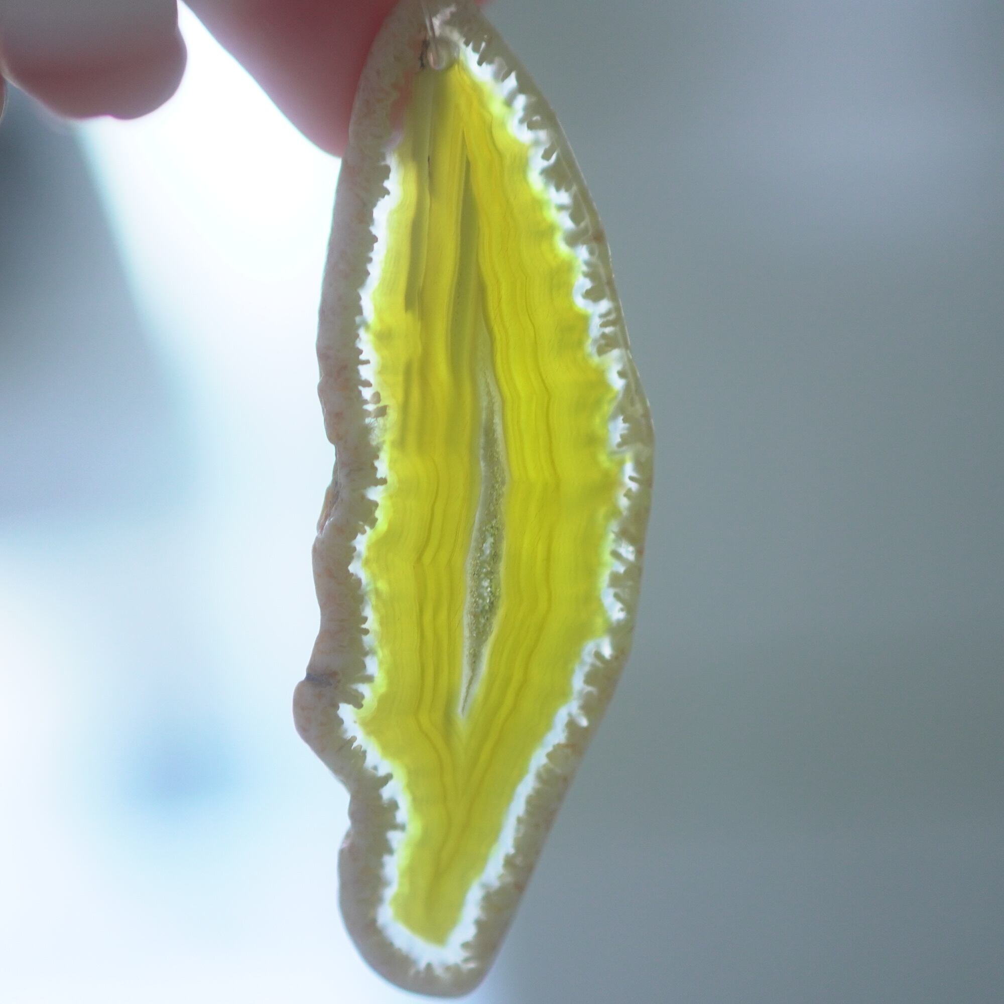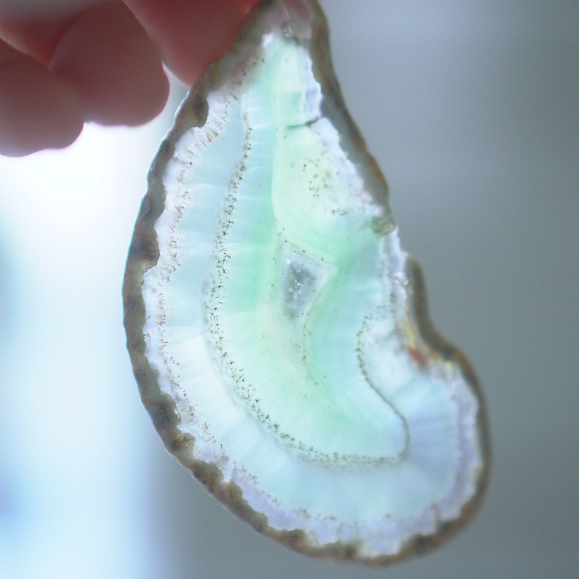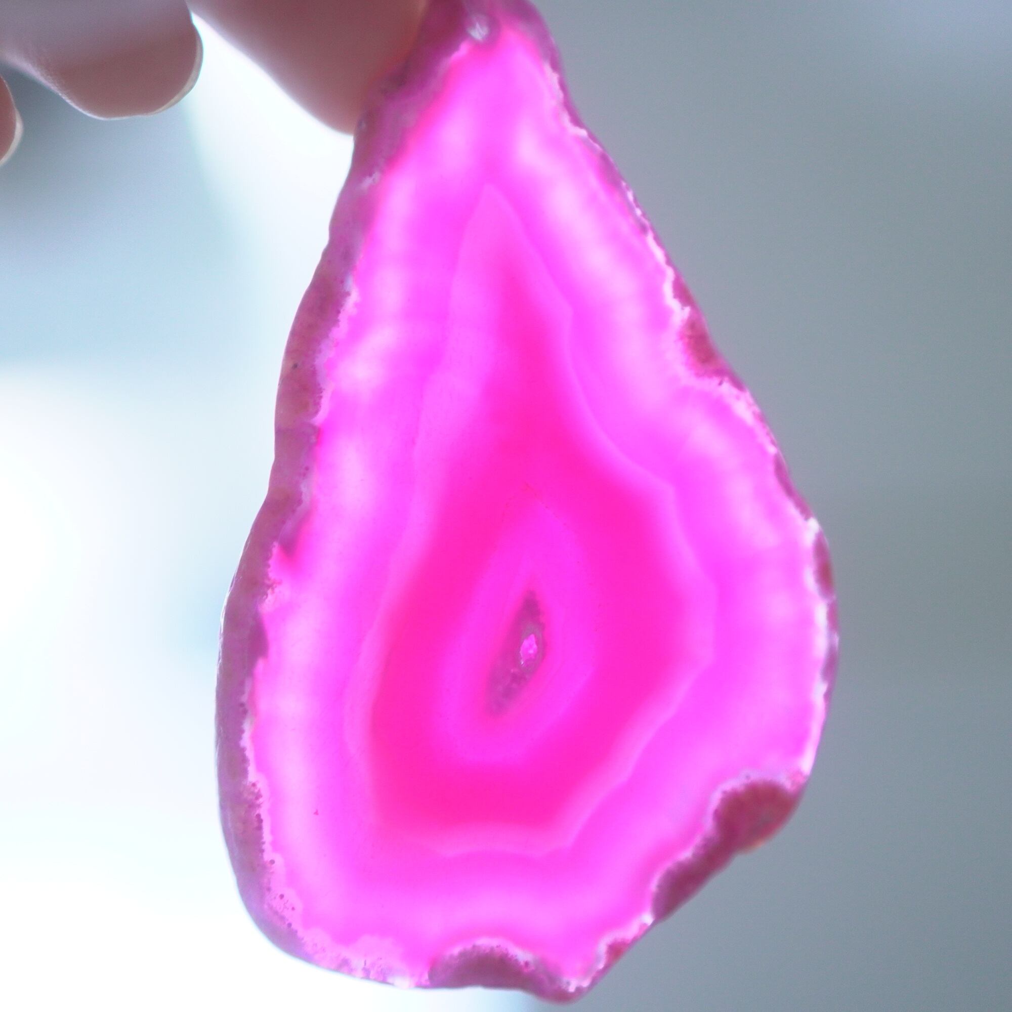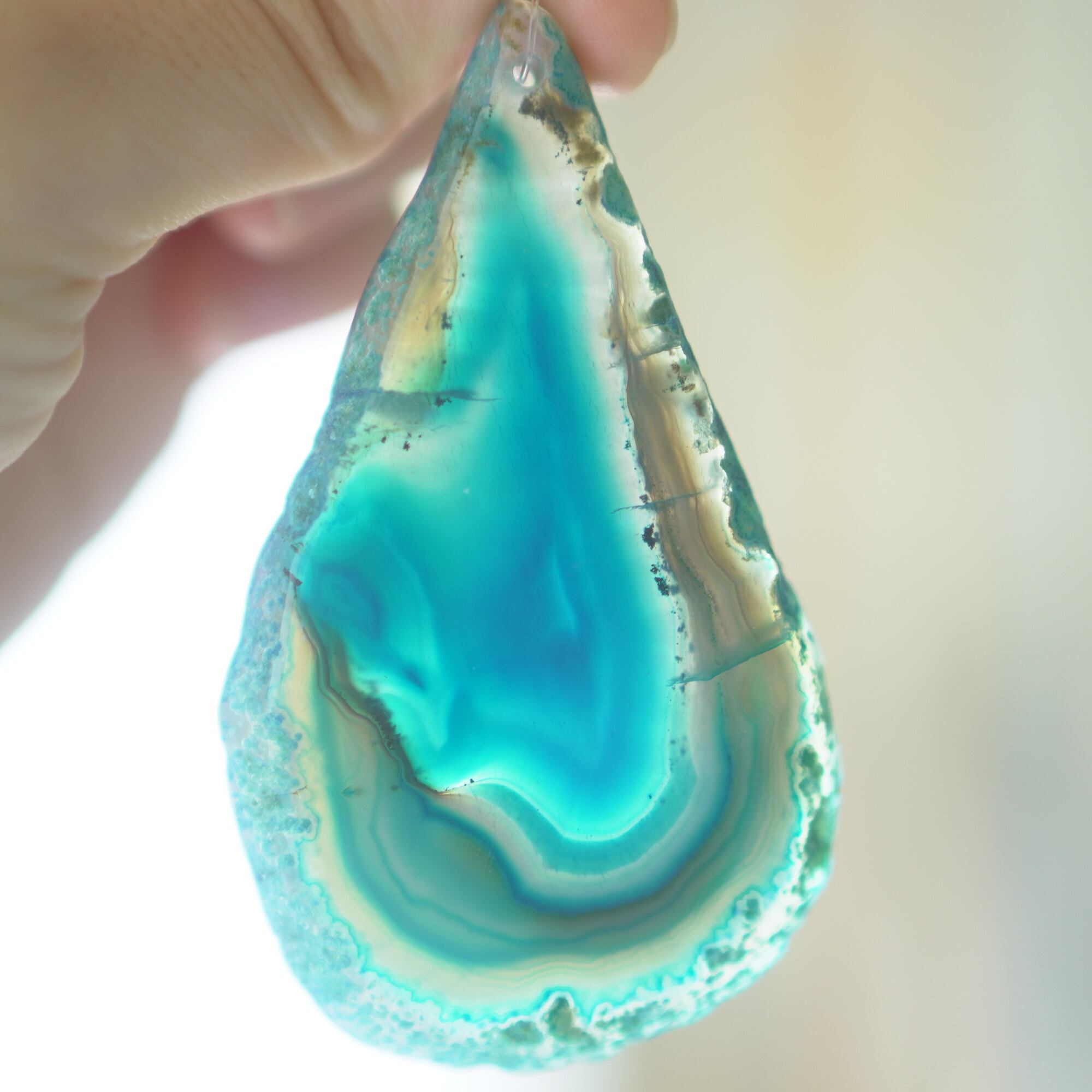 ✧✧✧染色の石なので耐光性(光による経年でのカラー変化の耐性)に優れているわけではなく一日の中で長時間強い日光に当たるような場所に飾られるのはおすすめしないのですが、陽光に透かした時にだけ真価を発揮する美しさがありますので、是非たまに翳したりして光と一緒にお楽しみいただけたらと思っております。特に濃い鮮やかな色など、気になられる場合は、日光のあまり当たらない場所に飾っていただけたらと思います✧✧✧