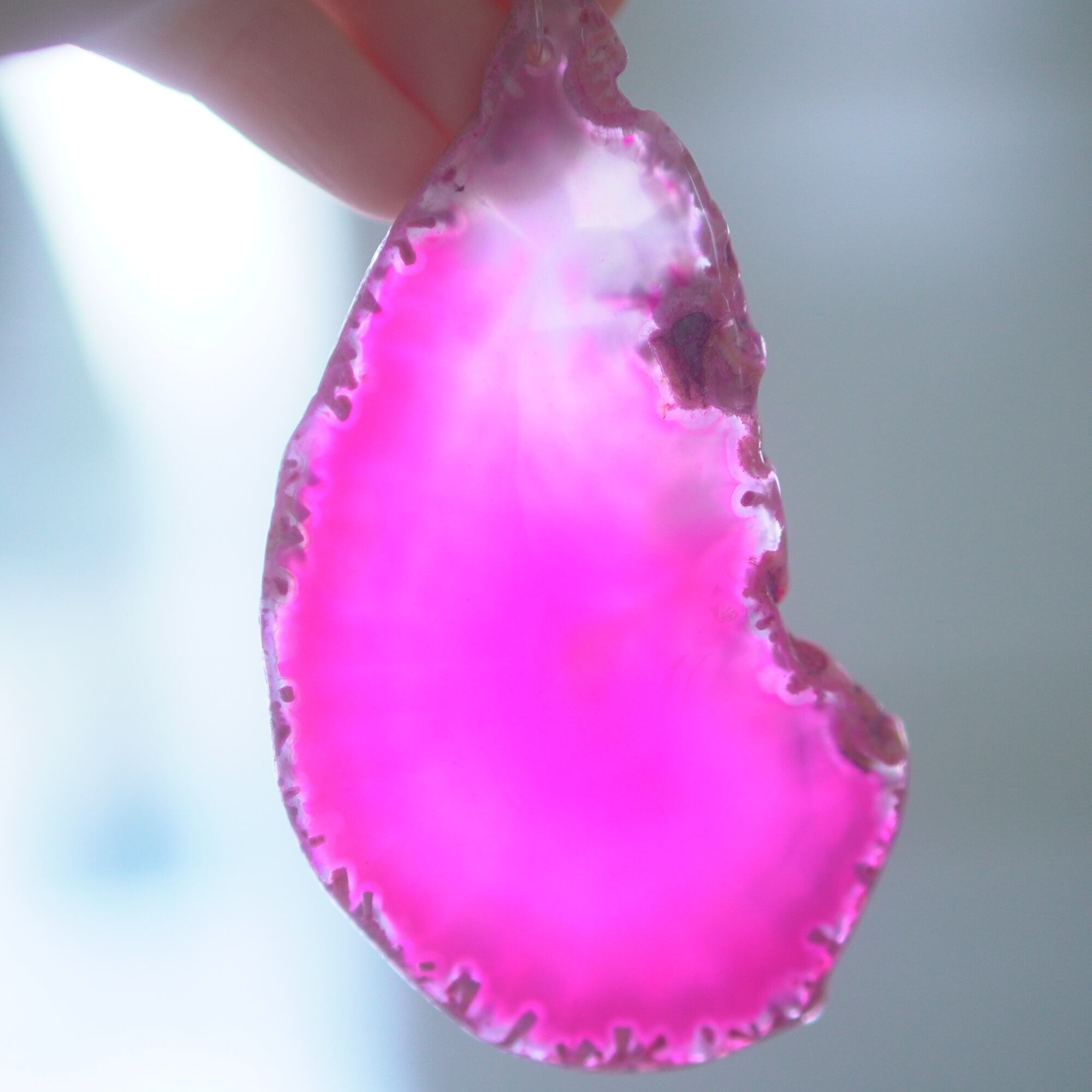 ✧✧✧染色の石なので耐光性(光による経年でのカラー変化の耐性)に優れているわけではなく一日の中で長時間強い日光に当たるような場所に飾られるのはおすすめしないのですが、陽光に透かした時にだけ真価を発揮する美しさがありますので、是非たまに翳したりして光と一緒にお楽しみいただけたらと思っております。特に濃い鮮やかな色など、気になられる場合は、日光のあまり当たらない場所に飾っていただけたらと思います✧✧✧