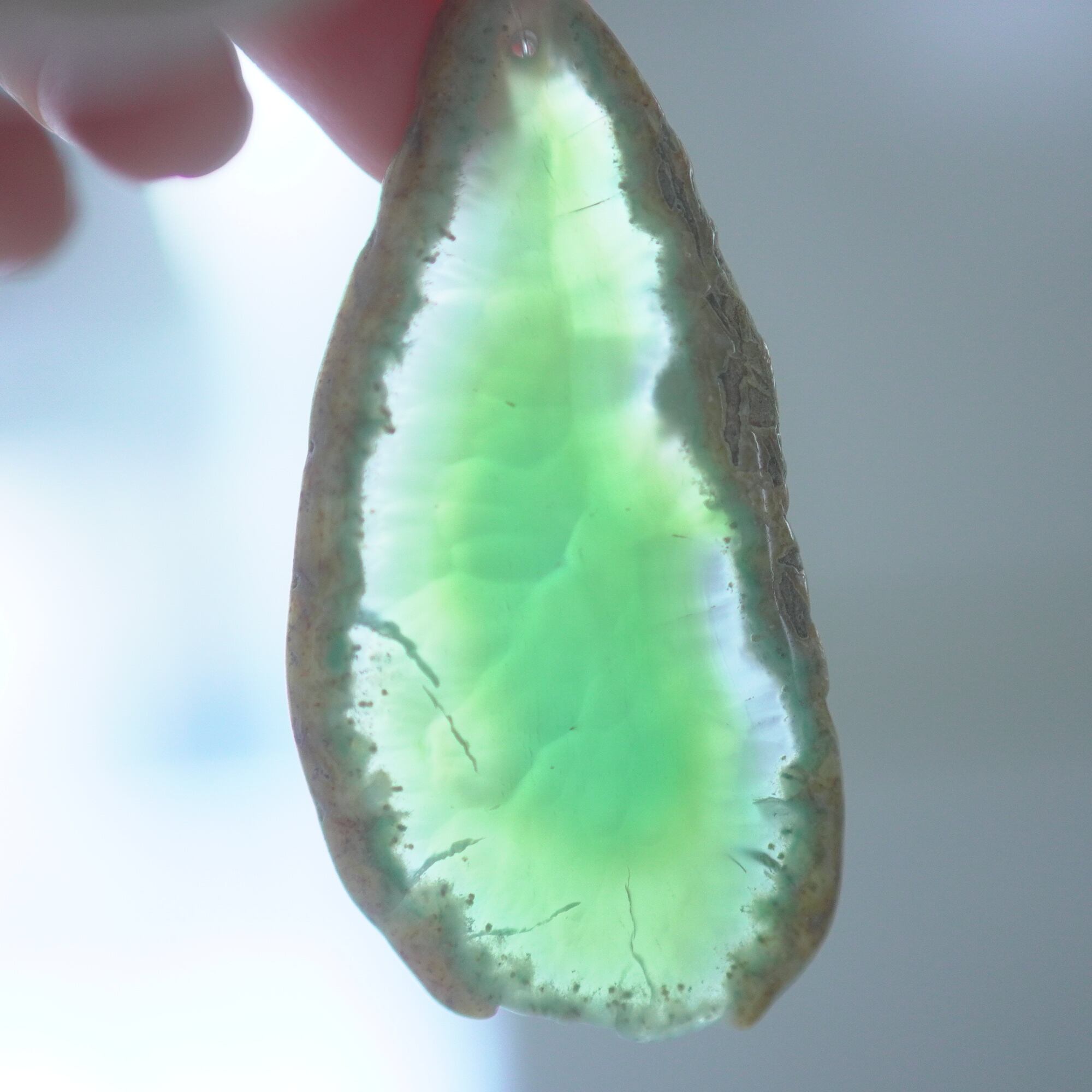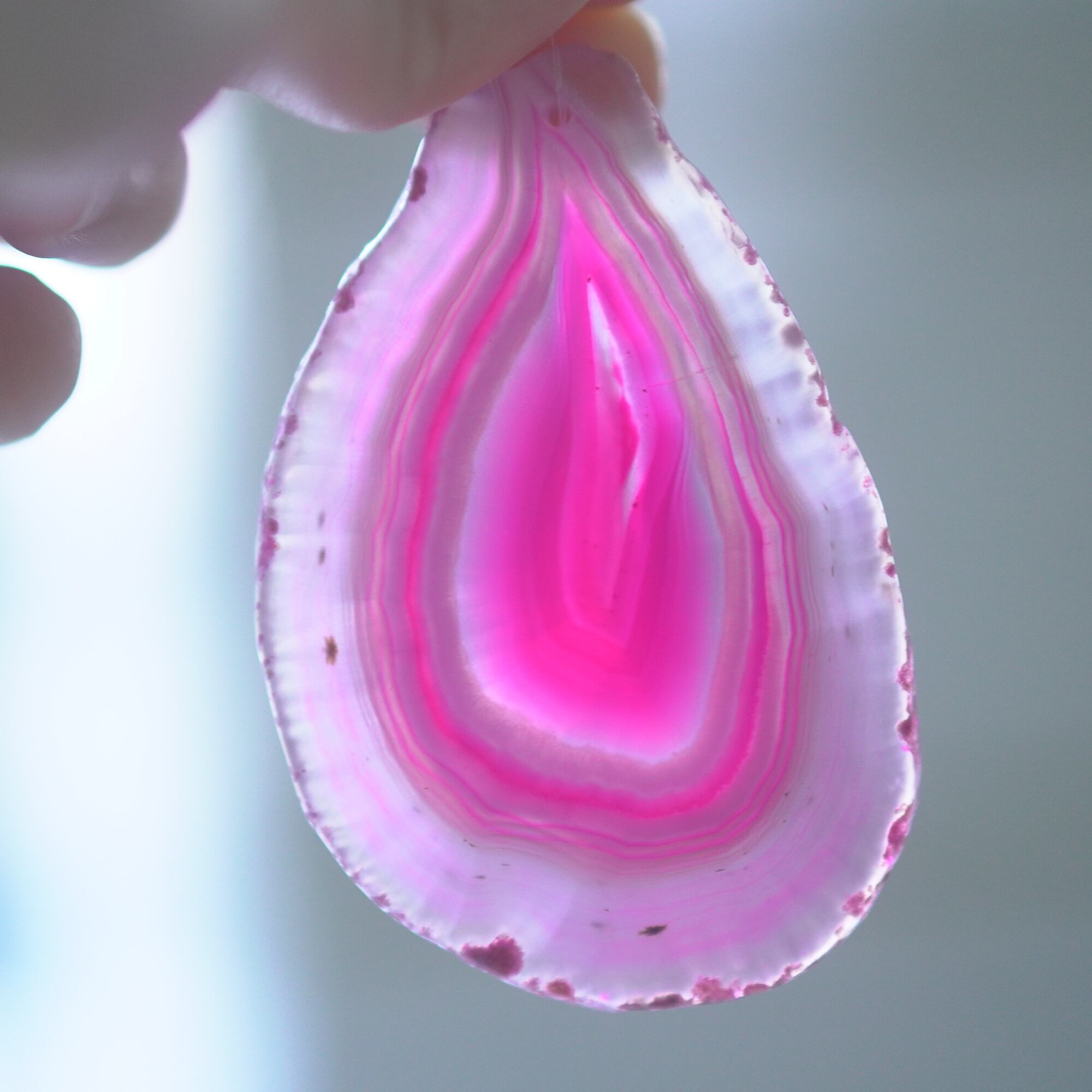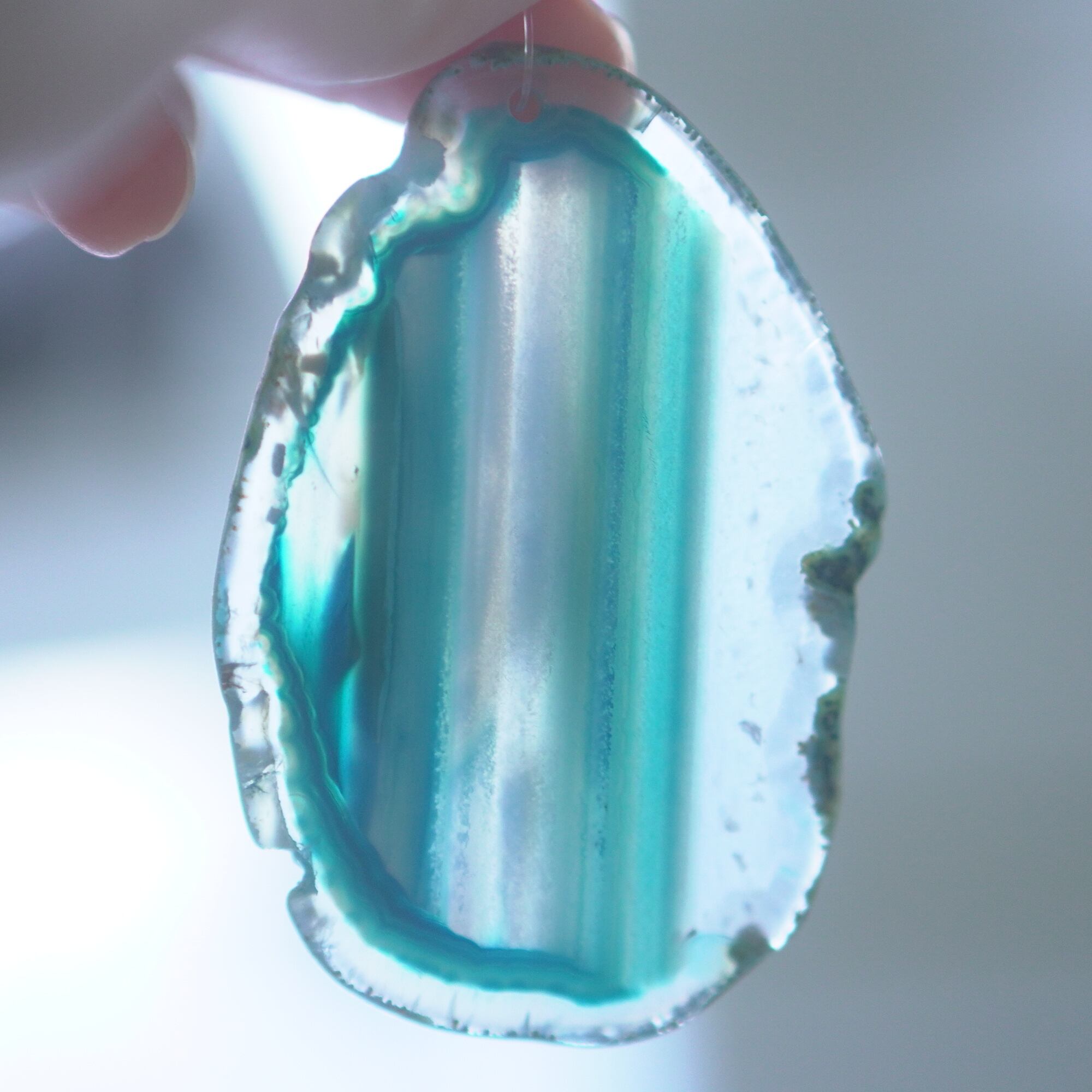 ✧✧✧染色の石なので耐光性(光による経年でのカラー変化の耐性)に優れているわけではなく一日の中で長時間強い日光に当たるような場所に飾られるのはおすすめしないのですが、陽光に透かした時にだけ真価を発揮する美しさがありますので、是非たまに翳したりして光と一緒にお楽しみいただけたらと思っております。特に濃い鮮やかな色など、気になられる場合は、日光のあまり当たらない場所に飾っていただけたらと思います✧✧✧