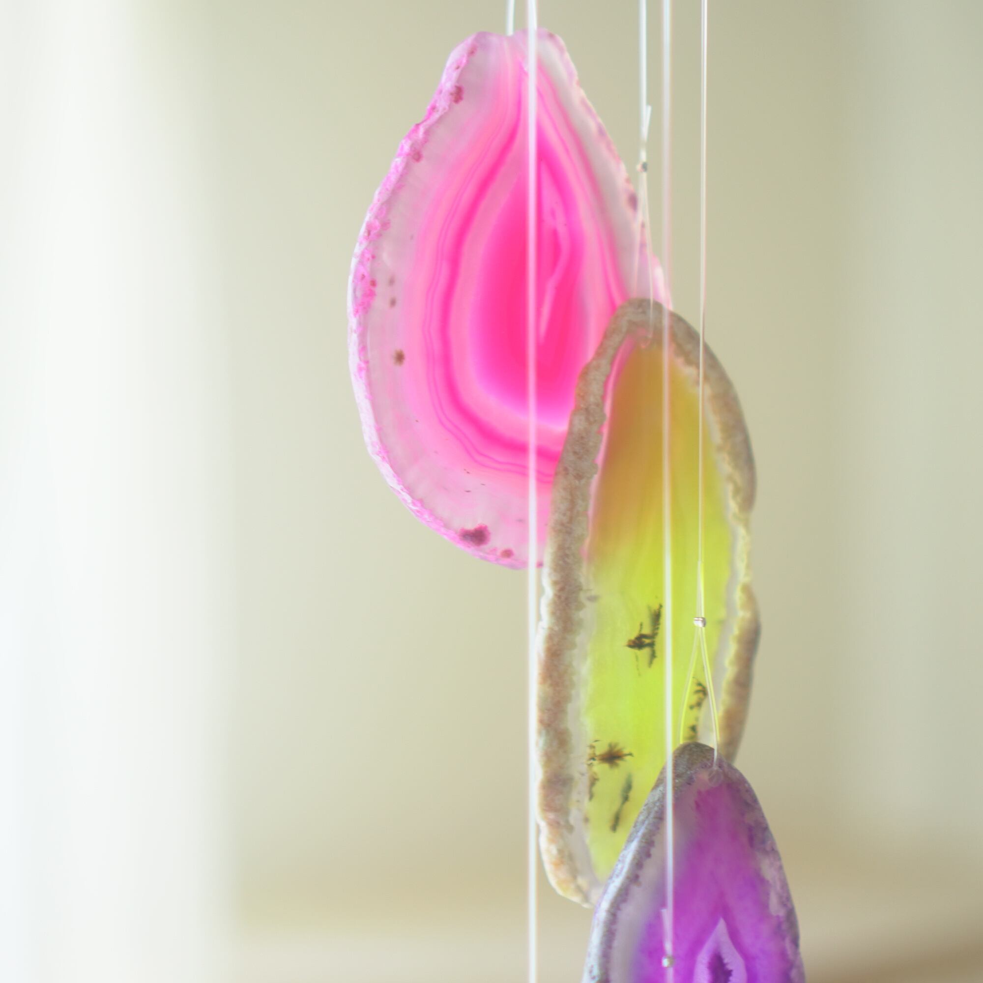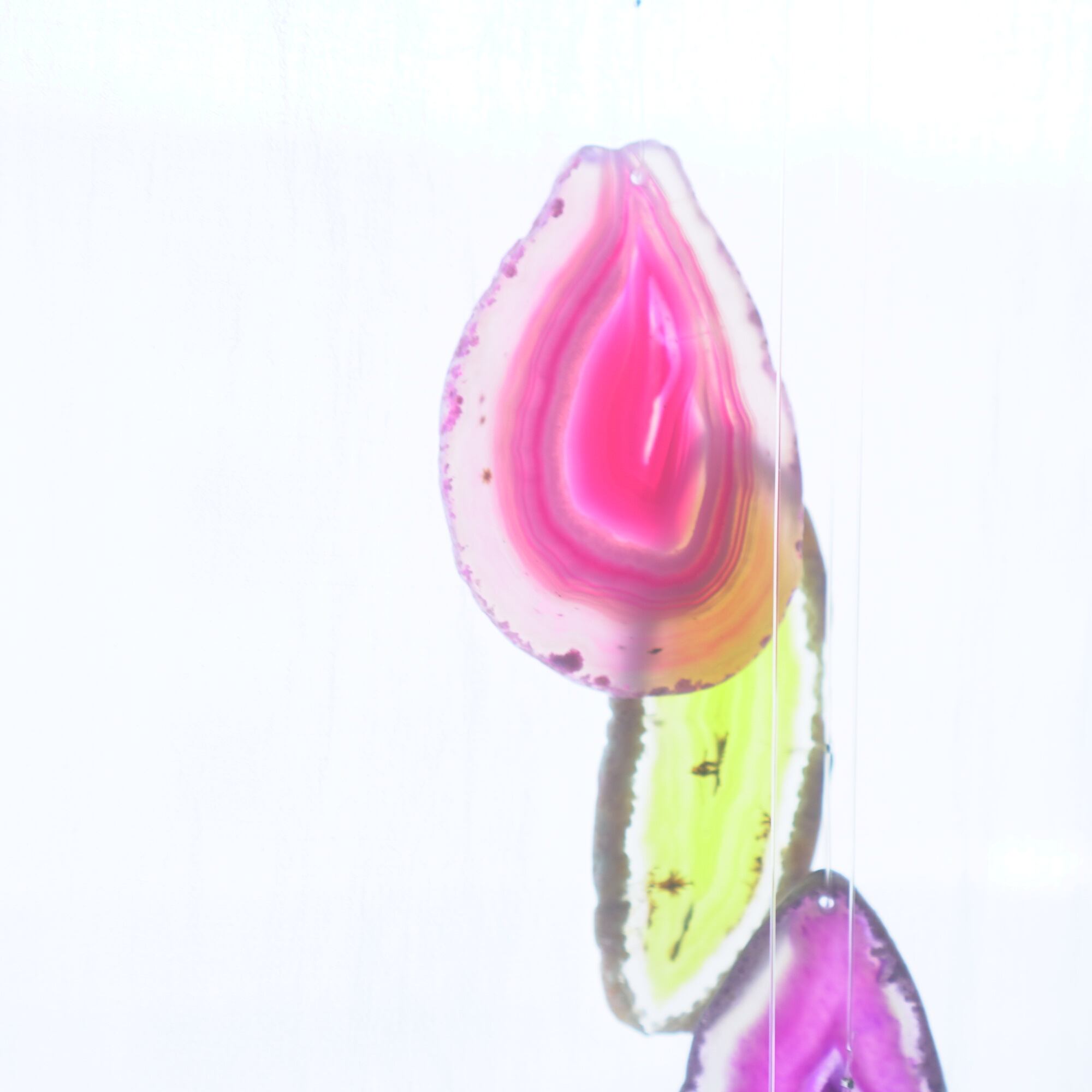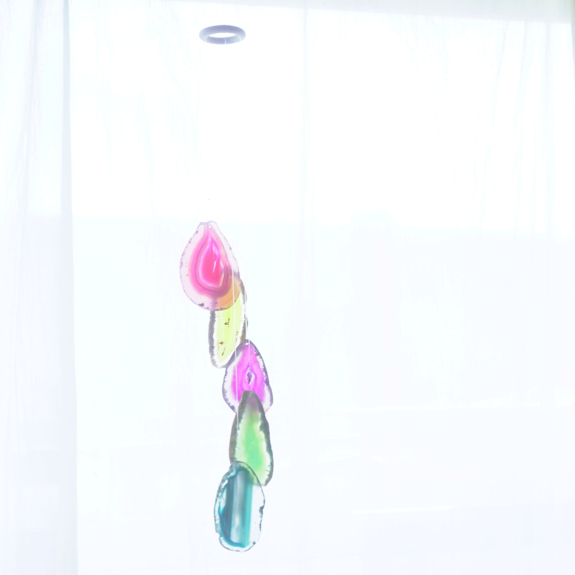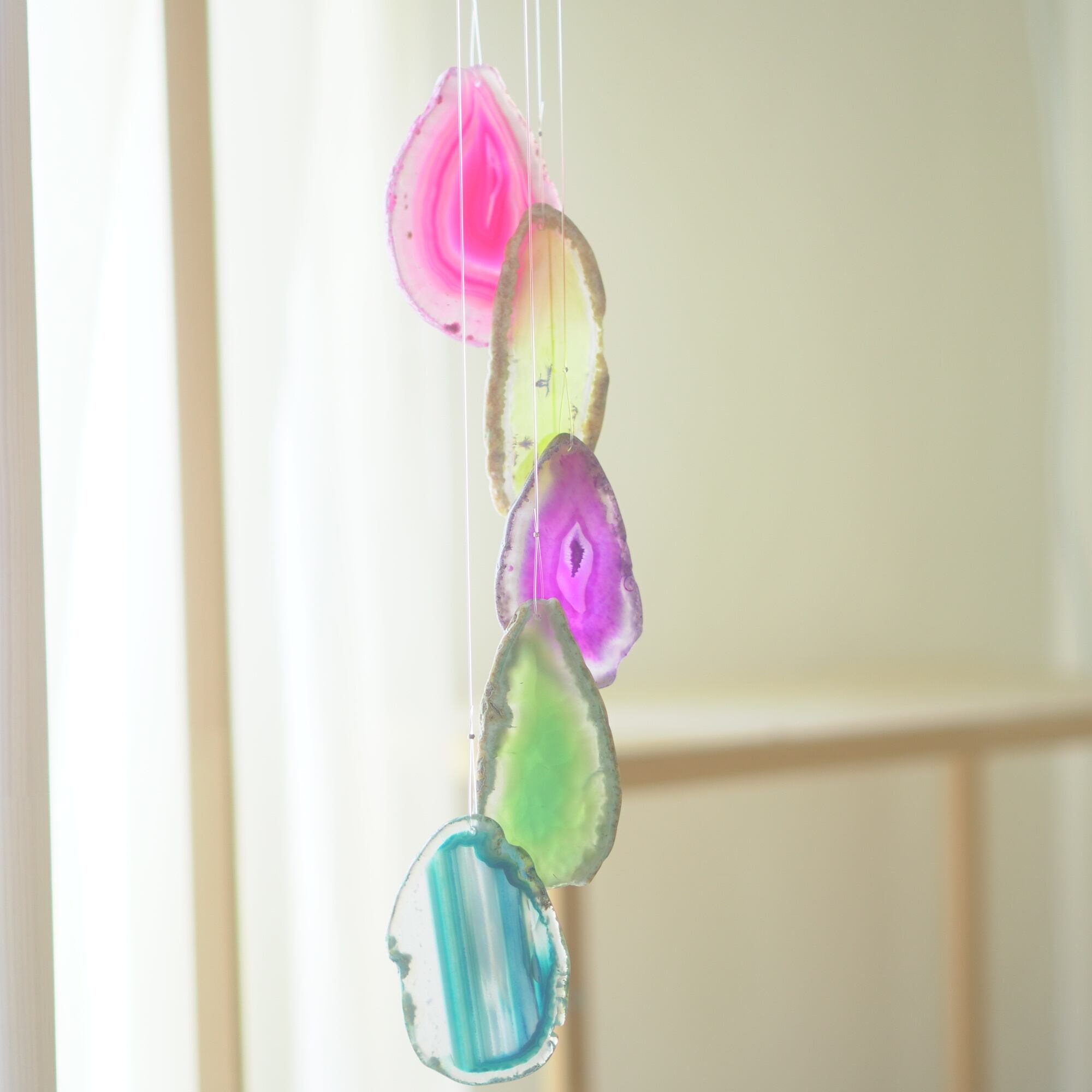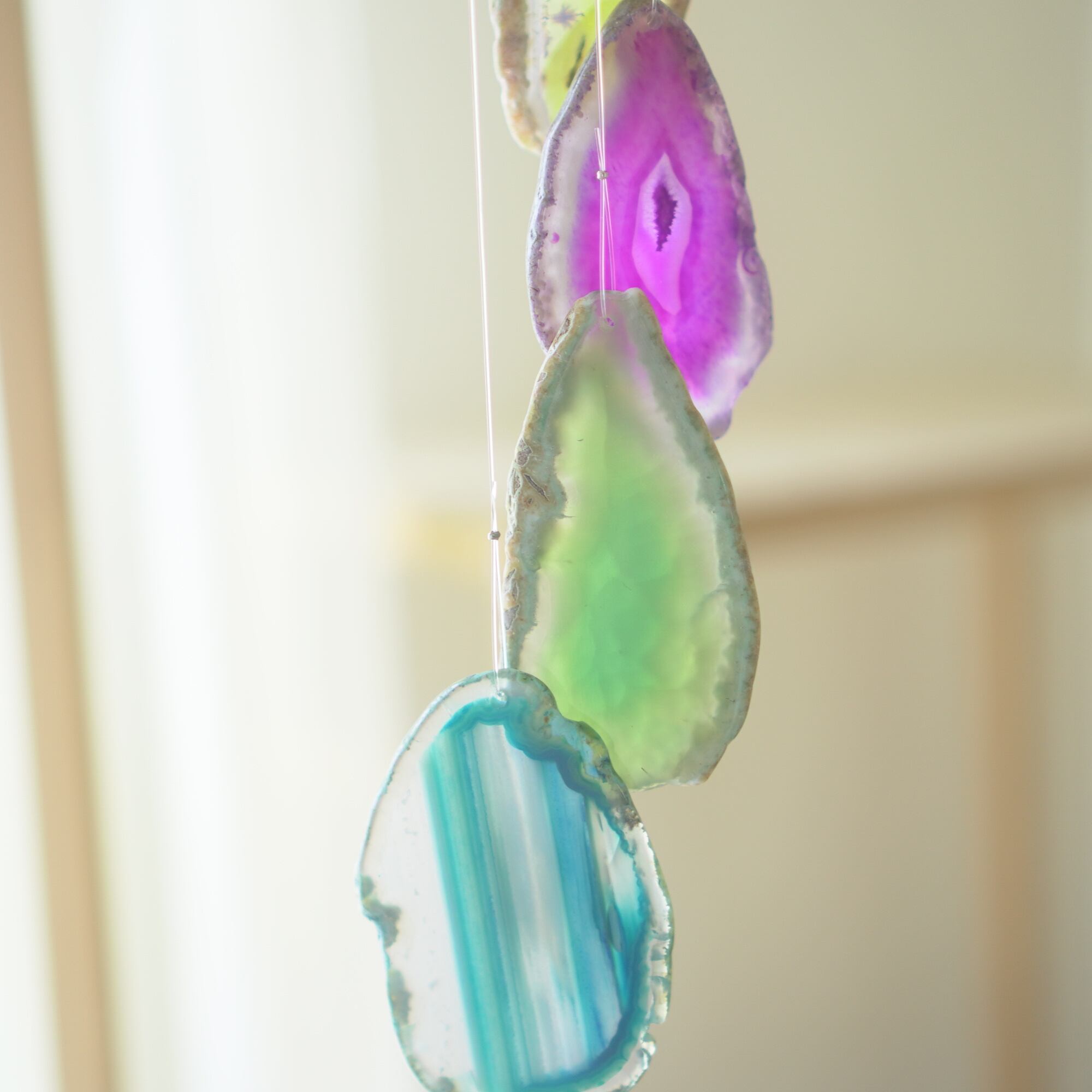 連なるアゲートが風を受けて揺れるとチリンチリン、美しい響きの音が鳴りとても癒されます。