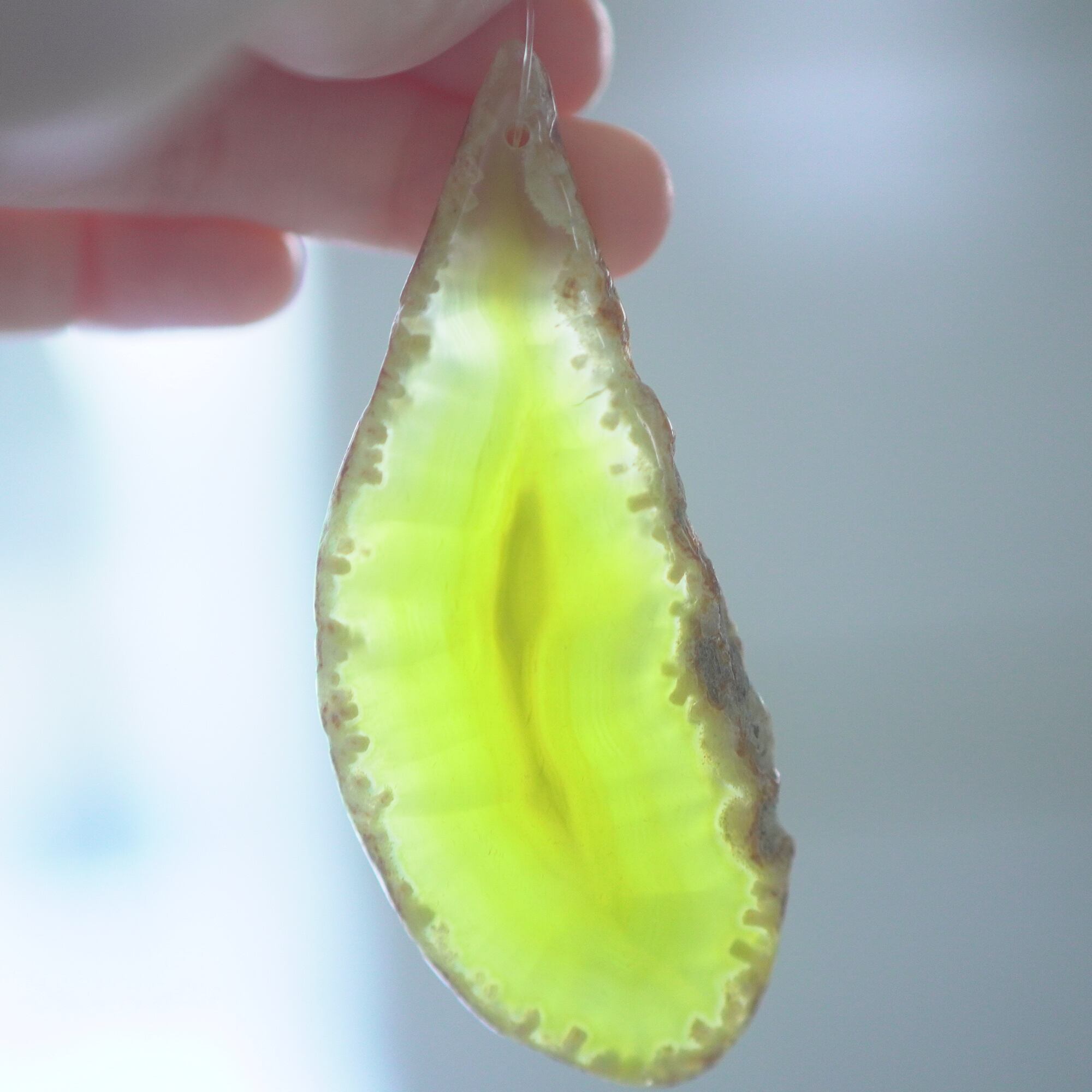 ✧✧✧染色の石なので耐光性(光による経年でのカラー変化の耐性)に優れているわけではなく一日の中で長時間強い日光に当たるような場所に飾られるのはおすすめしないのですが、陽光に透かした時にだけ真価を発揮する美しさがありますので、是非たまに翳したりして光と一緒にお楽しみいただけたらと思っております。特に濃い鮮やかな色など、気になられる場合は、日光のあまり当たらない場所に飾っていただけたらと思います✧✧✧
