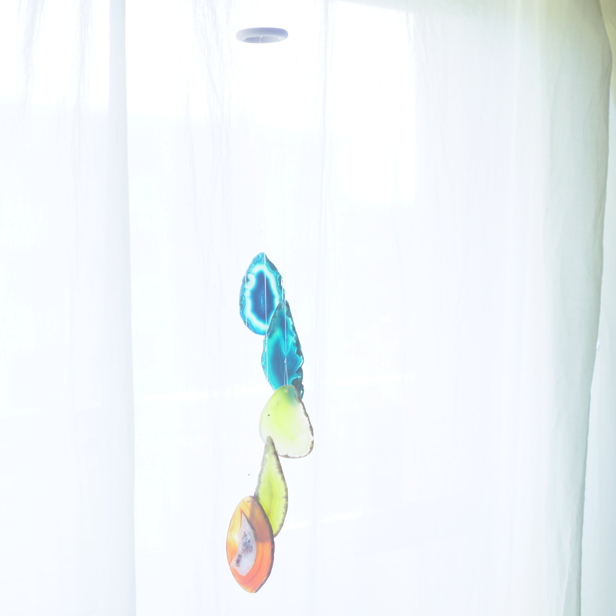 連なるアゲートが風を受けて揺れるとチリンチリン、美しい響きの音が鳴りとても癒されます。