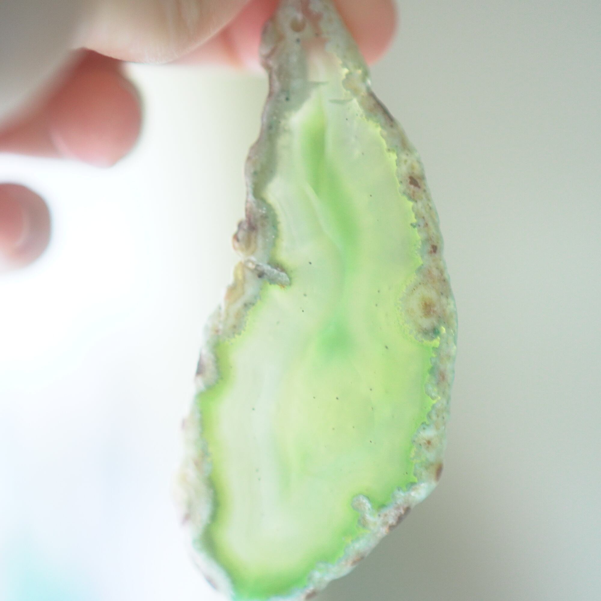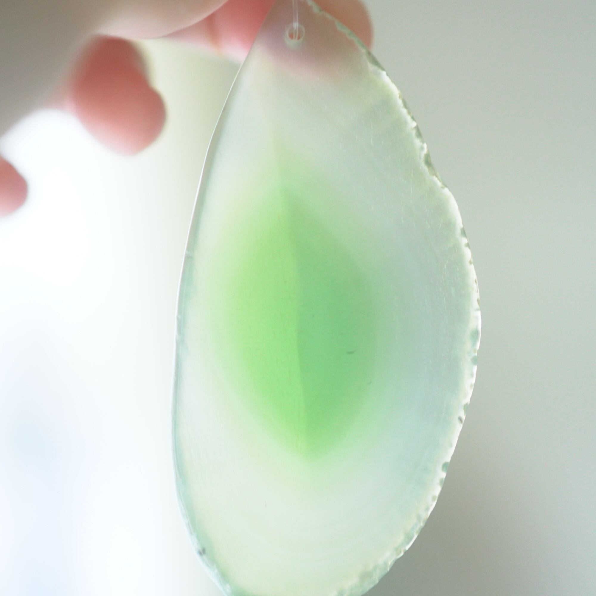 ✧✧✧染色の石なので耐光性(光による経年でのカラー変化の耐性)に優れているわけではなく一日の中で長時間強い日光に当たるような場所に飾られるのはおすすめしないのですが、陽光に透かした時にだけ真価を発揮する美しさがありますので、是非たまに翳したりして光と一緒にお楽しみいただけたらと思っております。特に濃い鮮やかな色など、気になられる場合は、日光のあまり当たらない場所に飾っていただけたらと思います✧✧✧