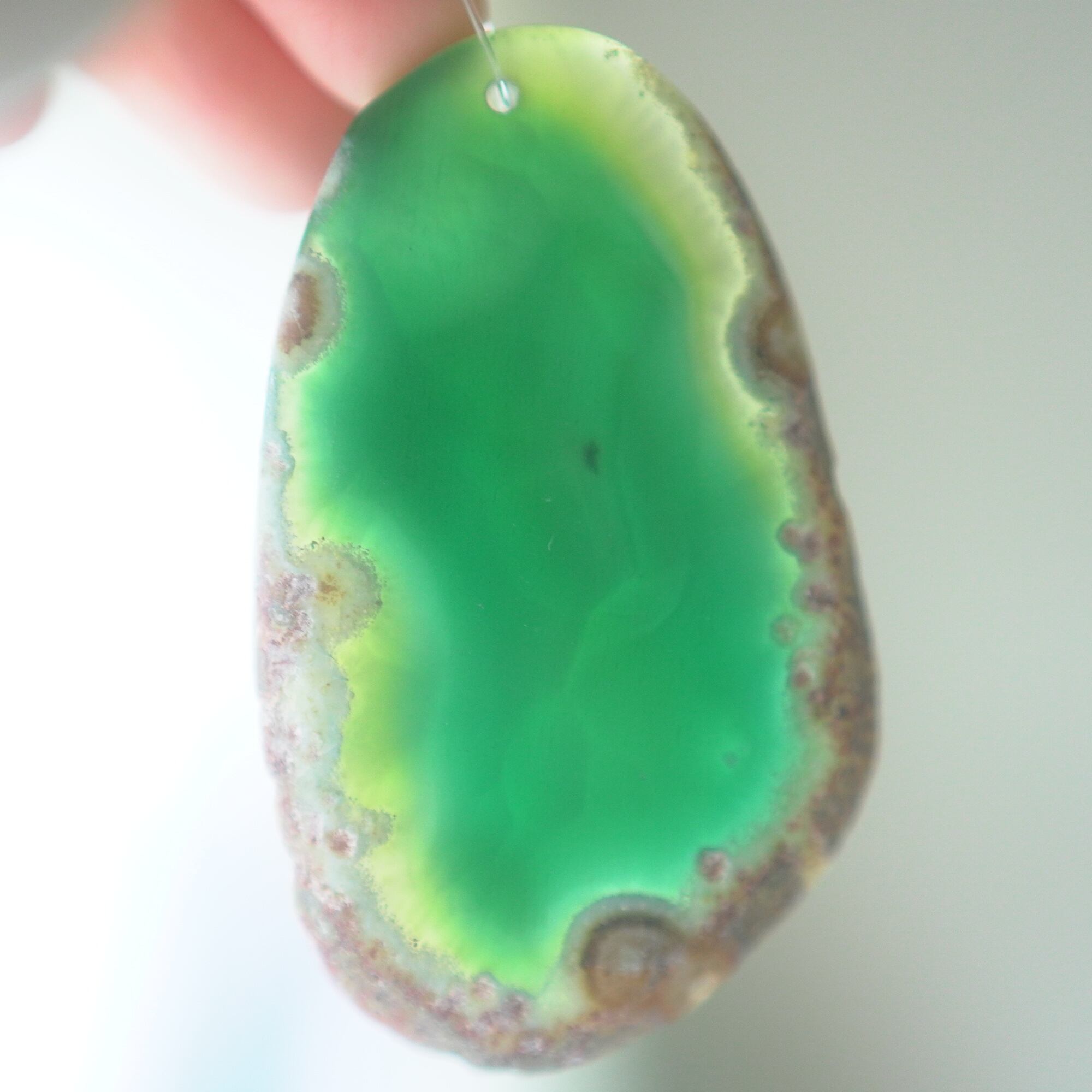 ✧✧✧染色の石なので耐光性(光による経年でのカラー変化の耐性)に優れているわけではなく一日の中で長時間強い日光に当たるような場所に飾られるのはおすすめしないのですが、陽光に透かした時にだけ真価を発揮する美しさがありますので、是非たまに翳したりして光と一緒にお楽しみいただけたらと思っております。特に濃い鮮やかな色など、気になられる場合は、日光のあまり当たらない場所に飾っていただけたらと思います✧✧✧