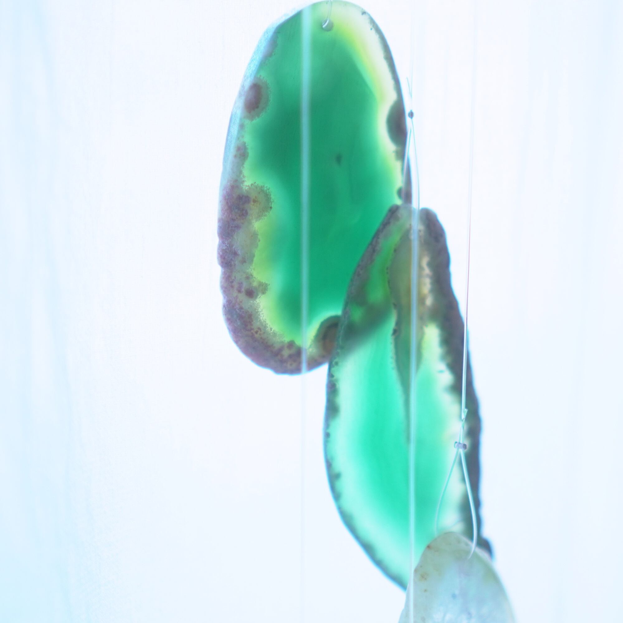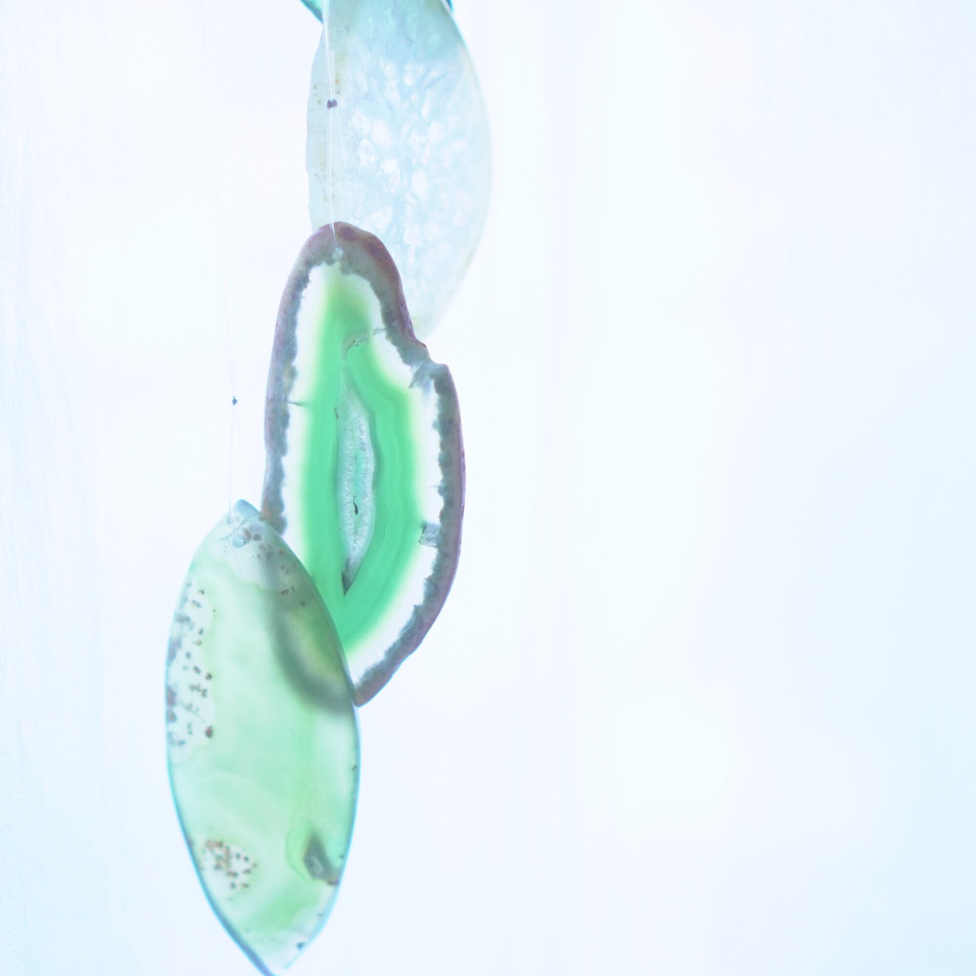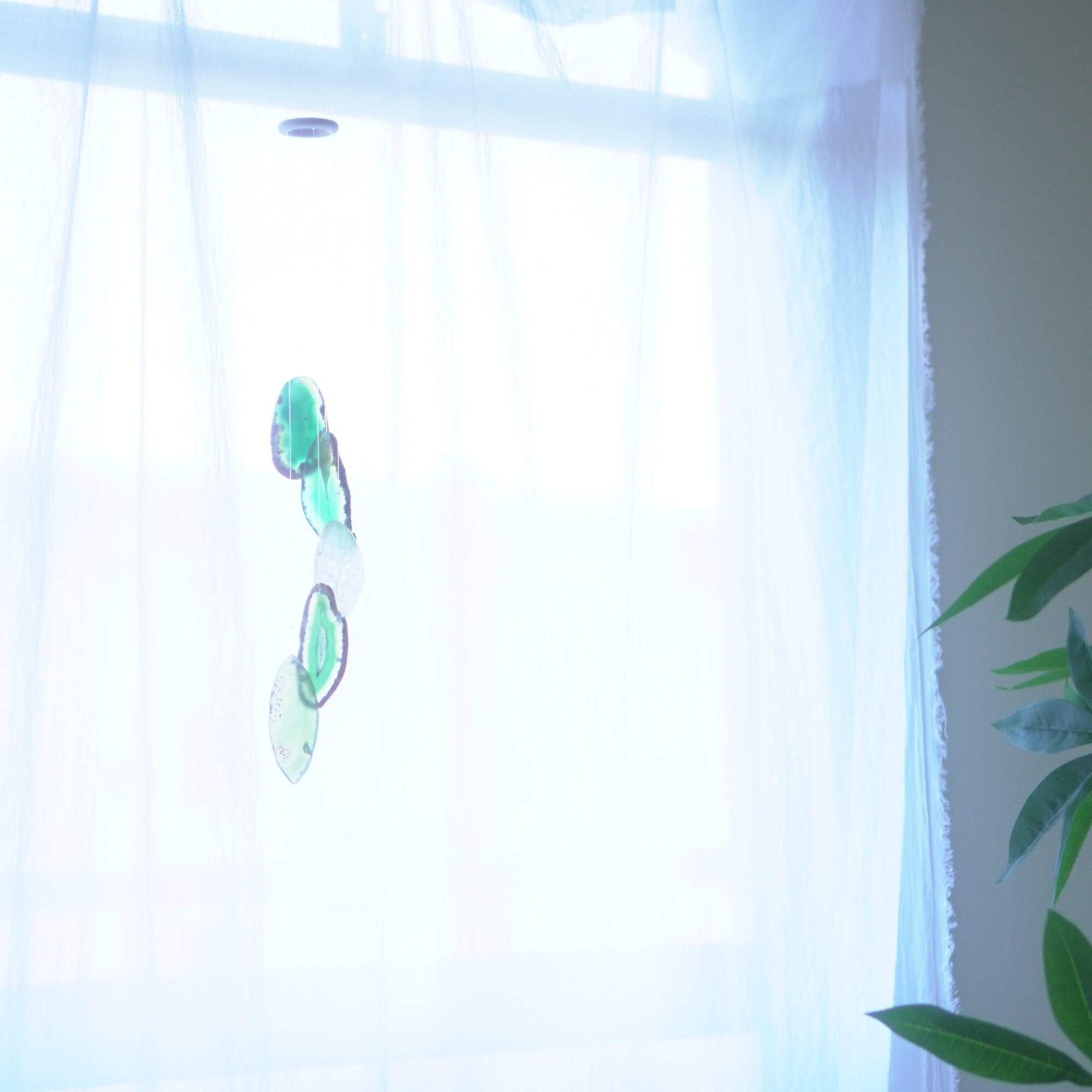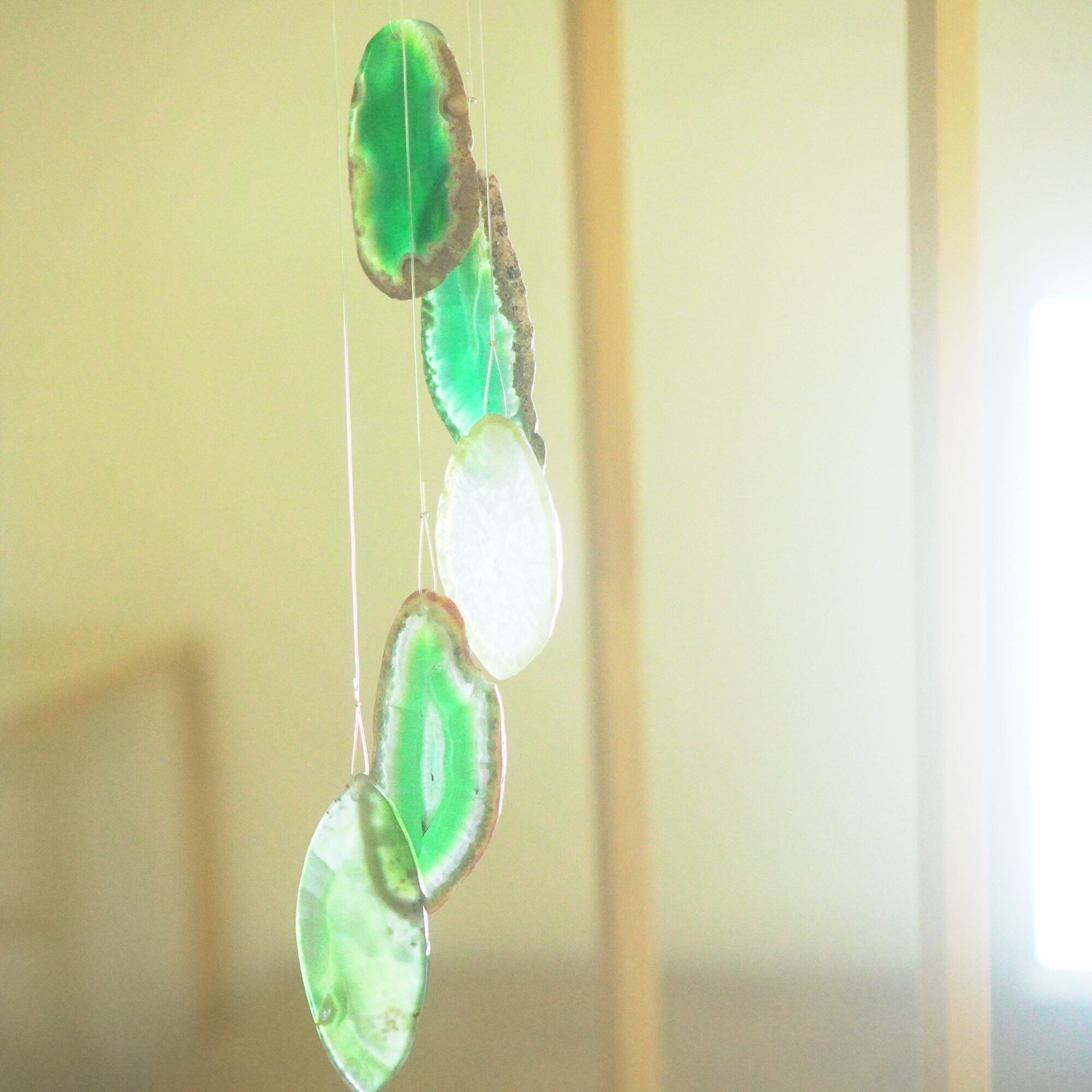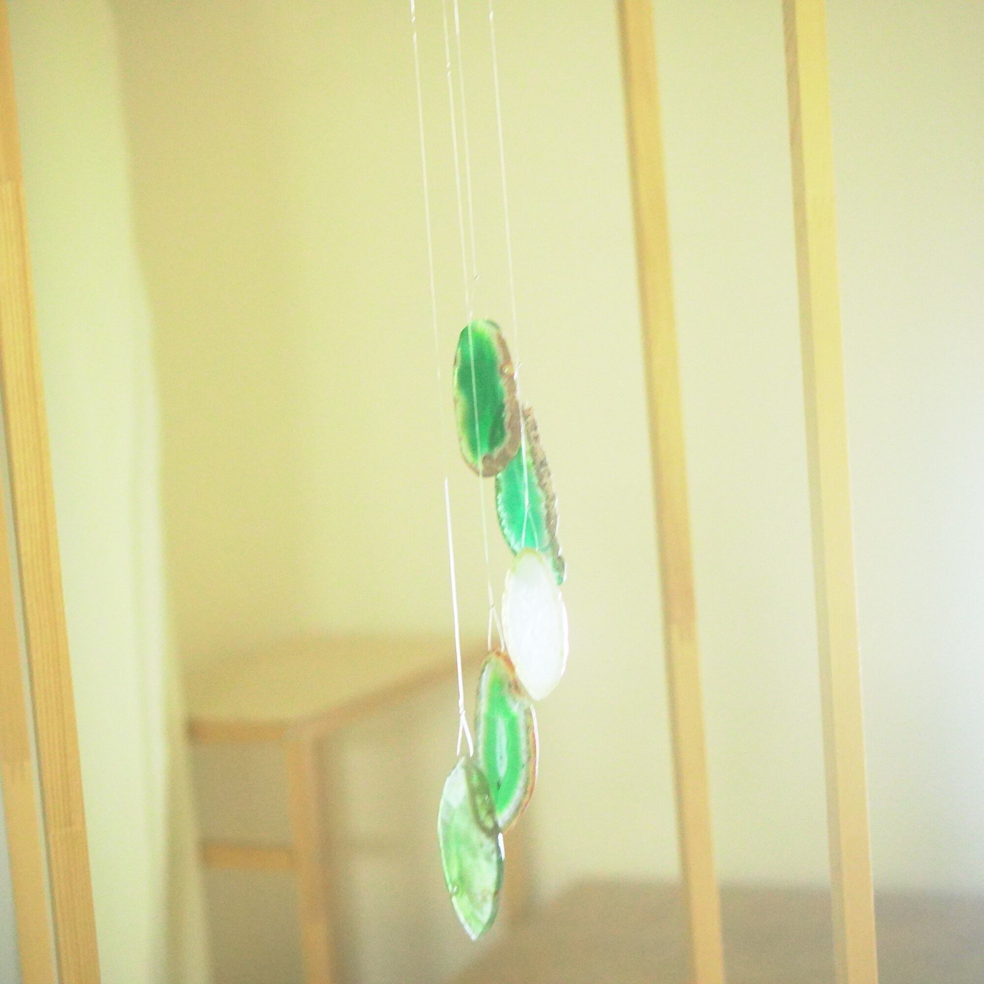 連なるアゲートが風を受けて揺れるとチリンチリン、美しい響きの音が鳴りとても癒されます。