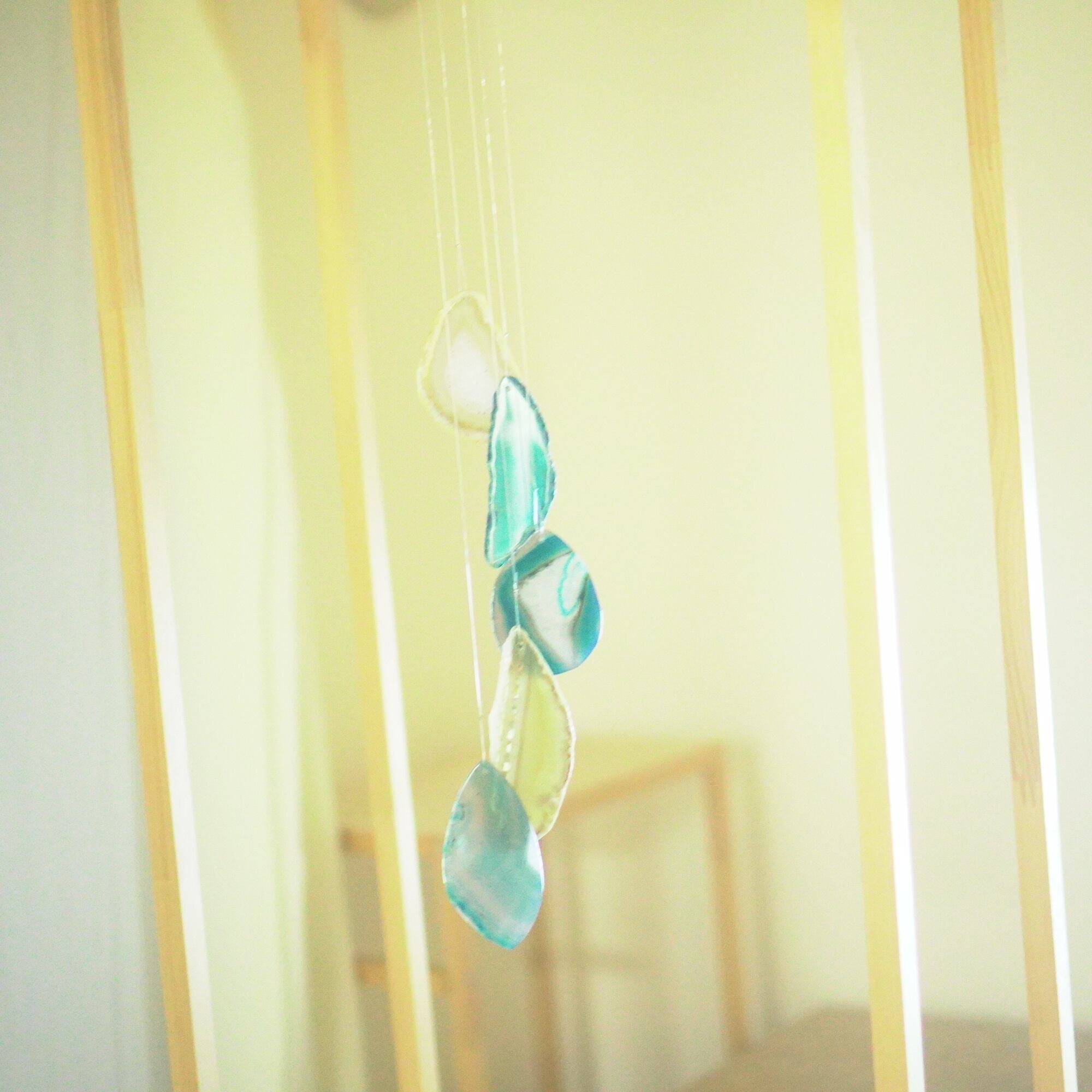 連なるアゲートが風を受けて揺れるとチリンチリン、美しい響きの音が鳴りとても癒されます。