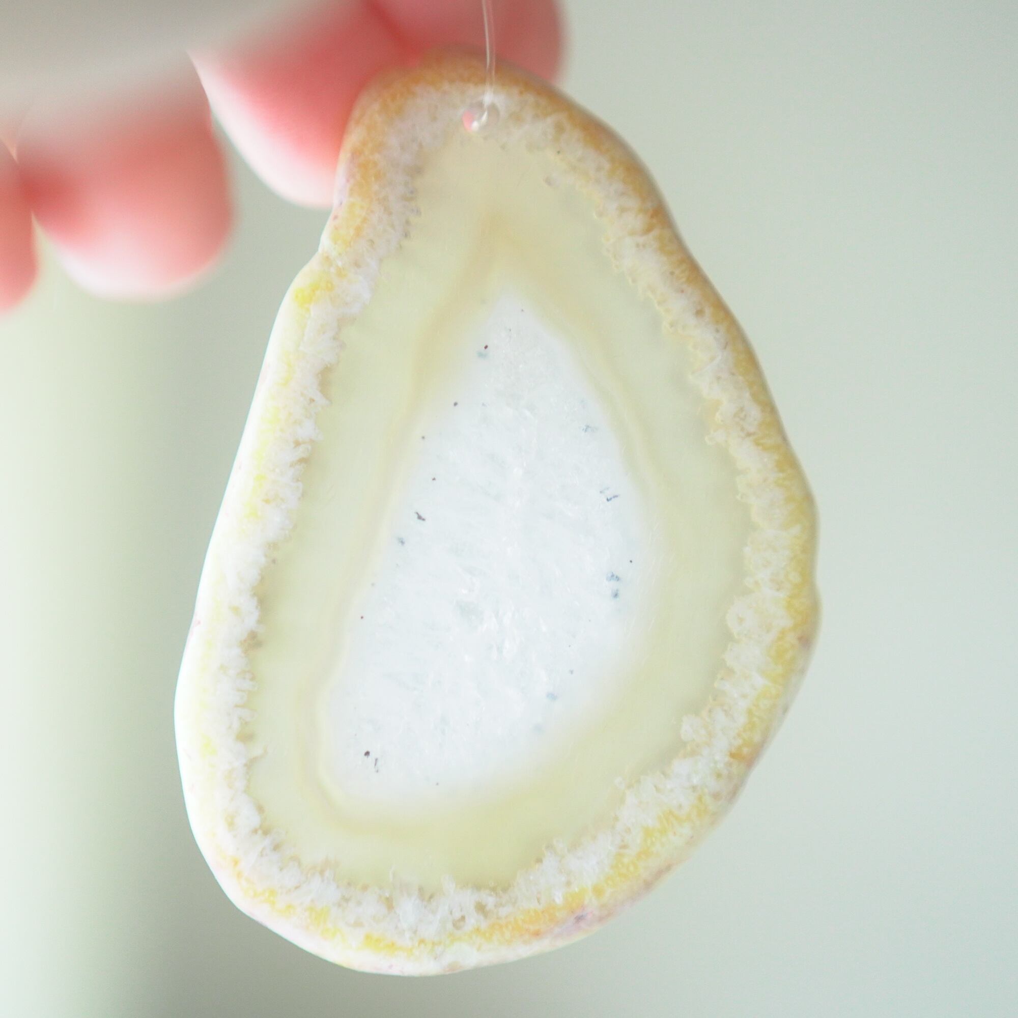 ✧✧✧瑪瑙の濃い色は染色によるもので、水に濡れたり布で擦ると多少色落ちします。飾るものなので大丈夫かと思いますが白いお洋服などには触れないようにされてください。汚れが気になる時は若干の色落ち前提で水を軽く含ませた布やティッシュでやさしく拭いていただくことは大丈夫です。また、画像のような細かなヒビ・カケはスライスメノウの加工上かなり多くあるので、チャイムとしての機能や全体の外観を著しく損なうものを除き、見た目の完璧さ<音色の響き重視で選んで使用しております、よろしくお願い致します✧✧✧
