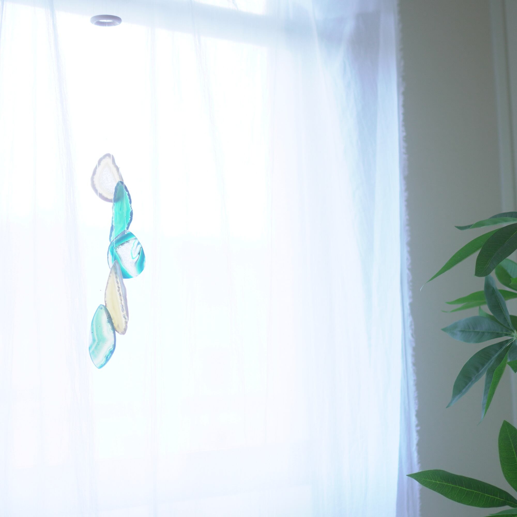 そしてカーテン越しではなく直射日光を当てた際のサンキャッチャーとしてのチャイムも、美しい光をお部屋の中に運んでくれます。
