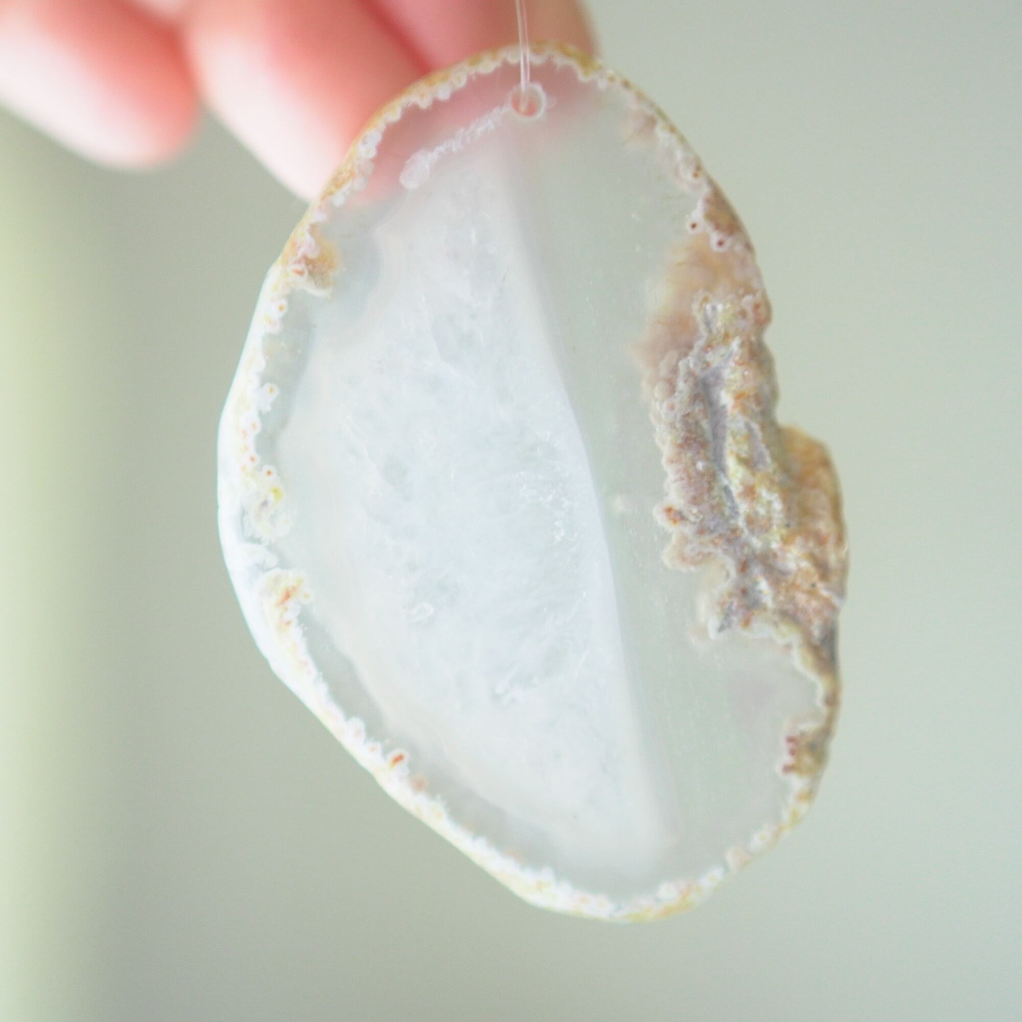 Agate Slice , Natural Wood , Nylon Cord , Metal